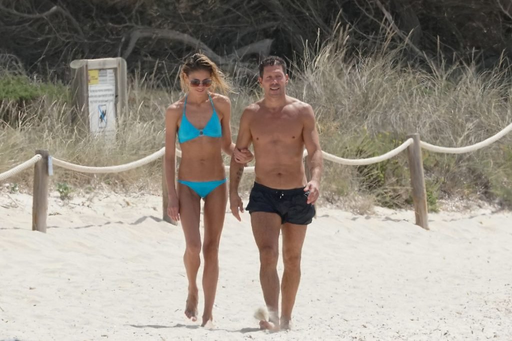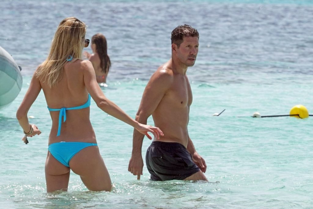 Diego Pablo Simeone y Carla Pereyra disfrutan de una escapada romántica en un paraíso en Formentera, España, 27/06/2019. Los dos caminaron por la playa y charlaron mientras disfrutaban del sol y el ambiente playero.