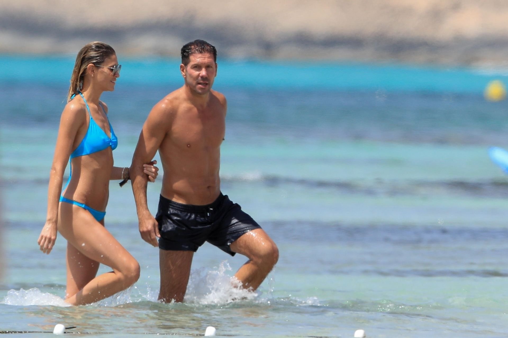 Diego Pablo Simeone y Carla Pereyra disfrutan de una escapada romántica en un paraíso en Formentera, España, 27/06/2019. Los dos caminaron por la playa y charlaron mientras disfrutaban del sol y el ambiente playero.