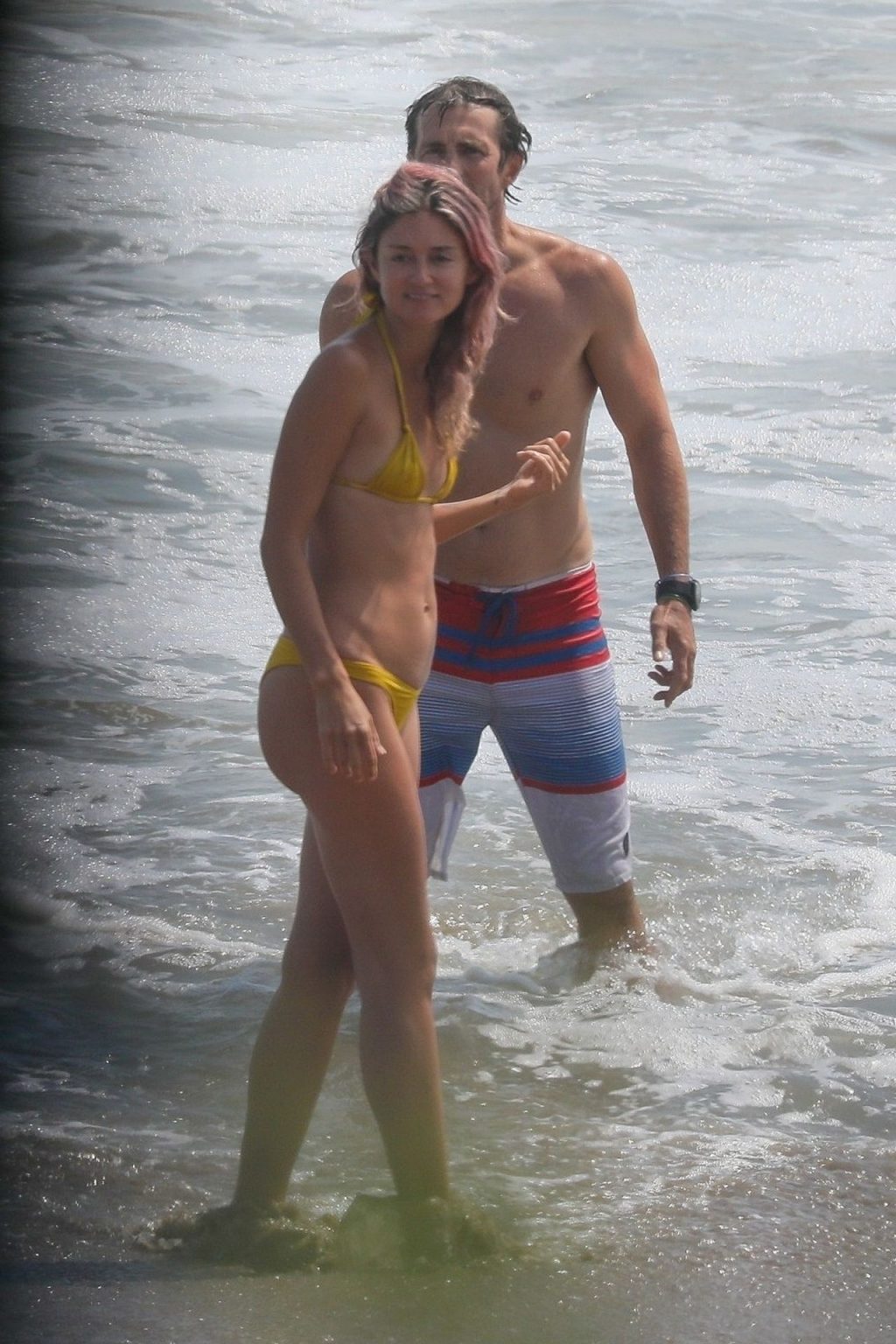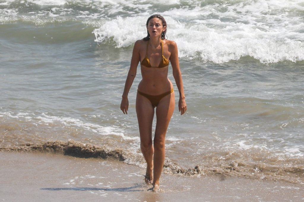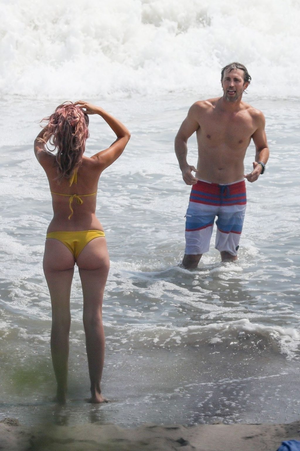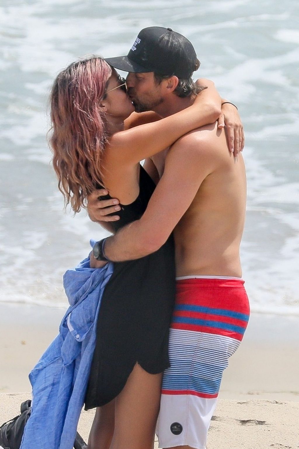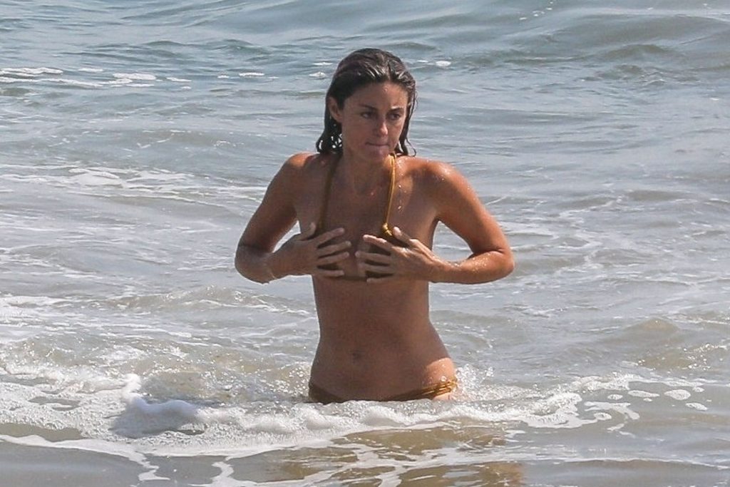 American businesswoman, actress, model, DJ Caroline D’Amore and husband Bobby Alt share some PDA with our camera while enjoying a beach day in Malibu this afternoon (August 2020).