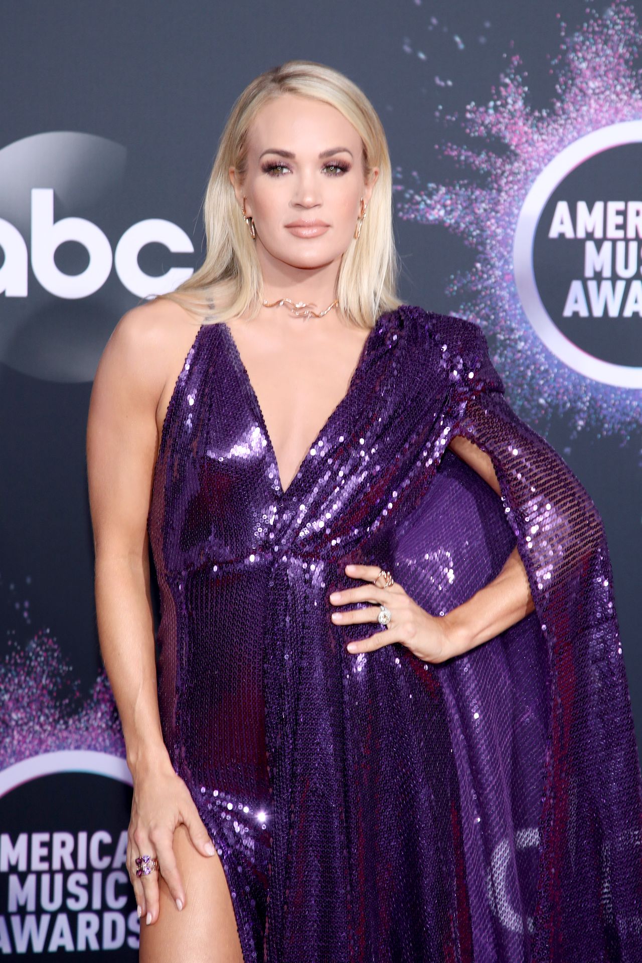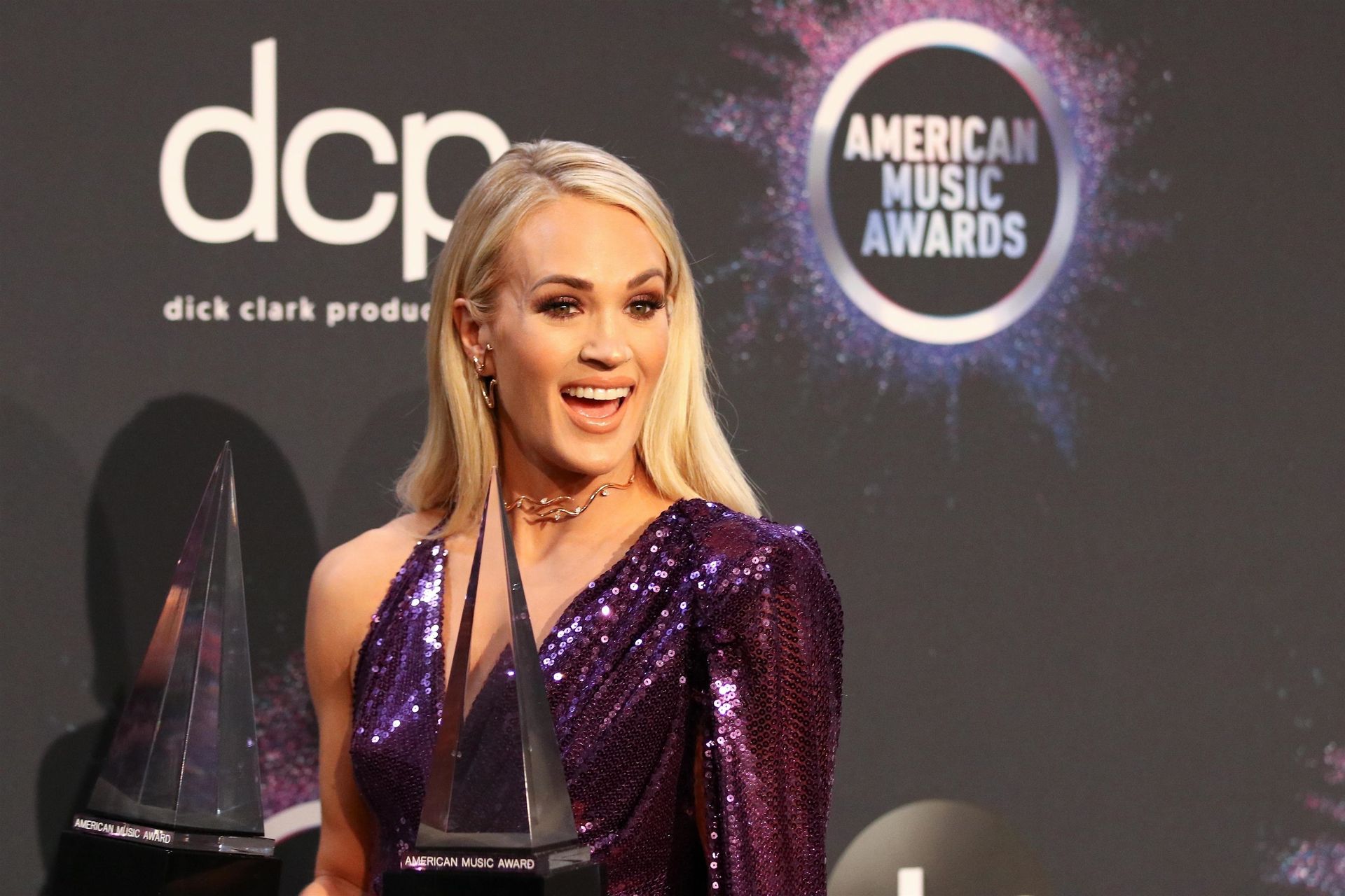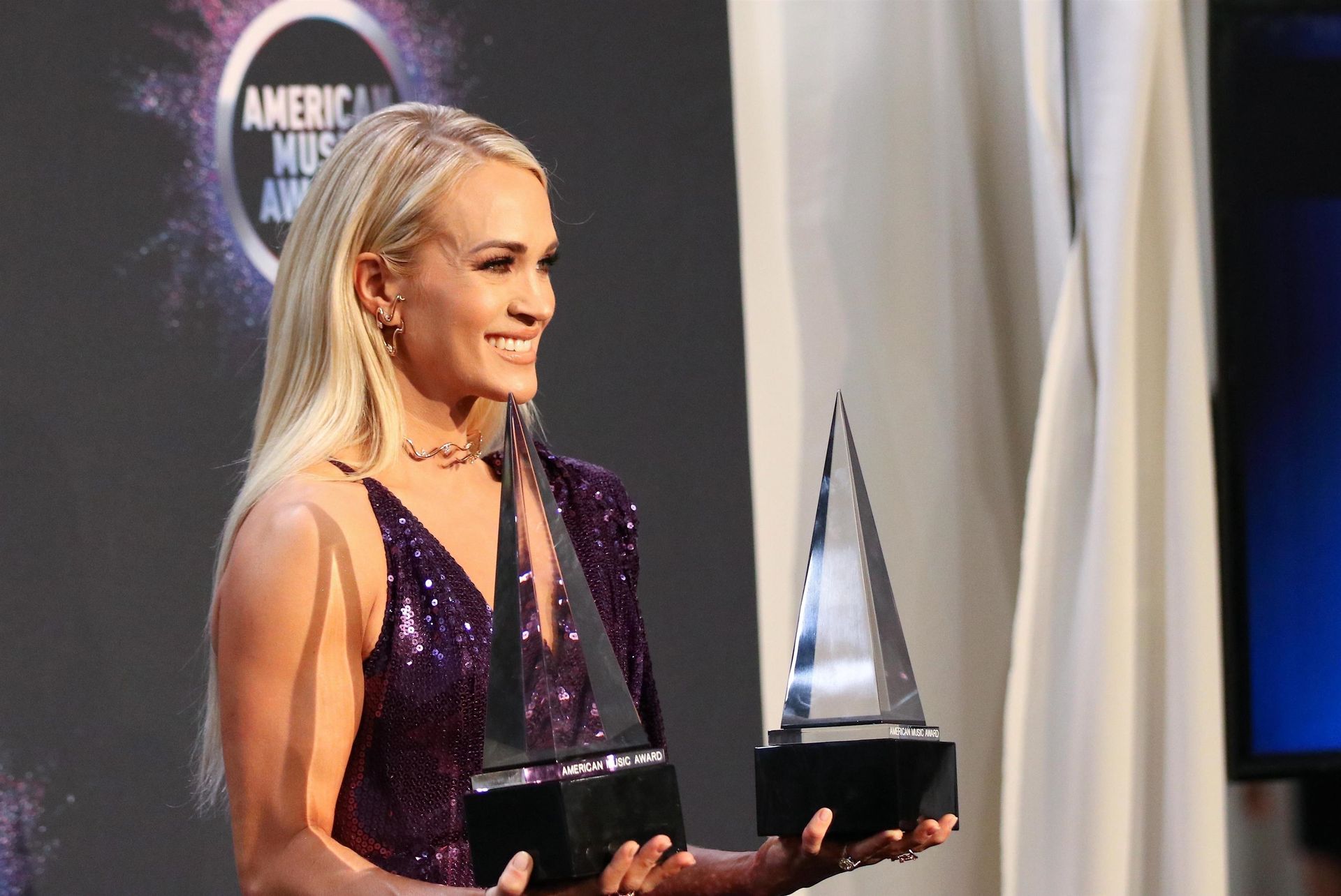 La cantante de piernas largas Carrie Underwood ganó dos premios a la vez en la 47ª edición anual de los American Music Awards en el Microsoft Theater de Los Ángeles, 24/11/2019.