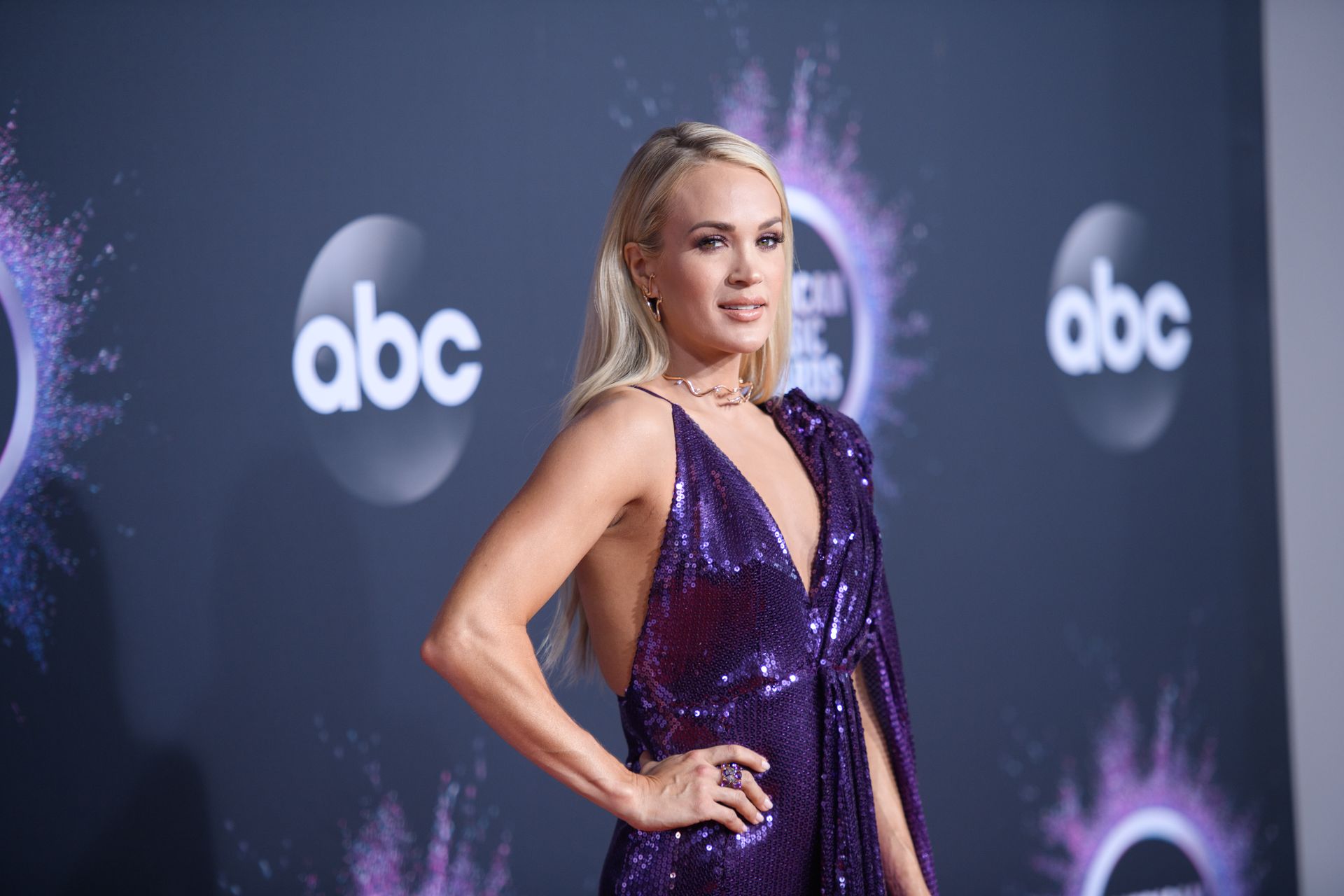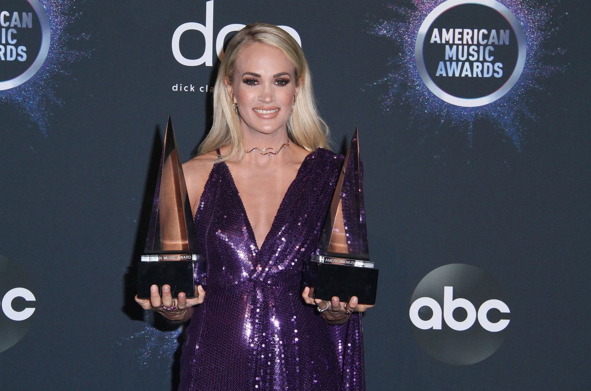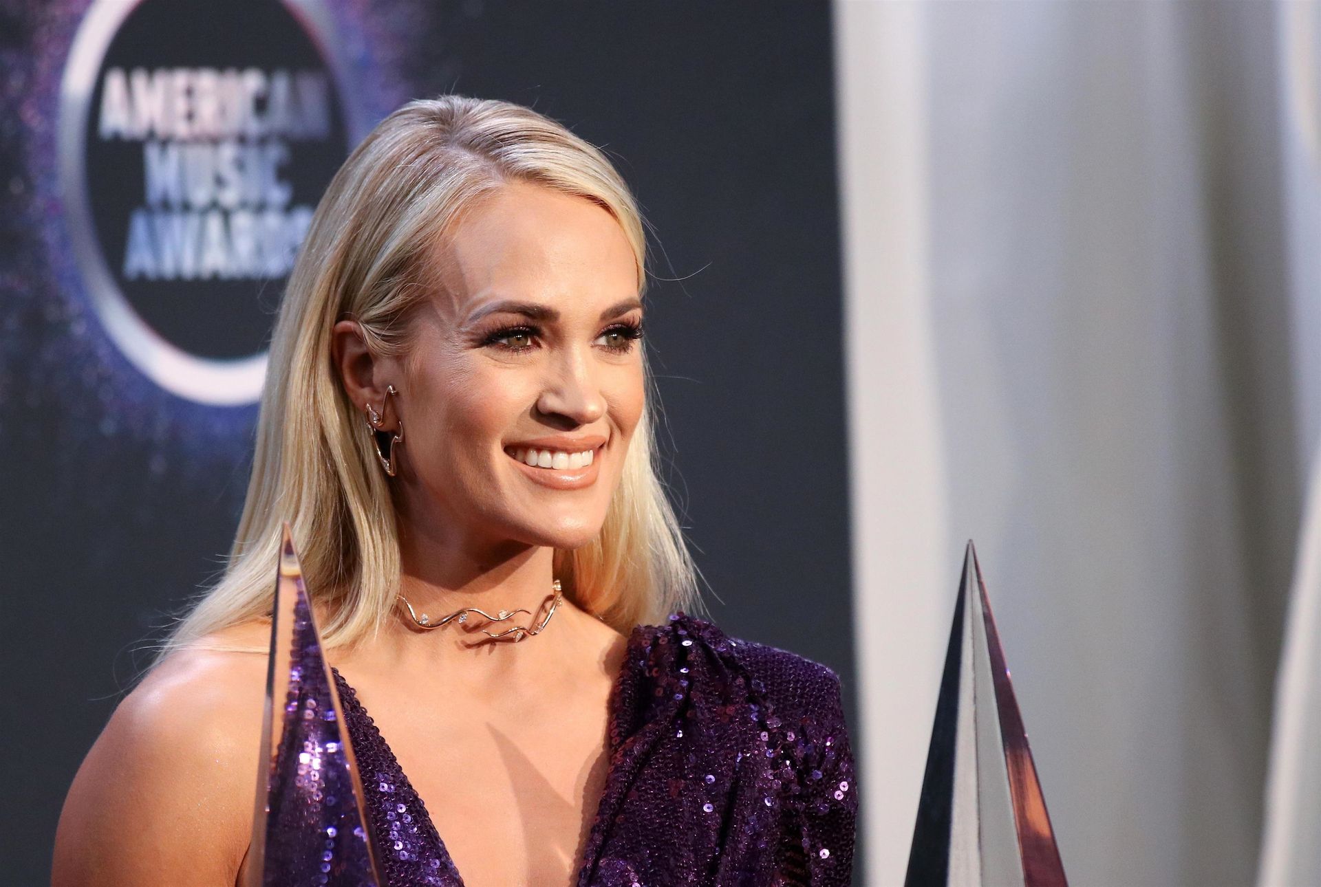 La cantante de piernas largas Carrie Underwood ganó dos premios a la vez en la 47ª edición anual de los American Music Awards en el Microsoft Theater de Los Ángeles, 24/11/2019.