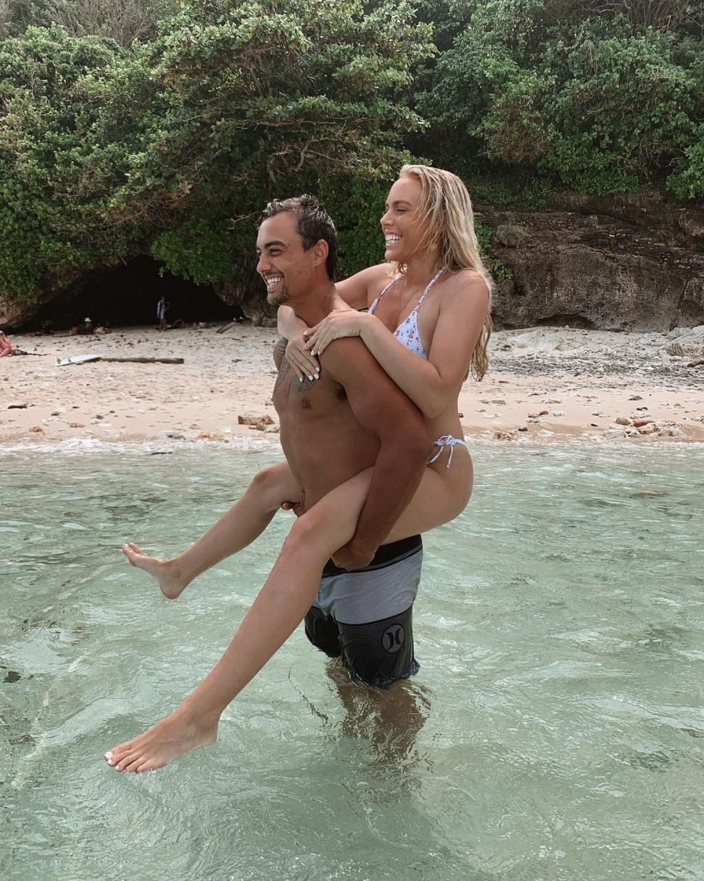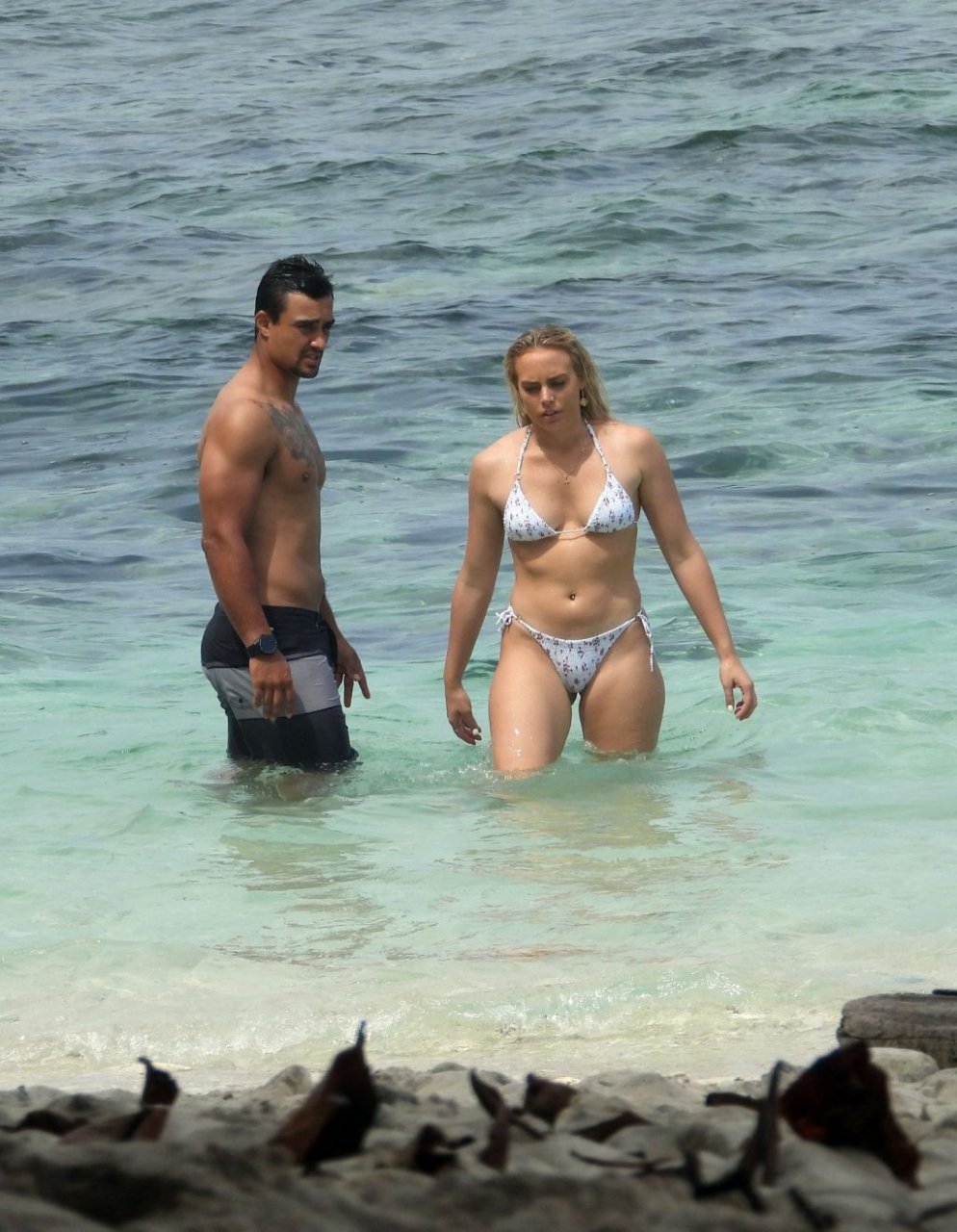 Tyson no podía apartar los ojos de su impresionante novia que fue dejada por Richie Strahan en el programa del domingo por la noche. La pareja se tomó de las manos mientras se dirigían al agua y Cass ajustó su bikini mientras disfrutaban de un baño. Posaron para una foto tomada por un amigo en el agua y, después, la pareja y su séquito almorzaron en un café cercano antes de que Tyson y Cass se fueran en un scooter.