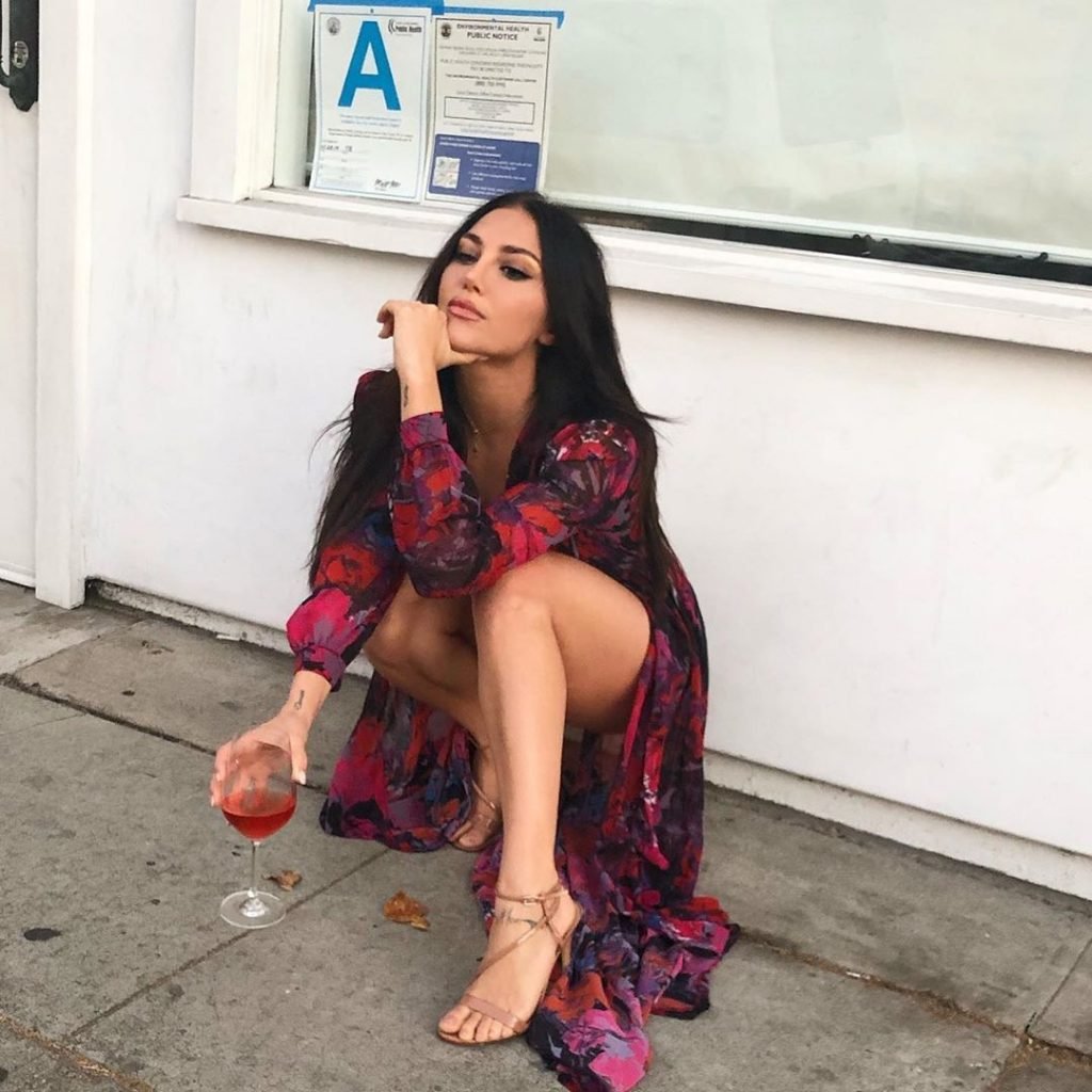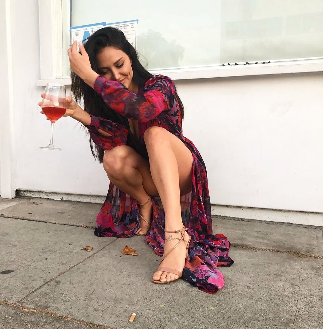 Actriz/cantante/bailarina Cassandra ‘Cassie’ Scerbo fue fotografiada con vino mostrando sus piernas sexys y ropa interior – Instagram, 30/07/2019.