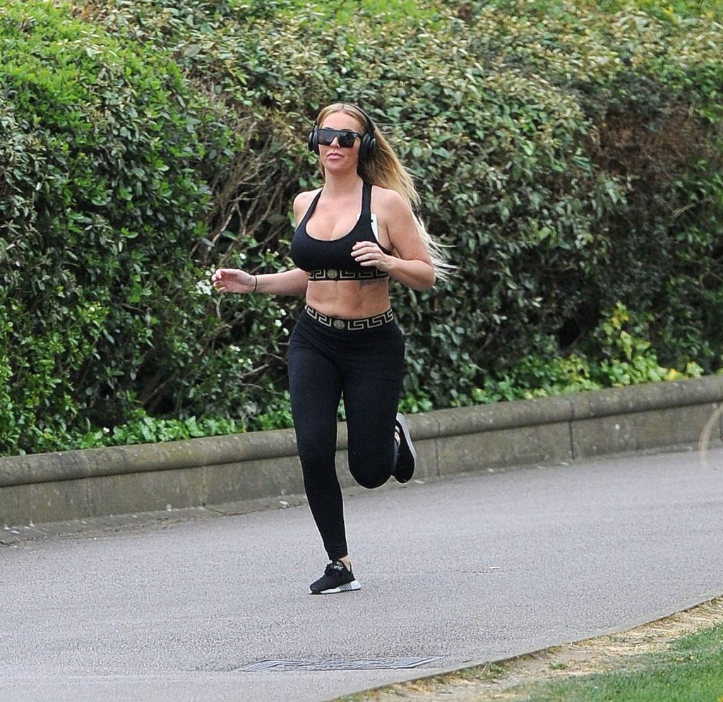 La estrella de “Big Brother” Aisleyne Horgan-Wallace fue vista mostrando un busto prominente mientras realizaba su ejercicio diario durante la pandemia del Coronavirus y se tomó una rápida selfie en Londres, 17/04/2020.