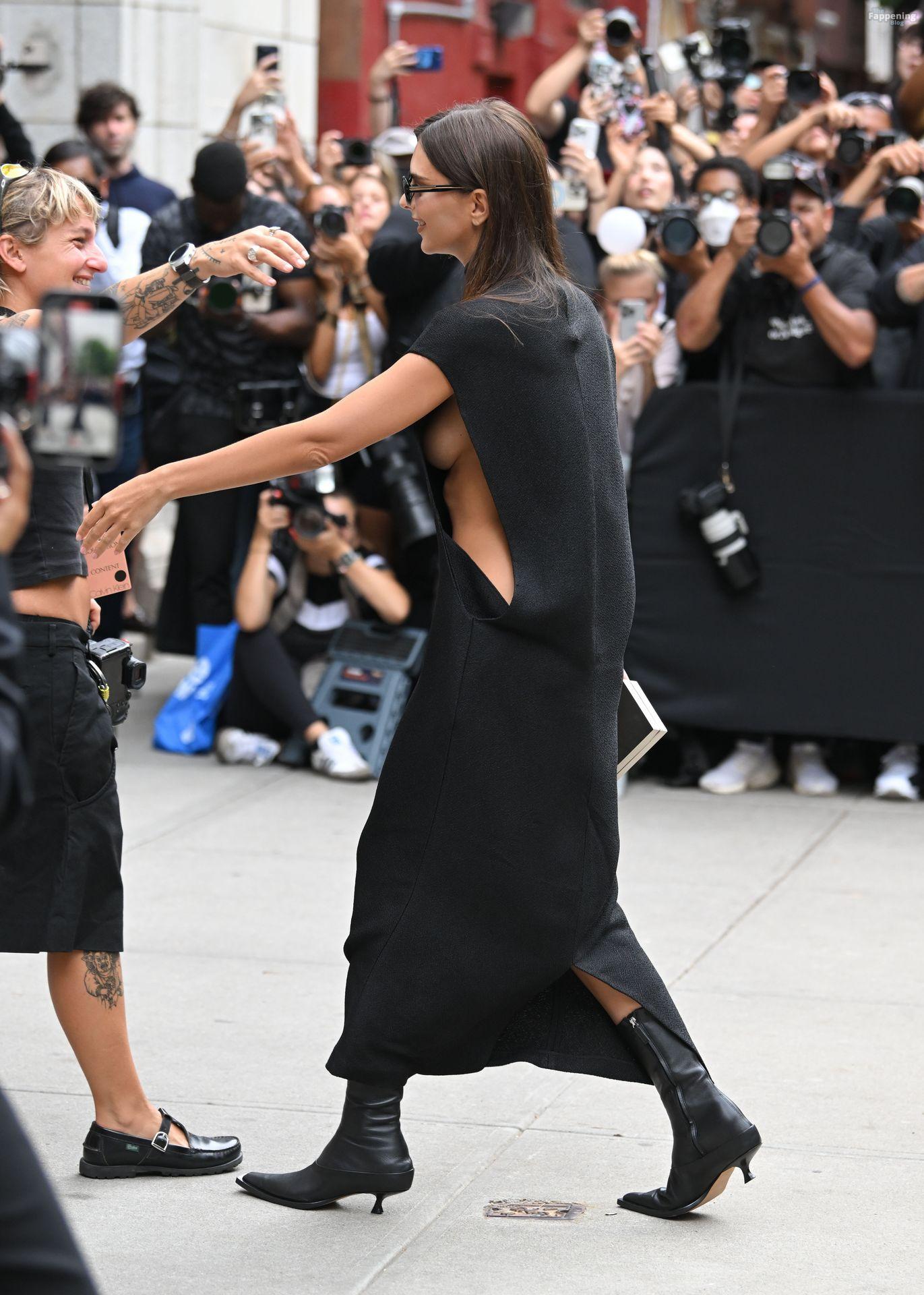 Emily Ratajkowski fue vista sin sostén en el desfile de moda de Calvin Klein durante la Semana de la Moda de Nueva York en la Fundación Brant en NYC.