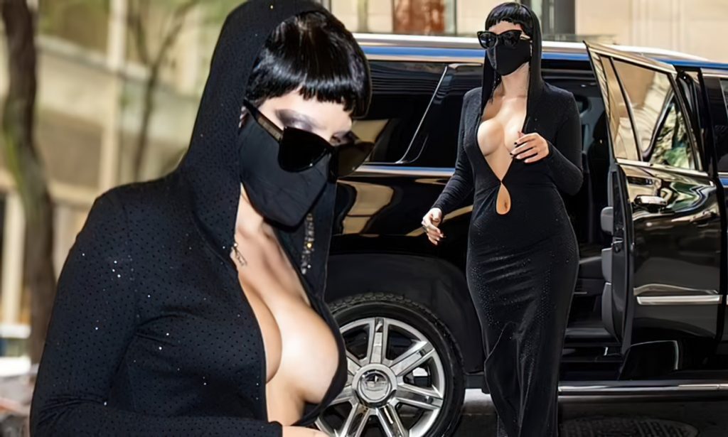 Singer Halsey looks fashionable as she steps out in New York City, 10/07/2021. She is pictured in a plunging black gown following the release of her film.