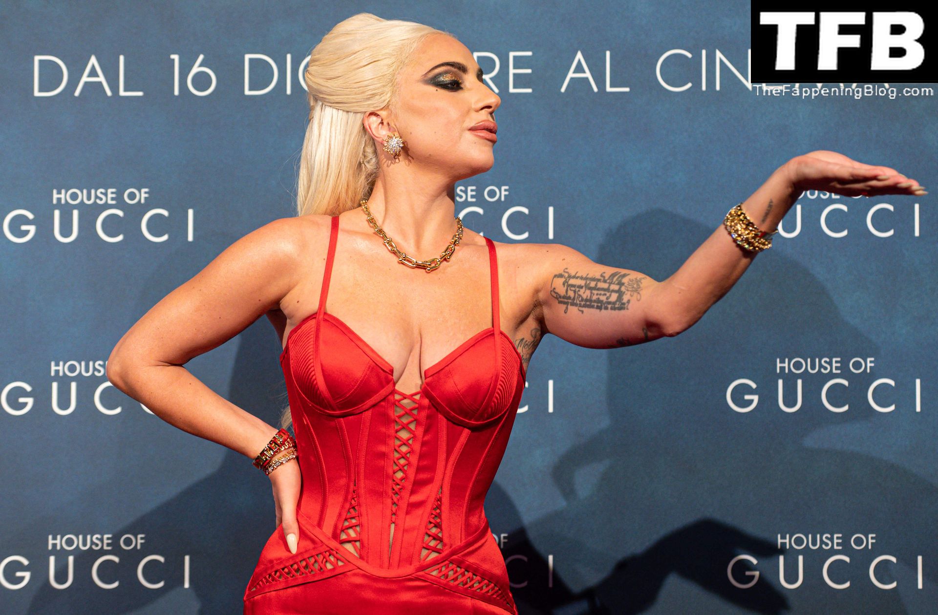 Lady Gaga posa para los fotógrafos mientras sale de Jimmy Kimmel Live! en Hollywood promocionando su película “House of Gucci” – Hollywood, 24/01/2022.