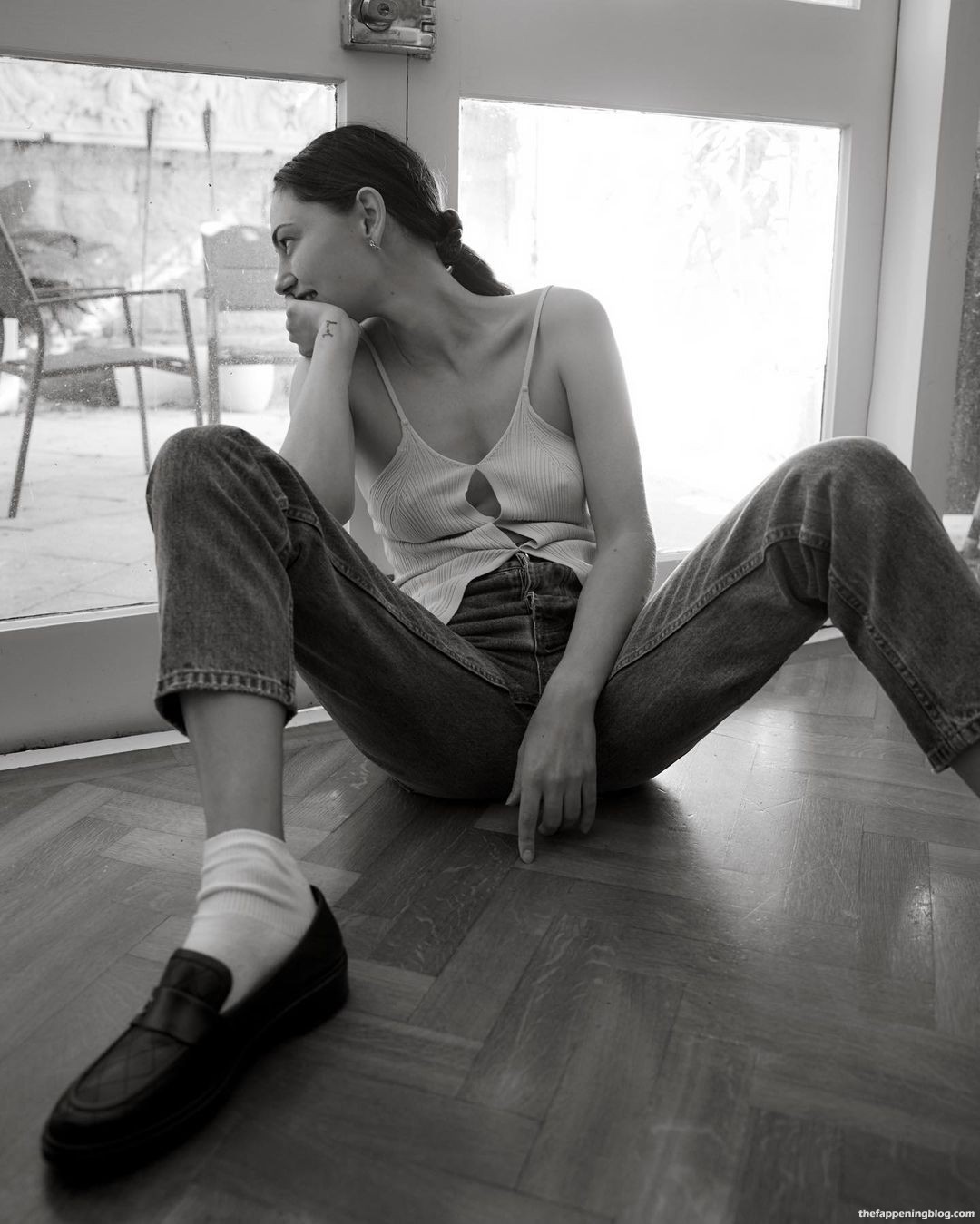 La actriz Phoebe Tonkin posa sin sostén en una sesión de fotos en blanco y negro para redes sociales, mostrando sus pezones (julio de 2021).
