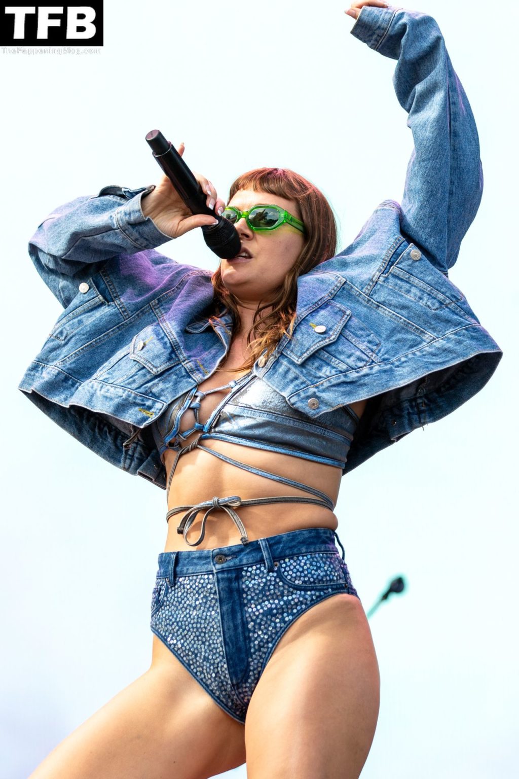 Cantante Tove Lo (Ebba Tove Elsa Nilsson) muestra sus pechos desnudos durante el Festival de Música Lollapalooza en Grant Park en Chicago, Illinois, 28/07/2022.