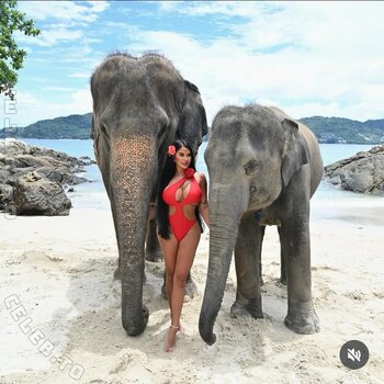 Yazmin Oukhellou muestra sus bonitos pechos con un top de bikini para sus seguidores en las redes sociales en la nueva foto selfie a continuación (marzo de 2021).
