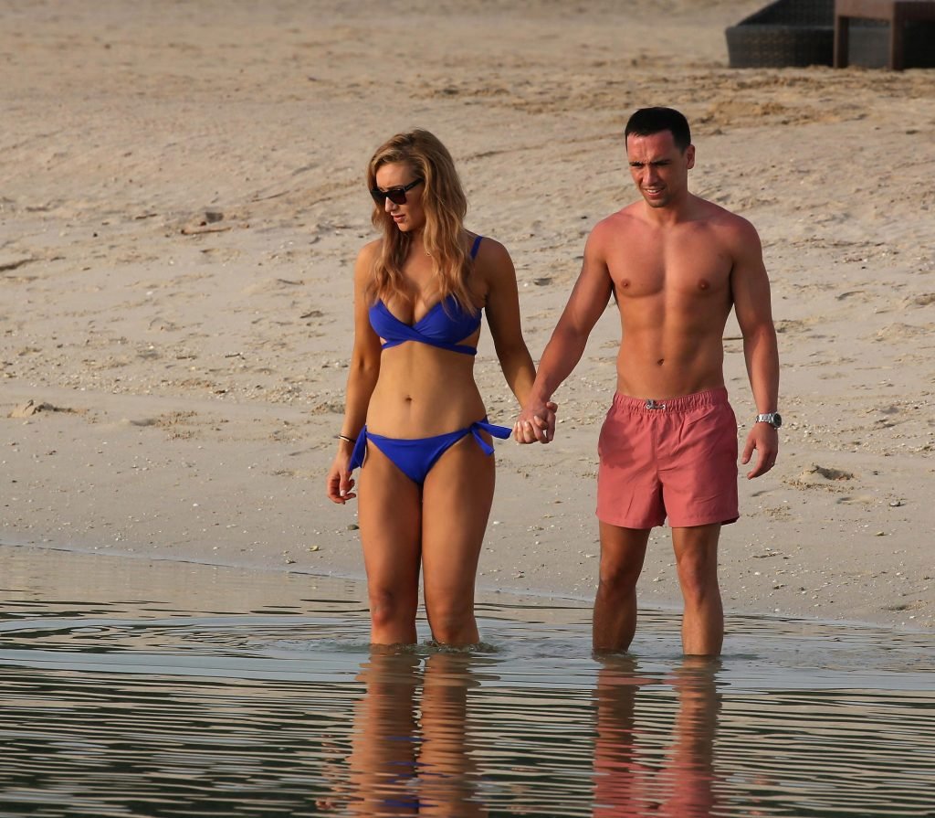 Catherine Tyldesley fue vista en un bikini azul con su pareja en una playa de Dubái, 11/04/2018. Catherine (Cath) Tyldesley es una actriz de televisión inglesa (Coronation Street / como Eva Price). Edad: 34 años.