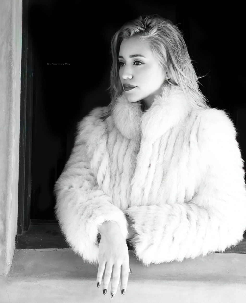 Caylee Cowan muestra su bonito escote mientras posa con un sujetador en una sesión de fotos en blanco y negro por Gregorio Campos (2021).