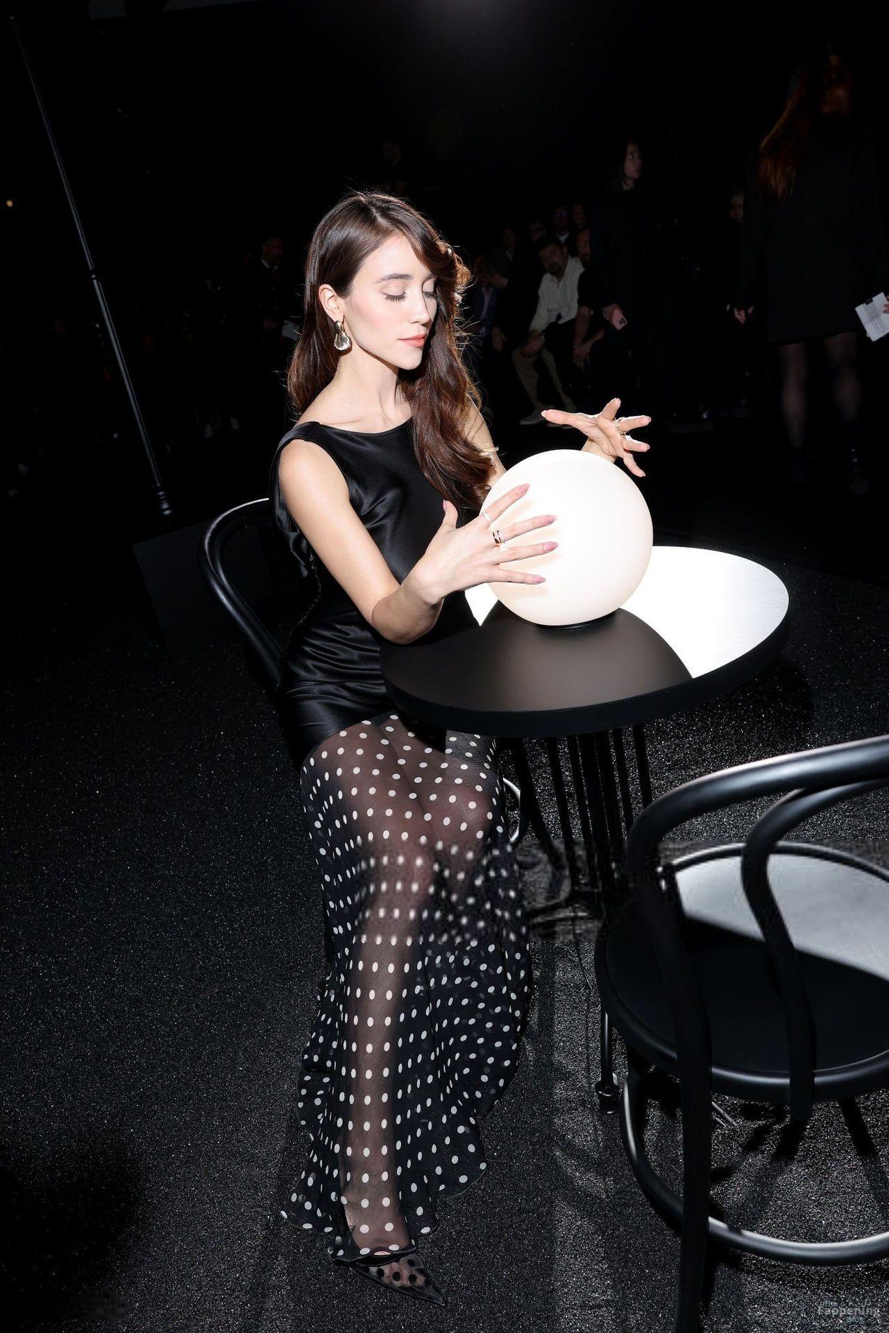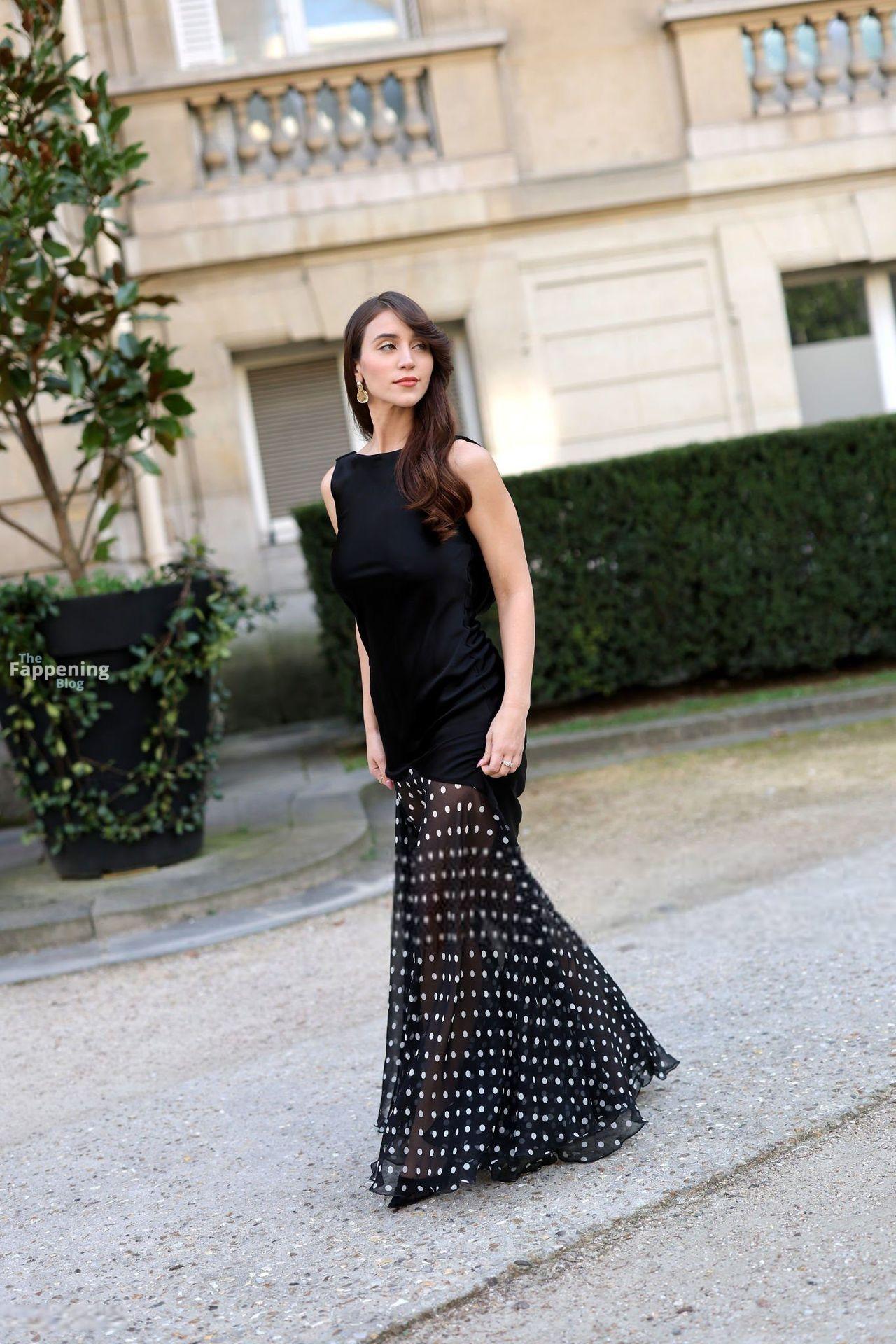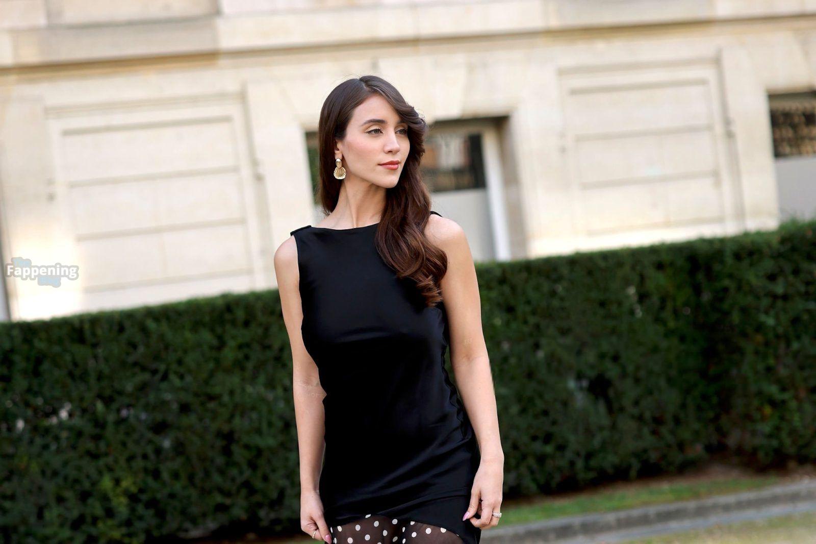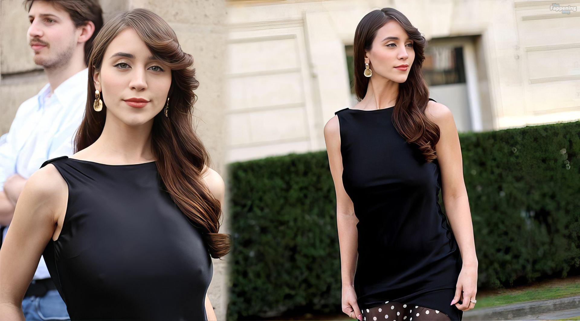 Caylee Cowan se ve espectacular sin sujetador con un vestido negro en el desfile de Nina Ricci Womenswear Otoño/Invierno 2025-2026 en París.