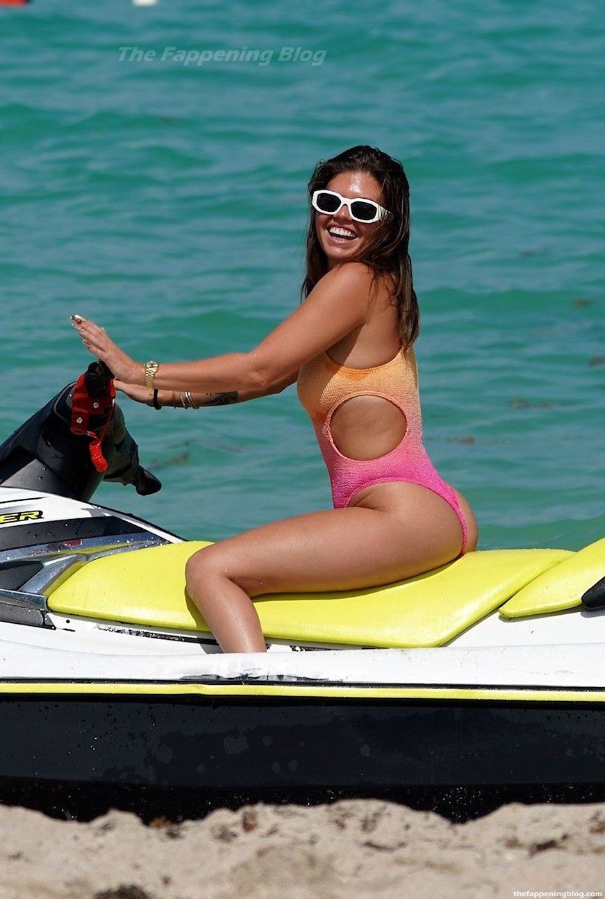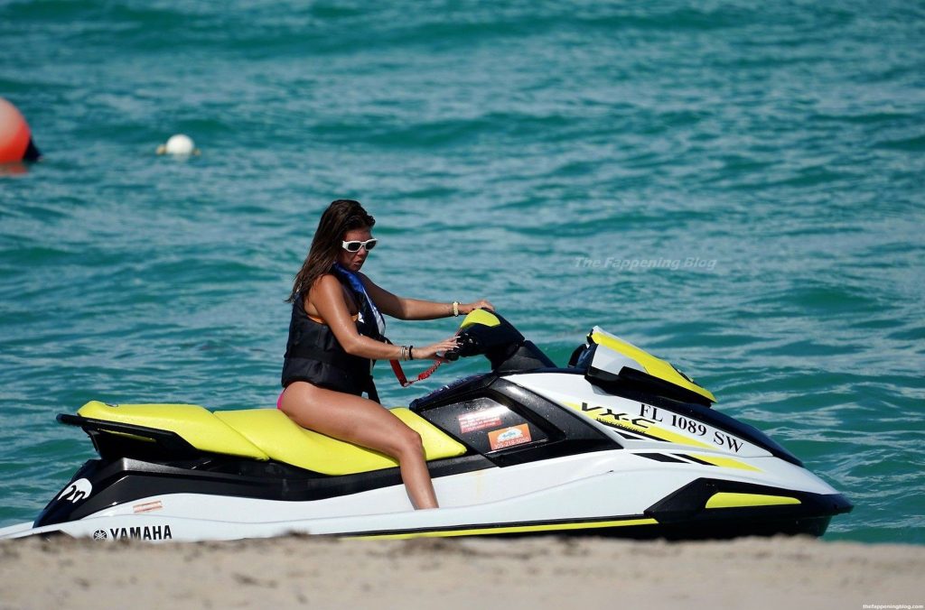 ¡Mira quién fue captada disfrutando en Miami! Algunos paparazzi sigilosos captaron a Chanel West Coast mientras practicaba jet ski en el océano en la playa de Miami. ¡Llevaba un traje de baño de una pieza colorido y se veía increíblemente sexy!