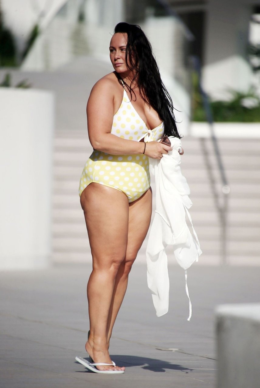 Chanelle Hayes, famosa por su participación en Gran Hermano 2007, muestra un look sexy durante sus vacaciones bajo el sol español de Tenerife, 04/10/2019.