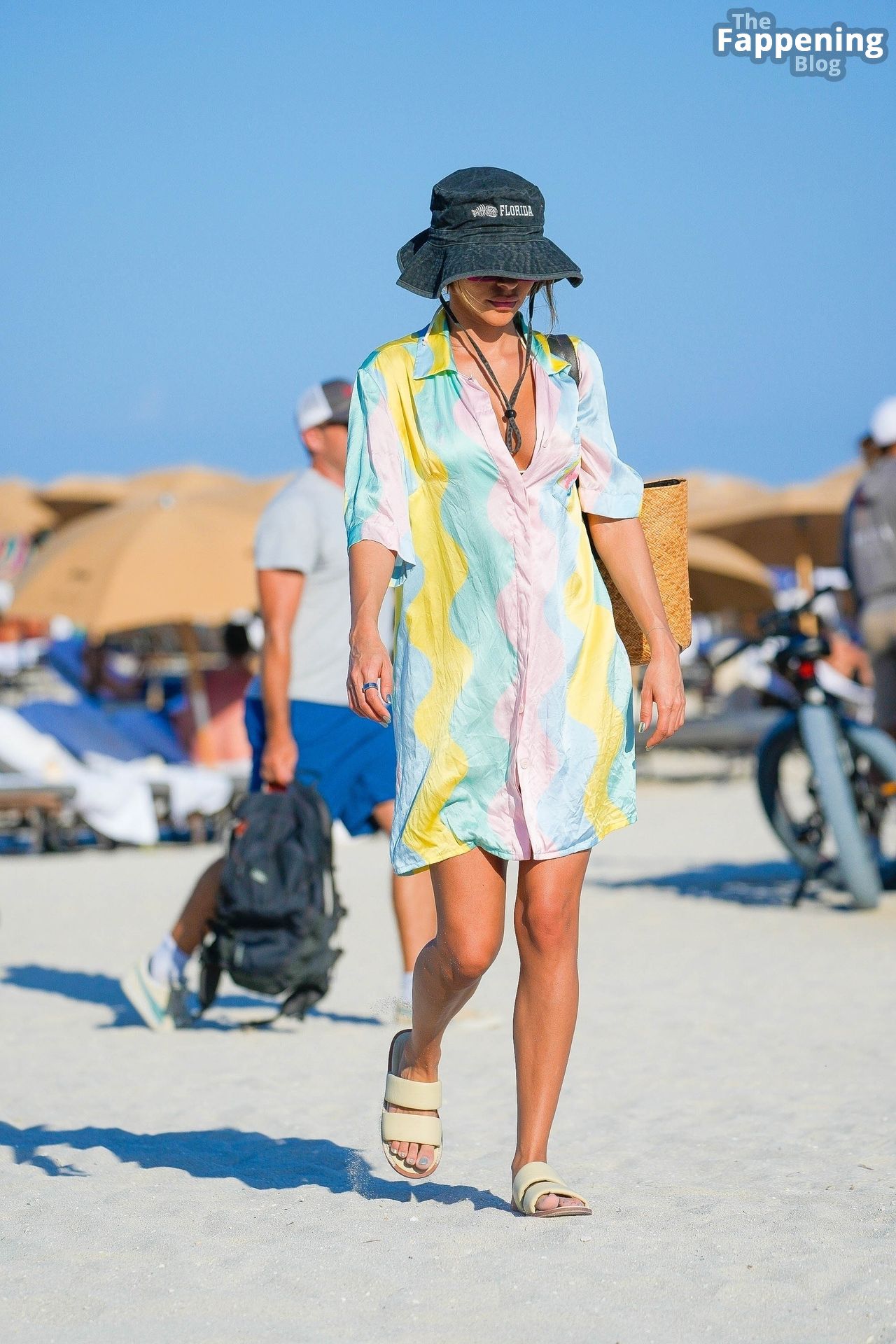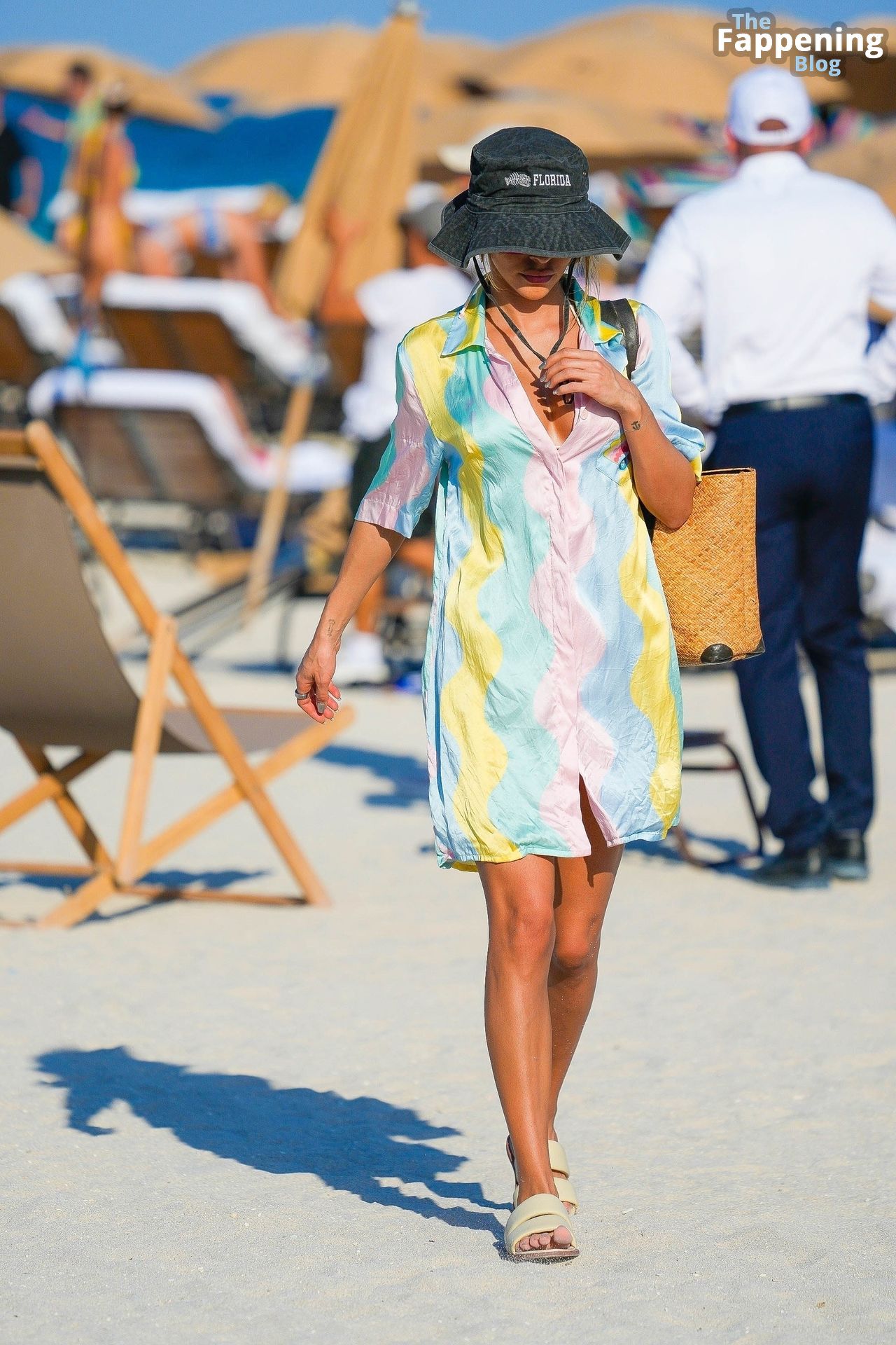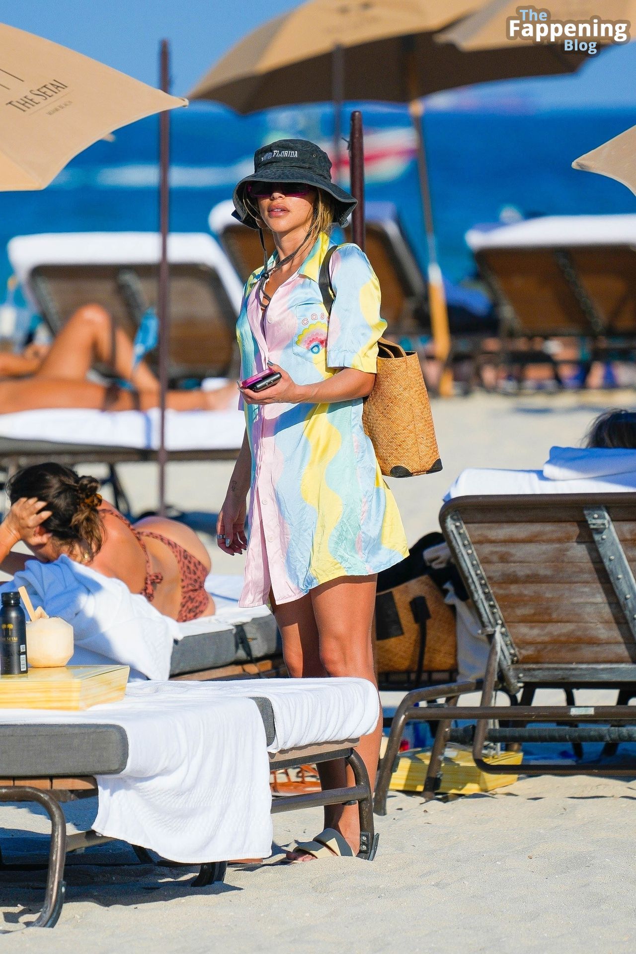 DJ Chantel Jeffries toma un almuerzo durante un día soleado en la playa de Miami Beach, 05/03/2023.
