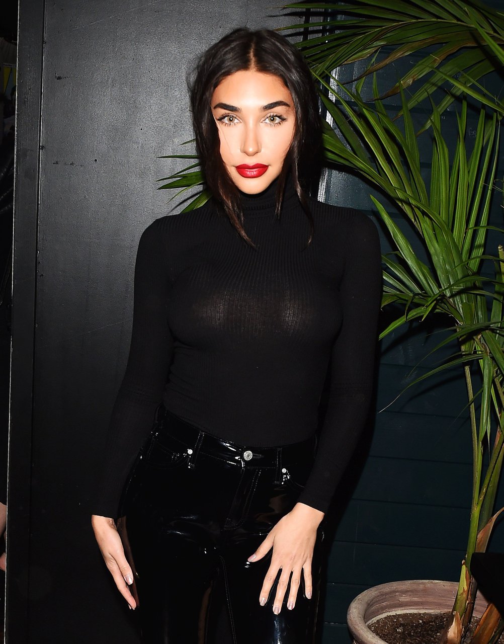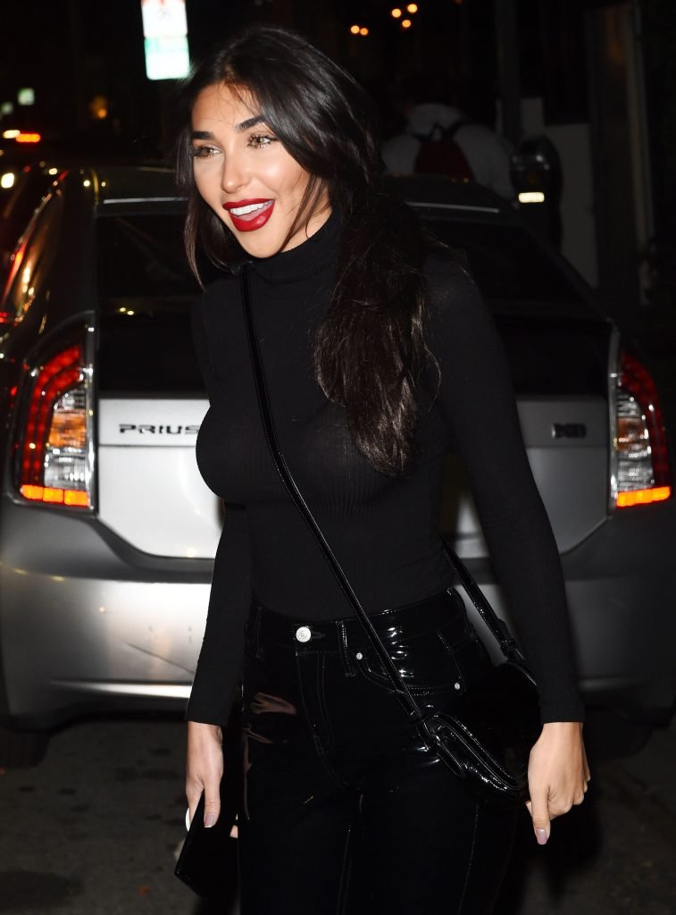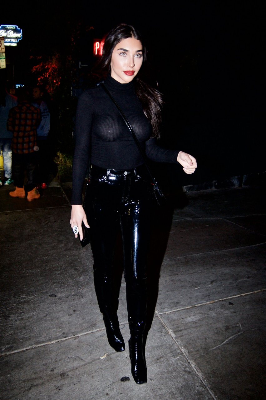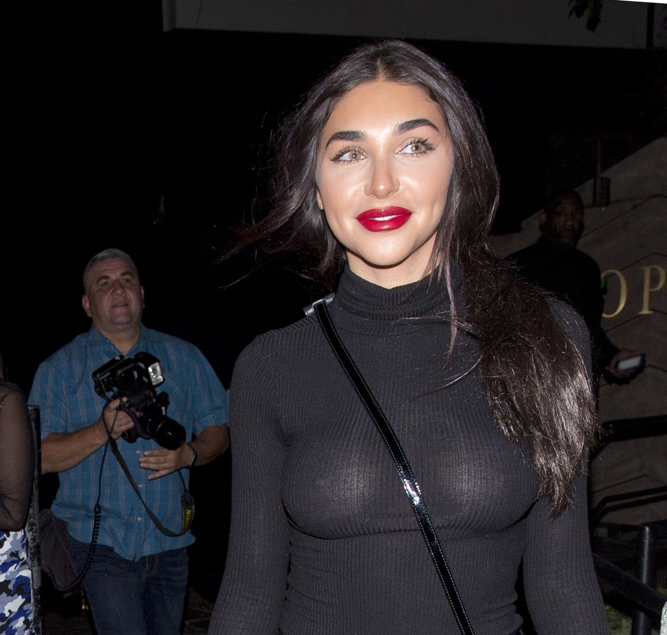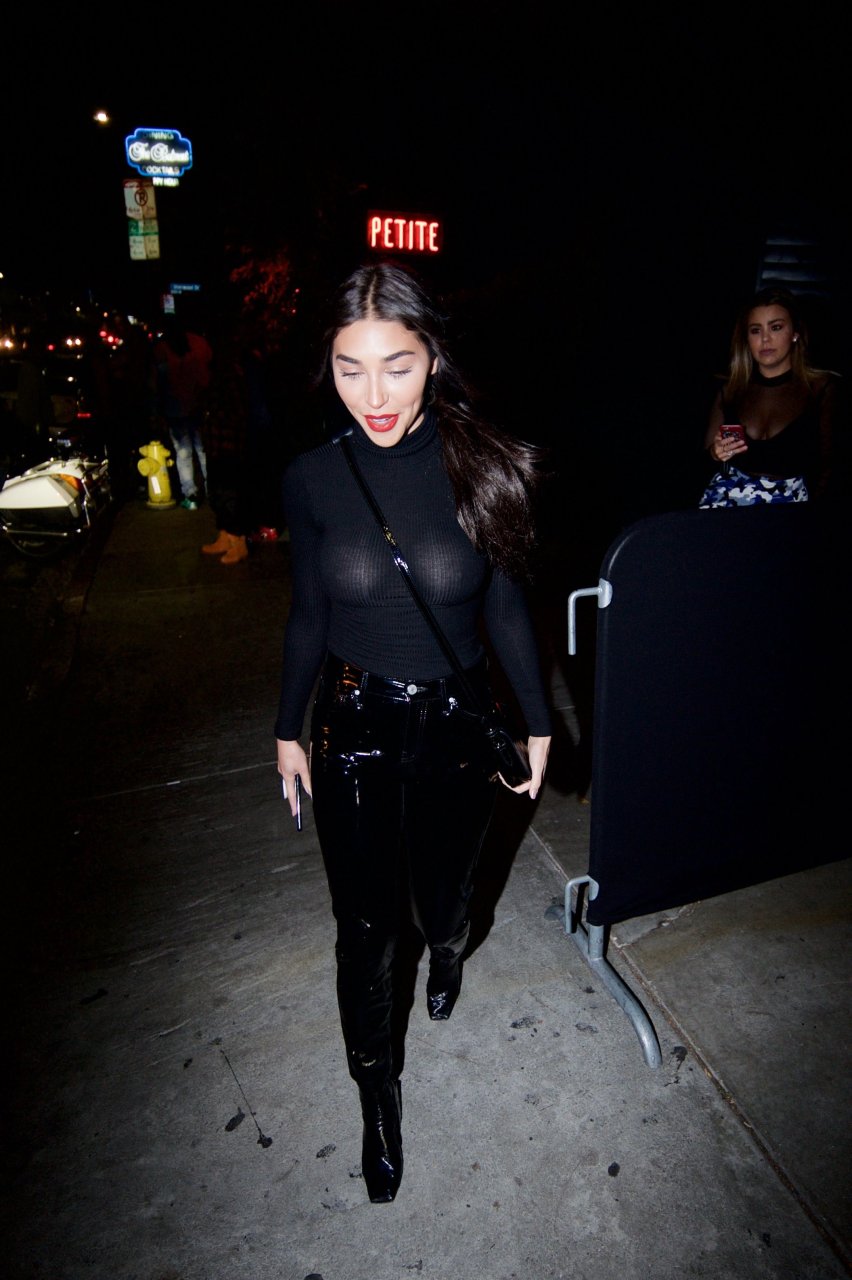 Impresionante Chantel Jeffries lleva un suéter negro transparente mientras salía del restaurante ‘Petite’ en West Hollywood, 20/10/2017. Chantel Jeffries, también conocida como CeeJay The Dj, es una modelo estadounidense, estrella de las redes sociales y exnovia de Justin Bieber. Edad – 24 años.