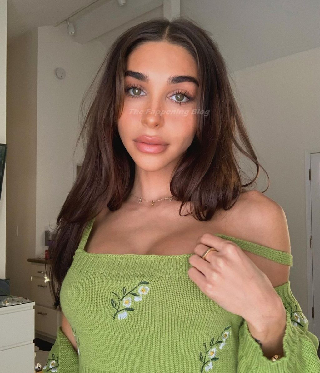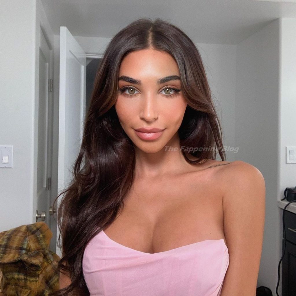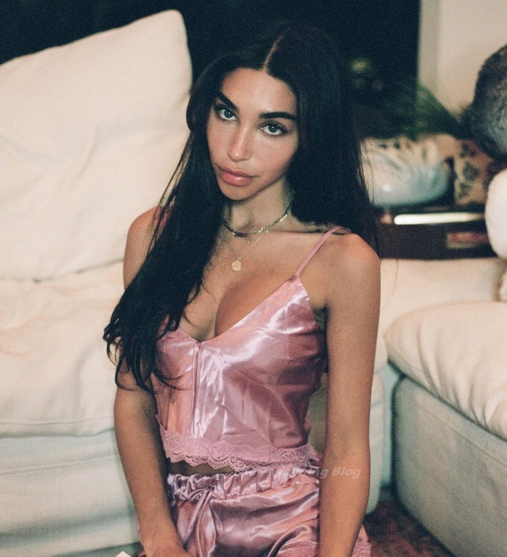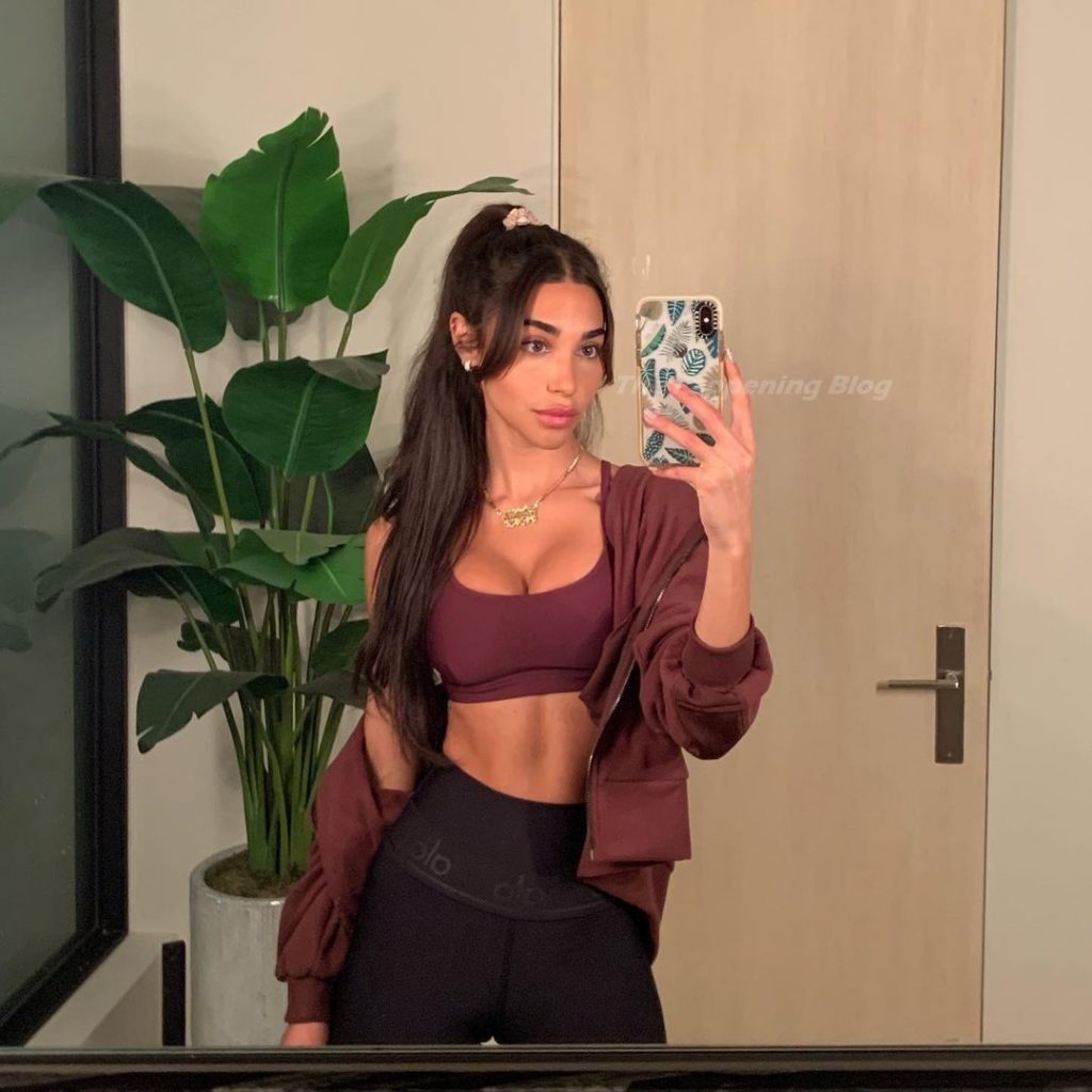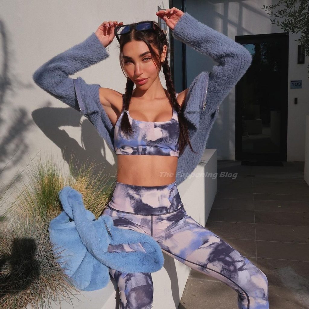 Chantel Jeffries muestra su impresionante figura, posando en lencería/bañadores para su cuenta de Instagram (2021). La estrella de Fappening a menudo exhibe sus pechos en varias sesiones de fotos promocionales en redes sociales.