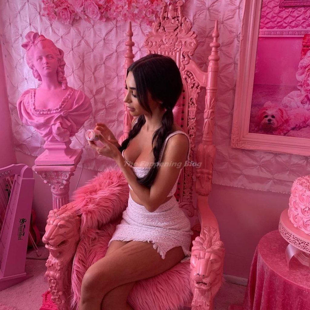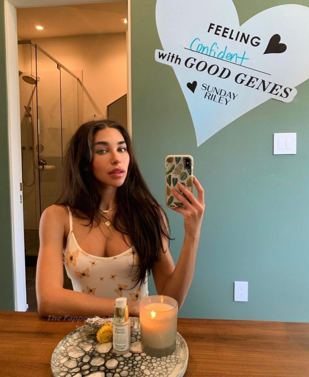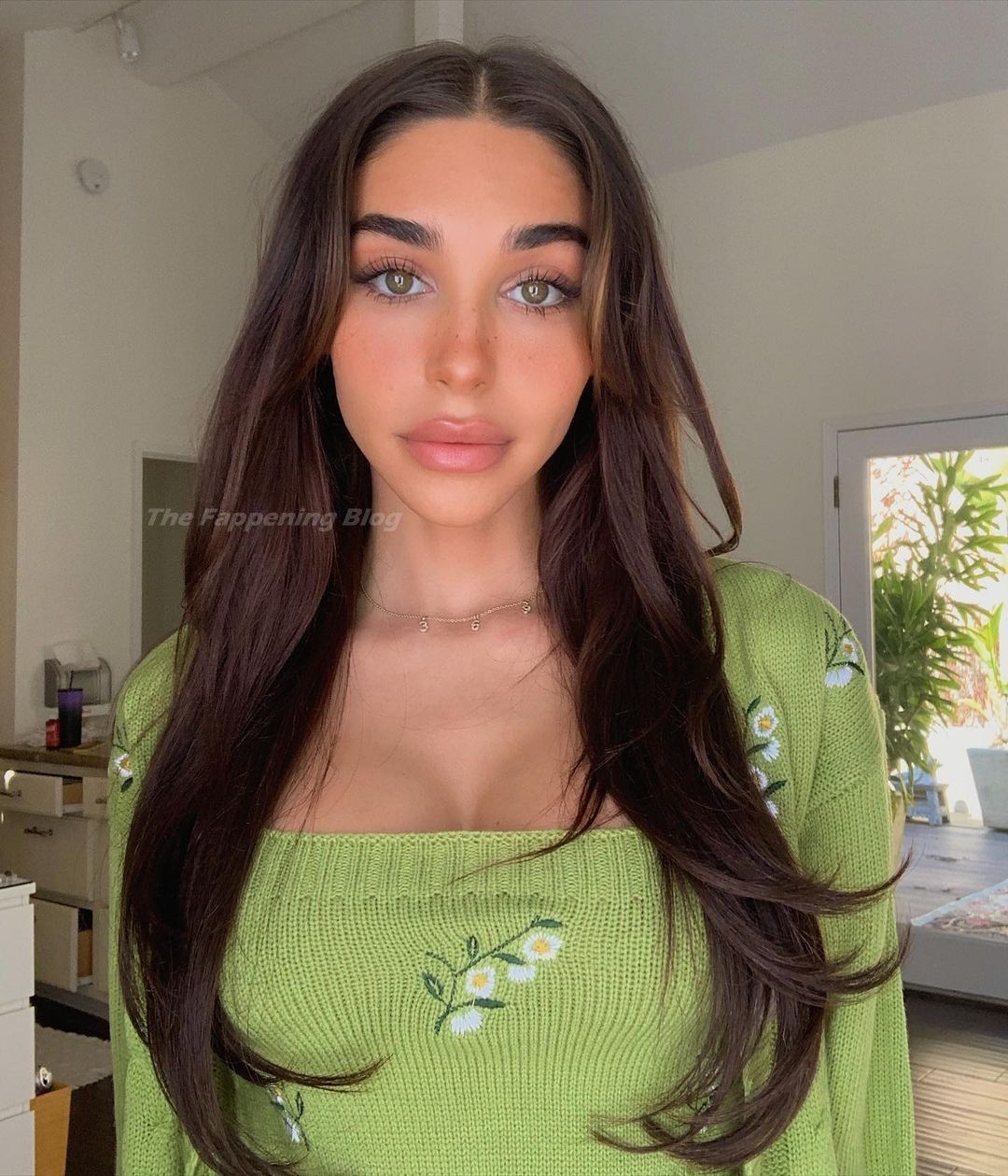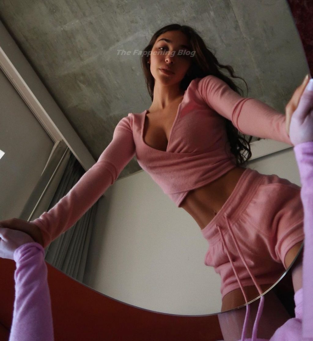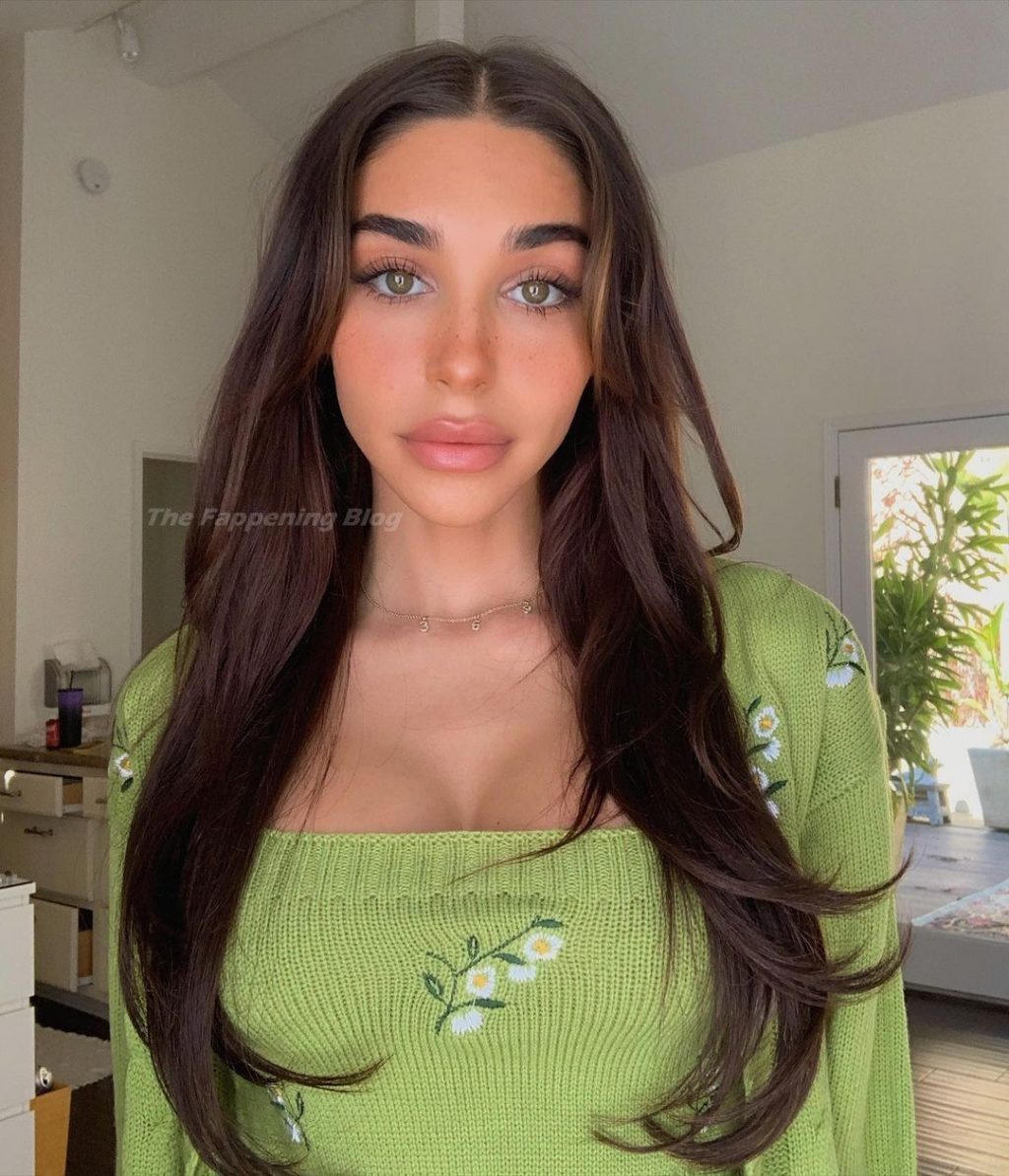 Chantel Jeffries muestra su impresionante figura, posando en lencería/bañadores para su cuenta de Instagram (2021). La estrella de Fappening a menudo exhibe sus pechos en varias sesiones de fotos promocionales en redes sociales.