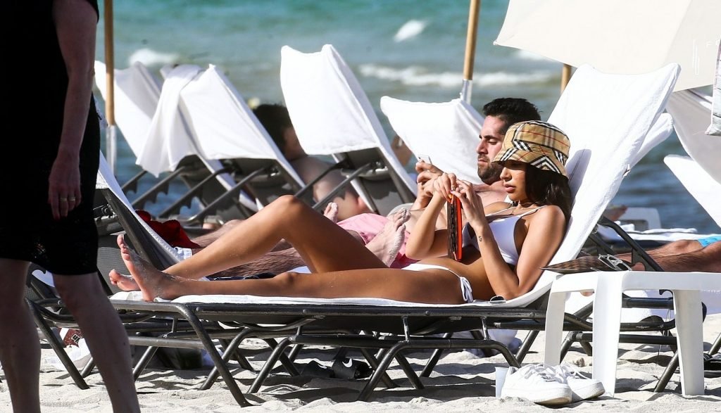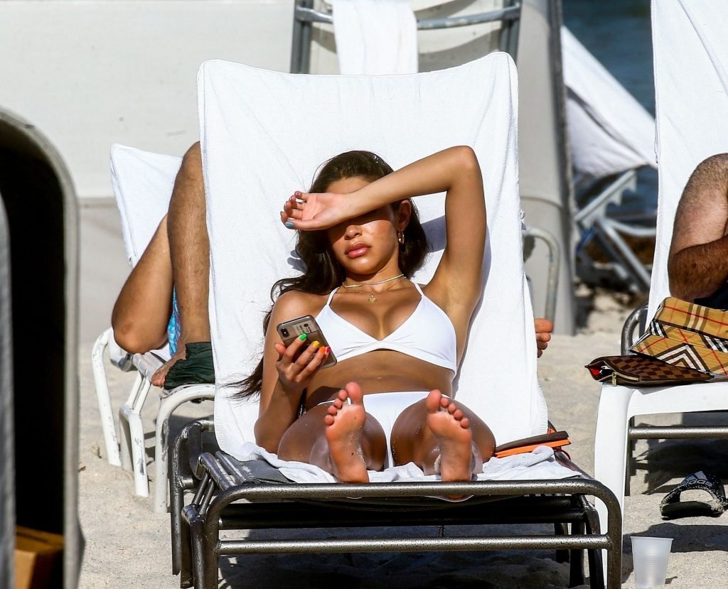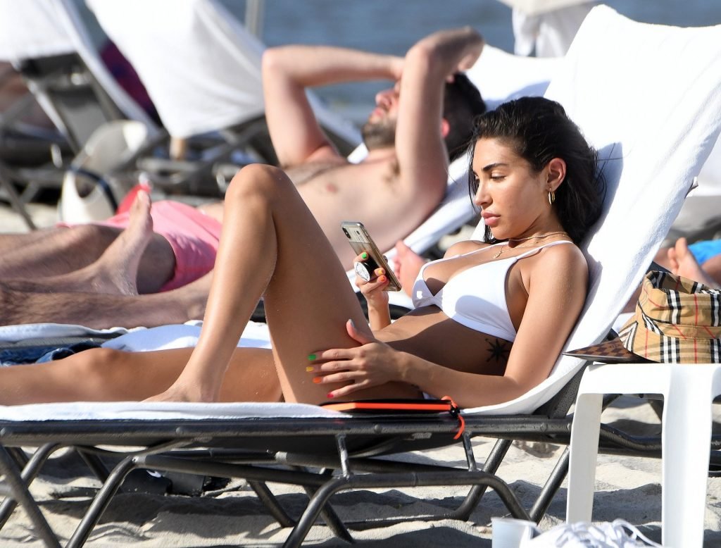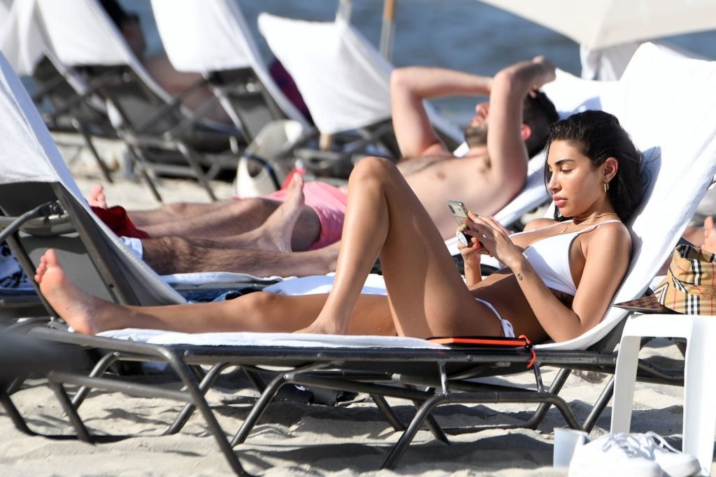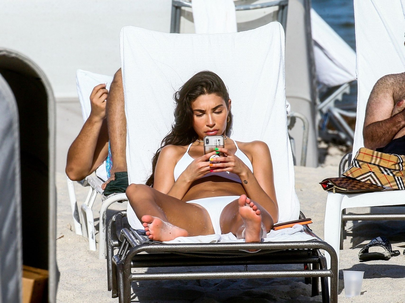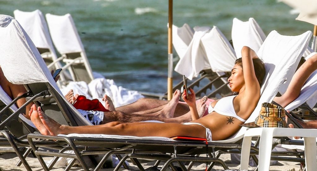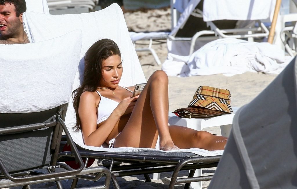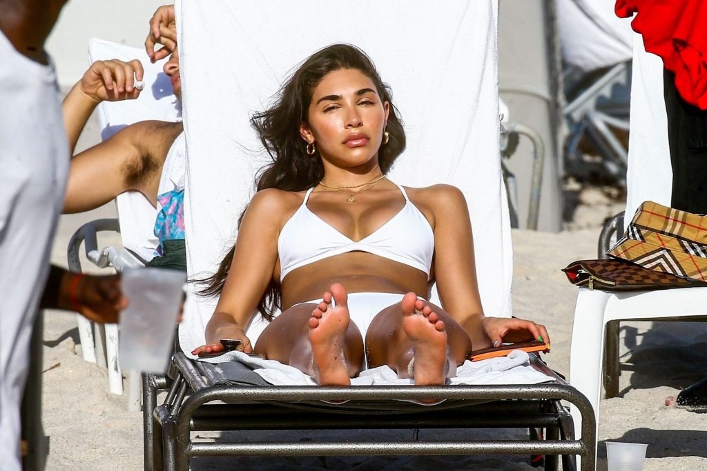 Chantel Jeffries está en Miami Beach disfrutando del sol y mostrando su físico tonificado y su bronceado dorado, 20/06/2019. La modelo/DJ estadounidense se recuesta en una silla de playa antes de levantarse y ponerse sus shorts de mezclilla.