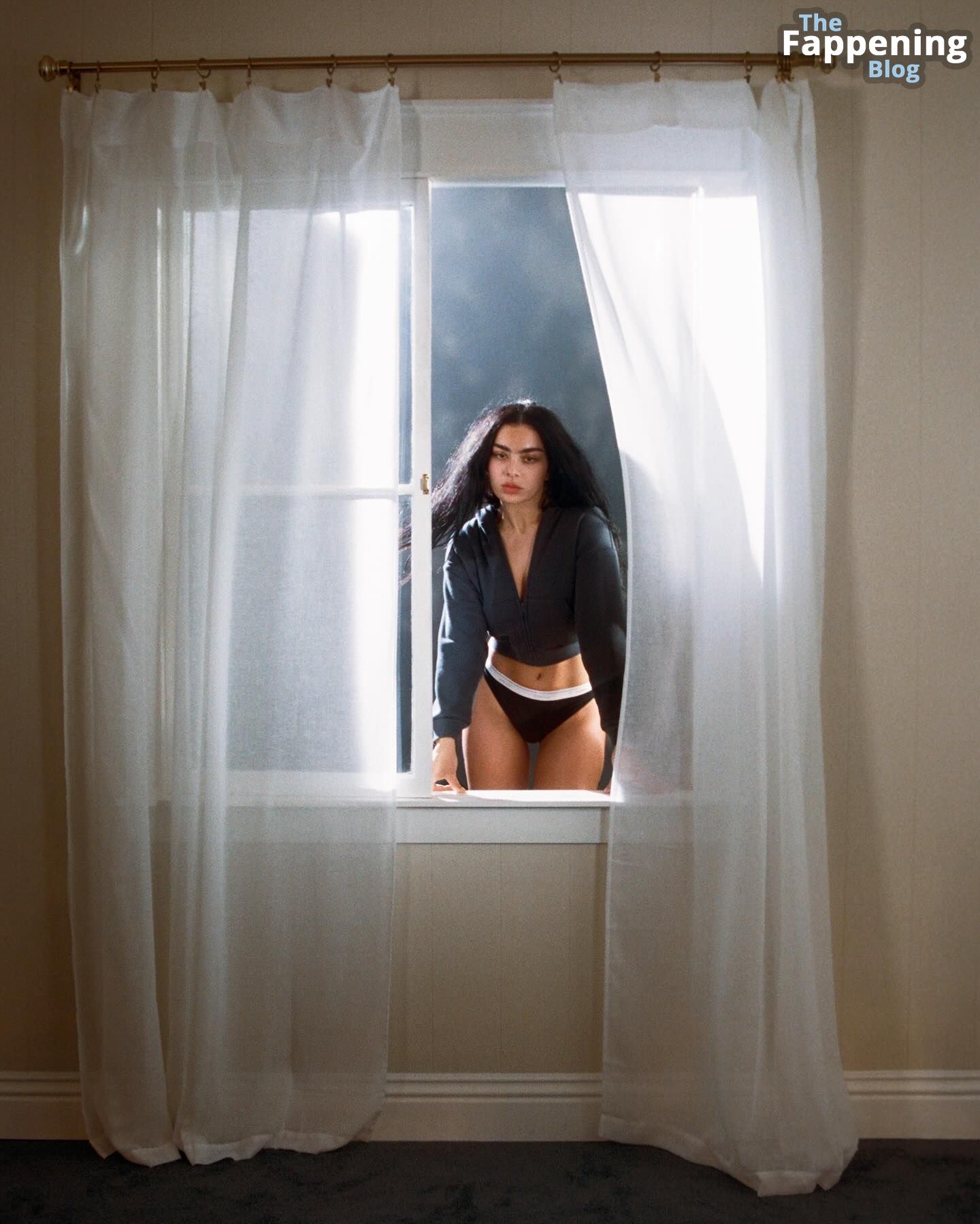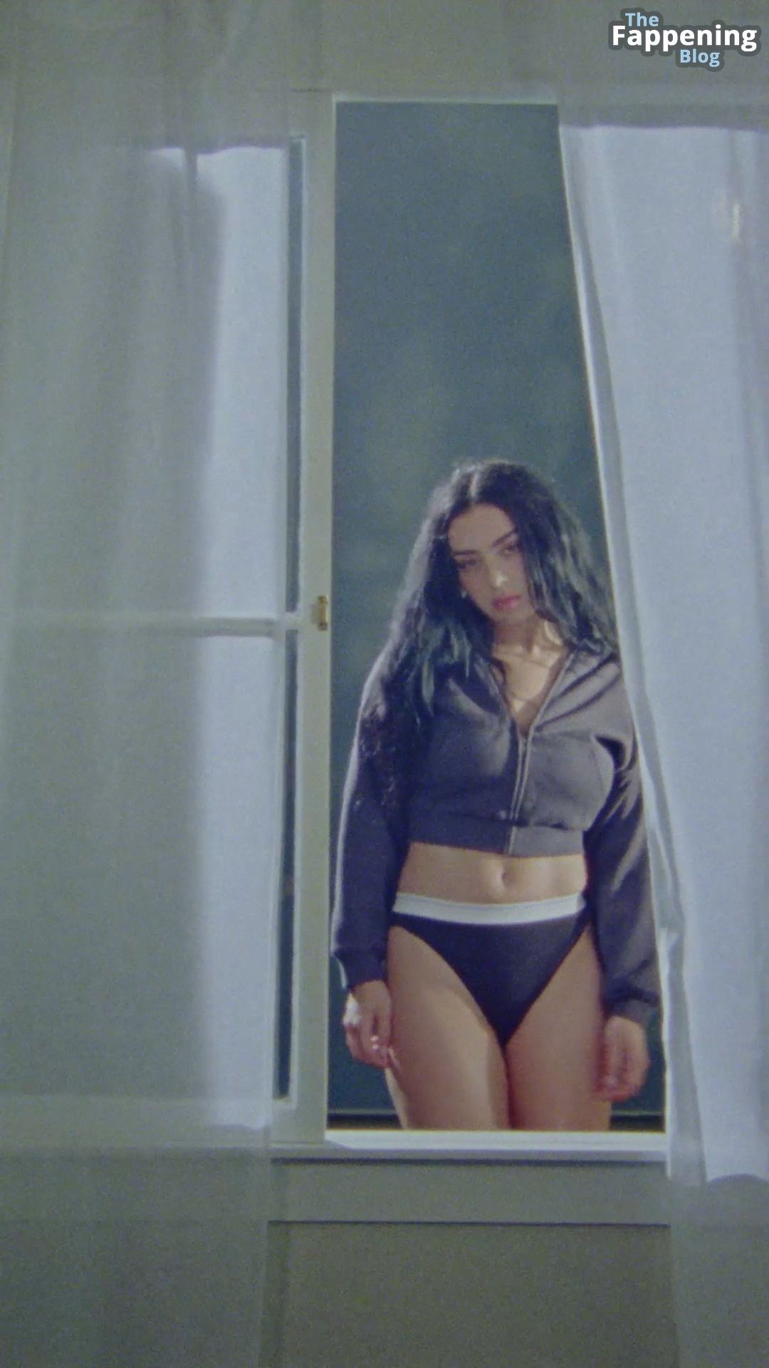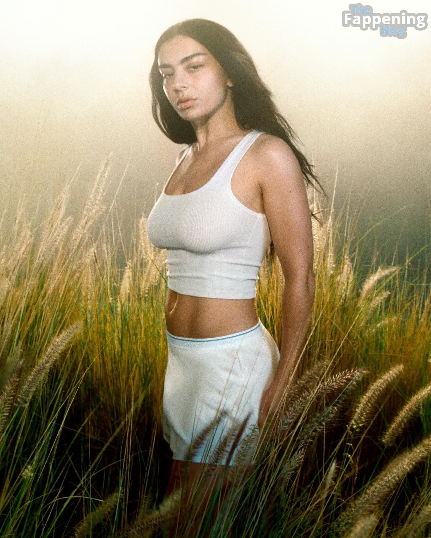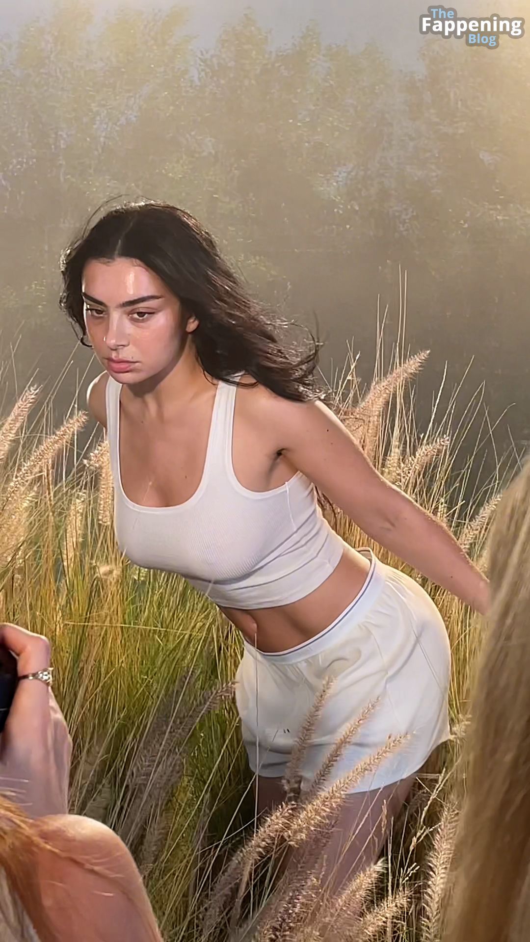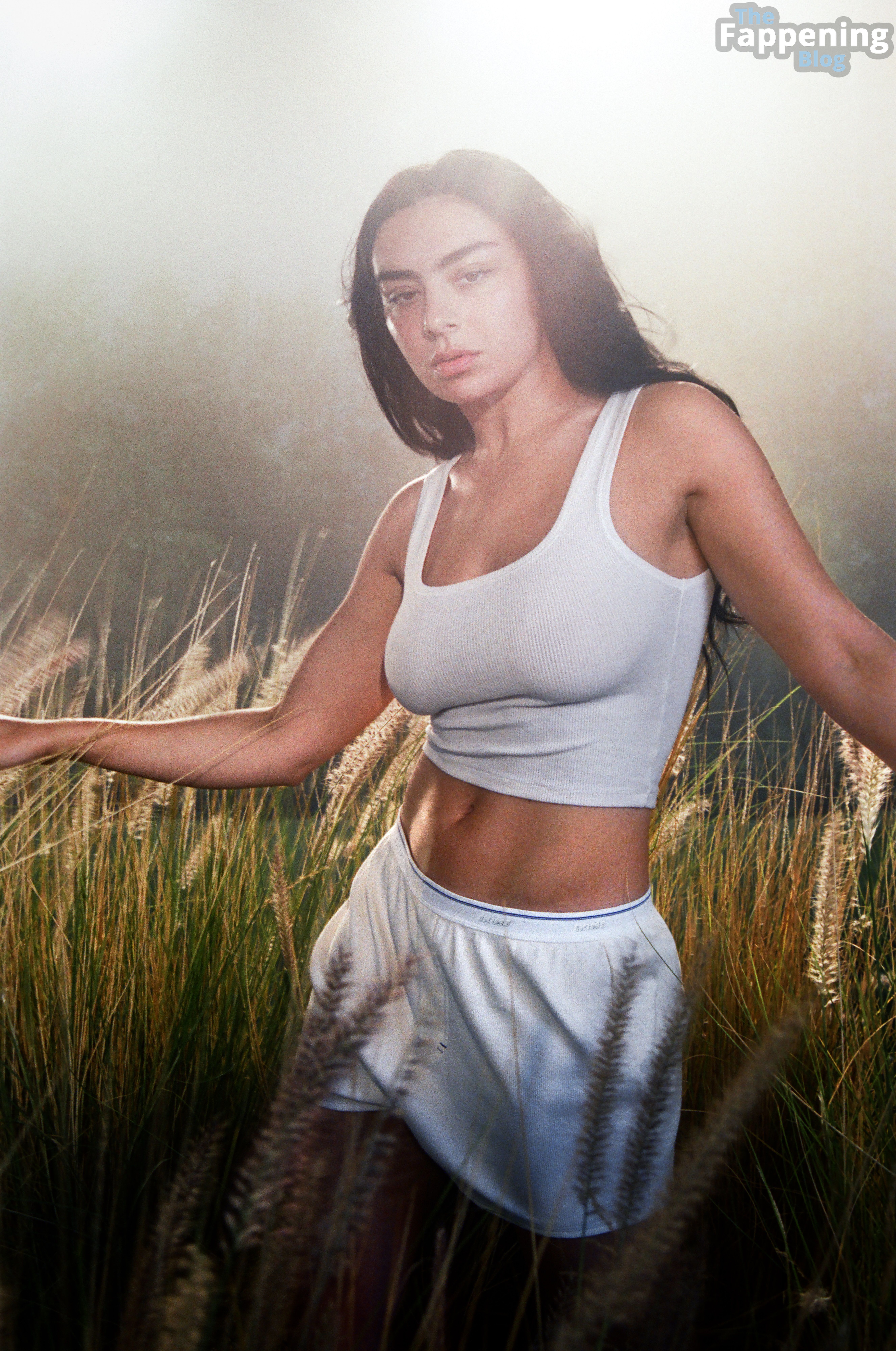 En otra imagen, Charli aparece en una escena lluviosa: su ropa interior transparente se moja, haciendo que su figura destaque aún más. Con el cabello mojado, una mirada segura y la luz atravesando la lluvia, es una imagen totalmente hipnotizante.