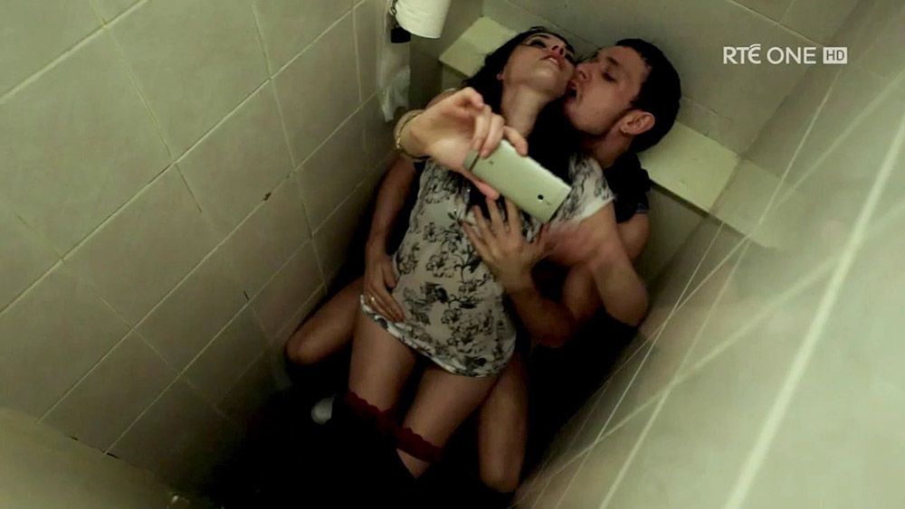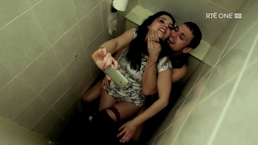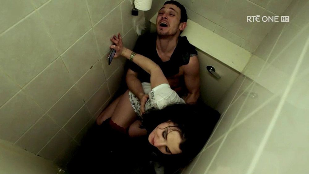 Luego se ve a Charlie Murphy desde arriba nuevamente, teniendo sexo con un hombre en un cubículo de baño. Ella lo monta de espaldas mientras él está sentado en el inodoro. Sus pantalones y bragas estaban bajados mientras se filmaban con una cámara de teléfono celular. Y algunas mujeres golpean la puerta afuera, tratando de entrar.