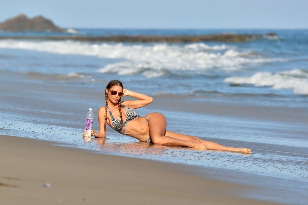 Charlie Riina posa en el set de una sesión de fotos en la playa 138 Water en Malibu, 19/09/2016. Charlie Riina es una modelo canadiense y Playmate internacional de Playboy. Edad: 32 (4 de enero de 1984)