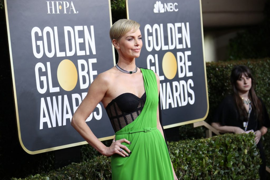 Charlize Theron dice que Bombshell (2019) demuestra que #MeToo es un tema bipartidista mientras camina por la alfombra roja de los Globos de Oro en Beverly Hills, 01/05/2020. Gracias a su papel en la película Bombshell (2019), en la que interpreta a la ex presentadora de Fox News Megyn Kelly, la actriz está nominada a Mejor Actriz en un Drama.
