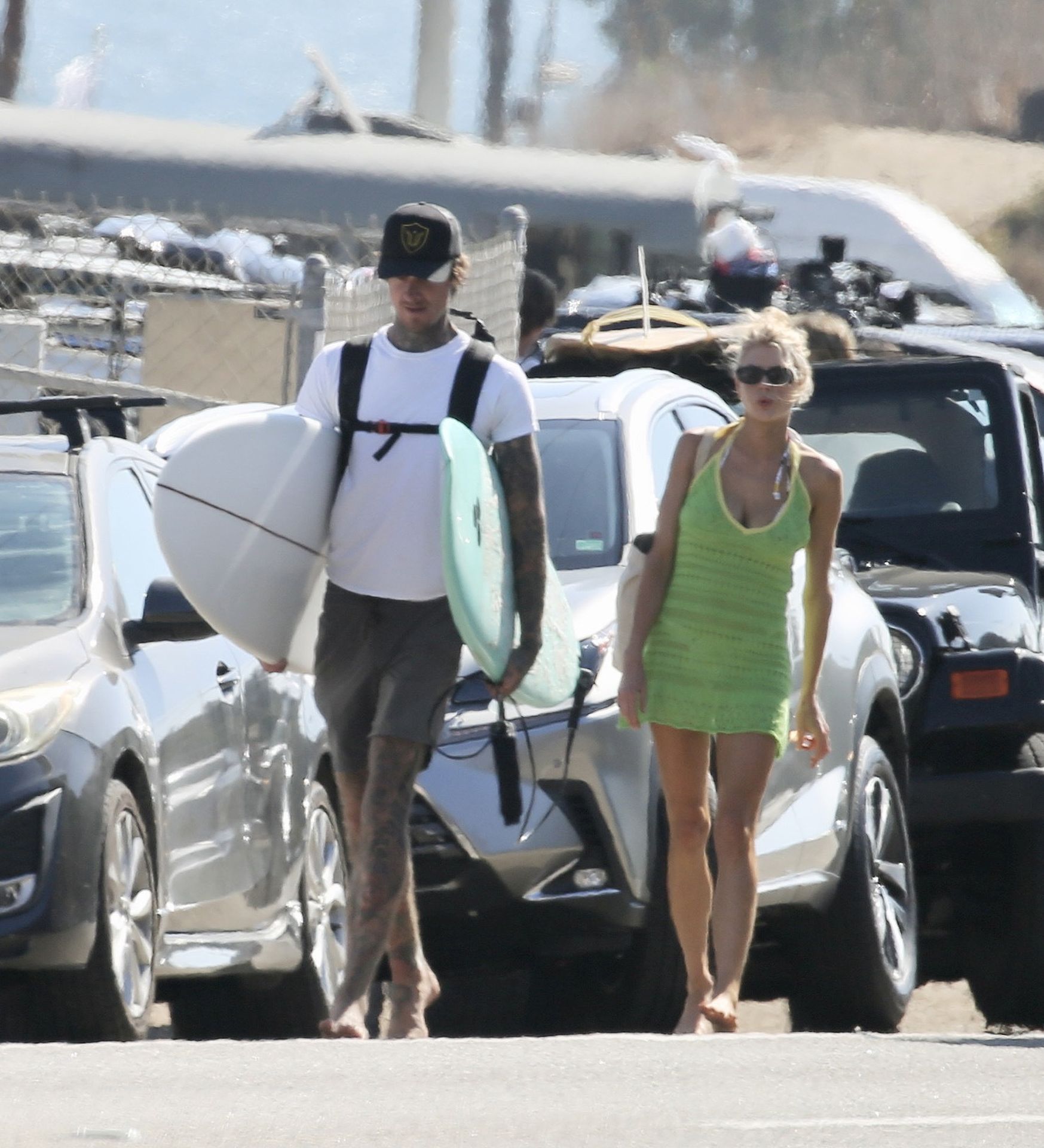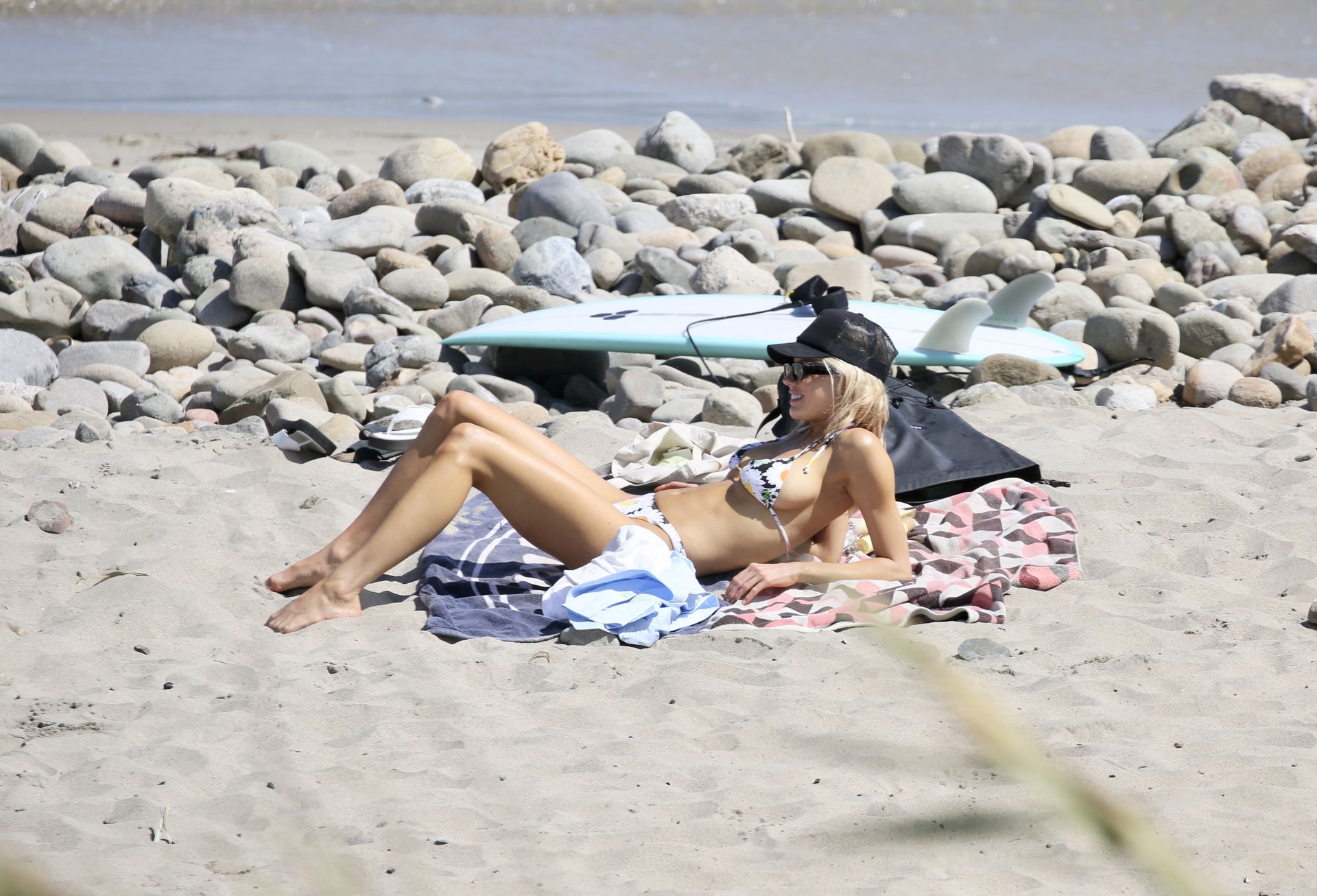 La actriz y modelo de 27 años salió con su novio Nathan Kostechko mientras llevaba una gorra negra de camionero junto con un bikini de dos piezas con estampado mientras tomaba el sol.