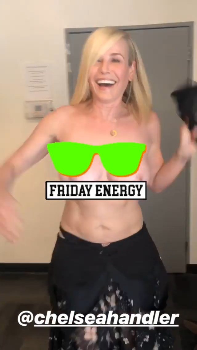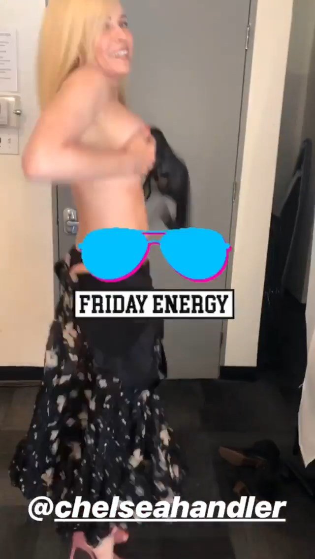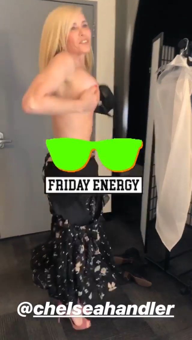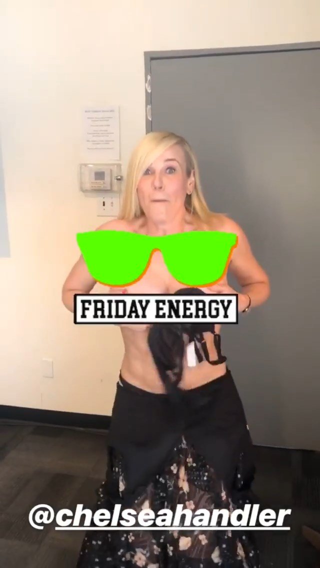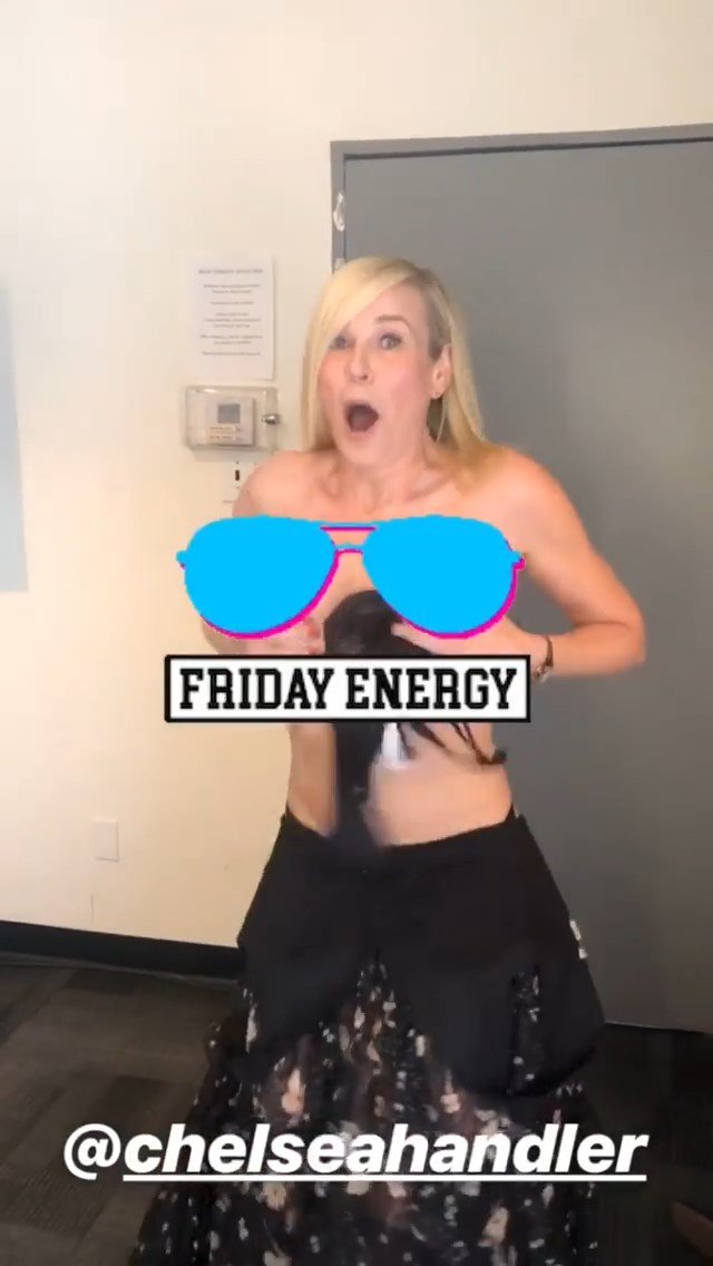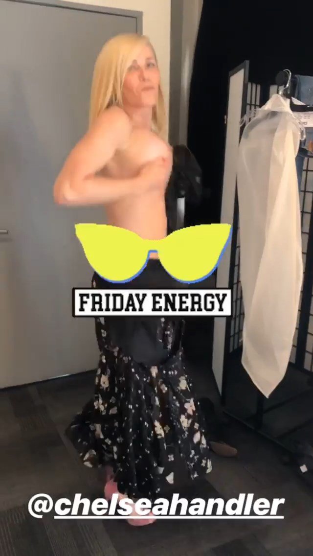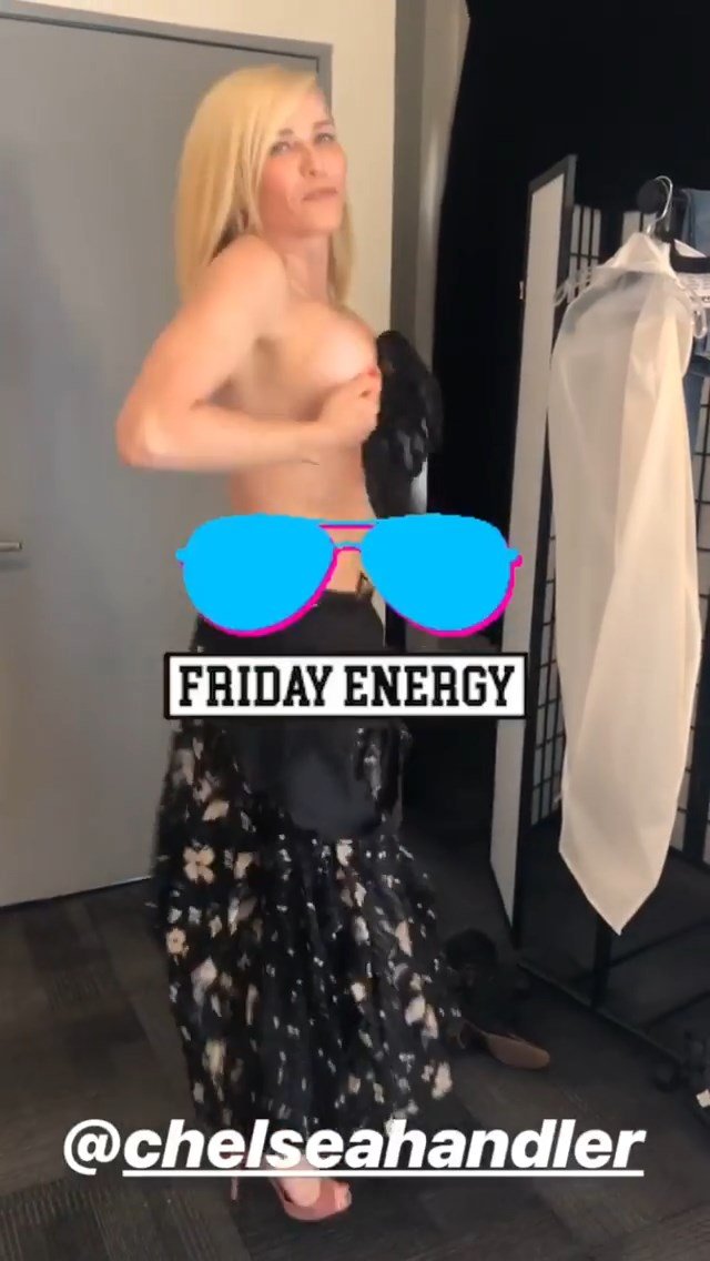 La comediante estadounidense Chelsea Handler mostró sus pechos desnudos durante la preparación para el programa “Busy Tonight” – Instagram, 14/05/2019.