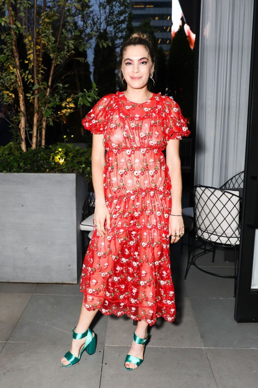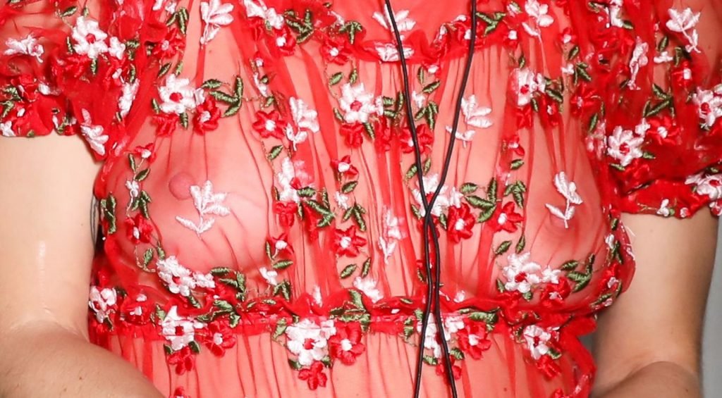 DJ Chelsea Leyland mostró sus pechos con un vestido rojo transparente en el Evento de Talento Creativo Británico BFC en la ciudad de Nueva York, 05/06/2019.