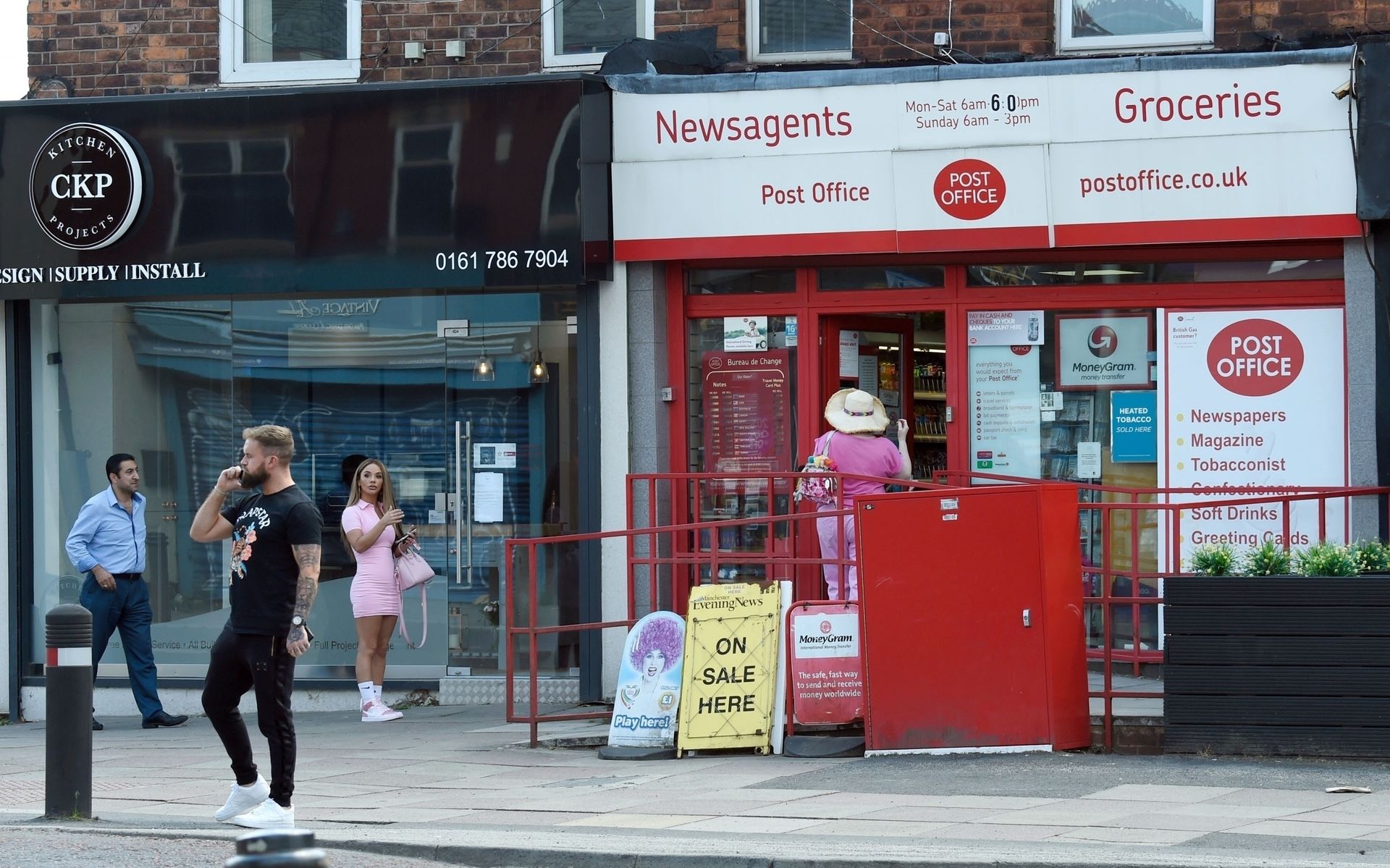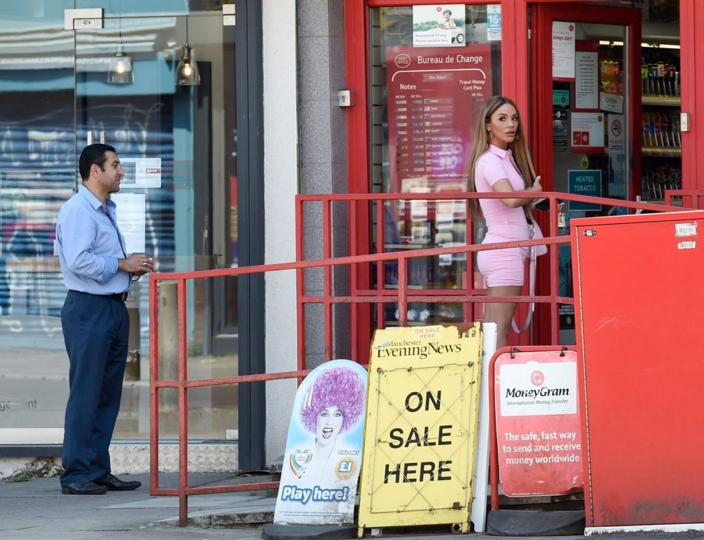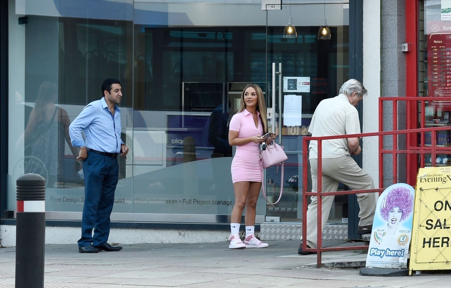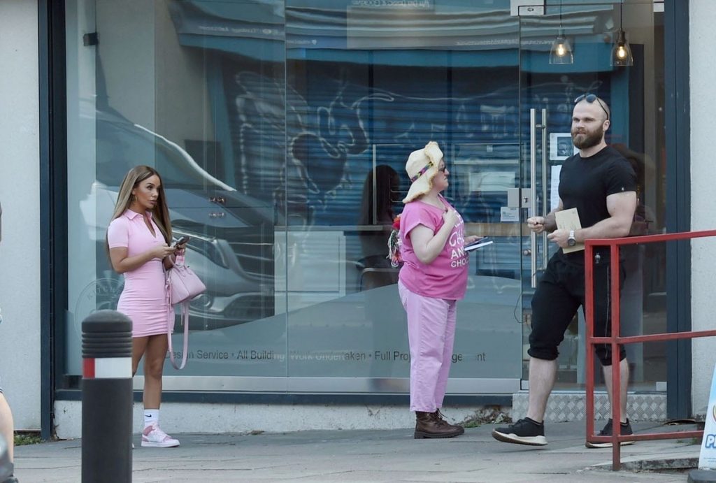 La ex actriz de Hollyoaks Chelsee Healey sigue las reglas de distanciamiento social esta vez mientras se la ve haciendo fila para la oficina de correos en Manchester luciendo muy veraniega con un conjunto todo rosa, 01/06/2020.