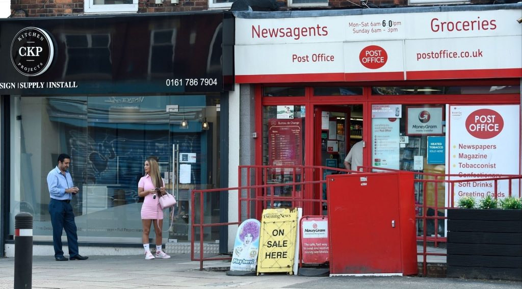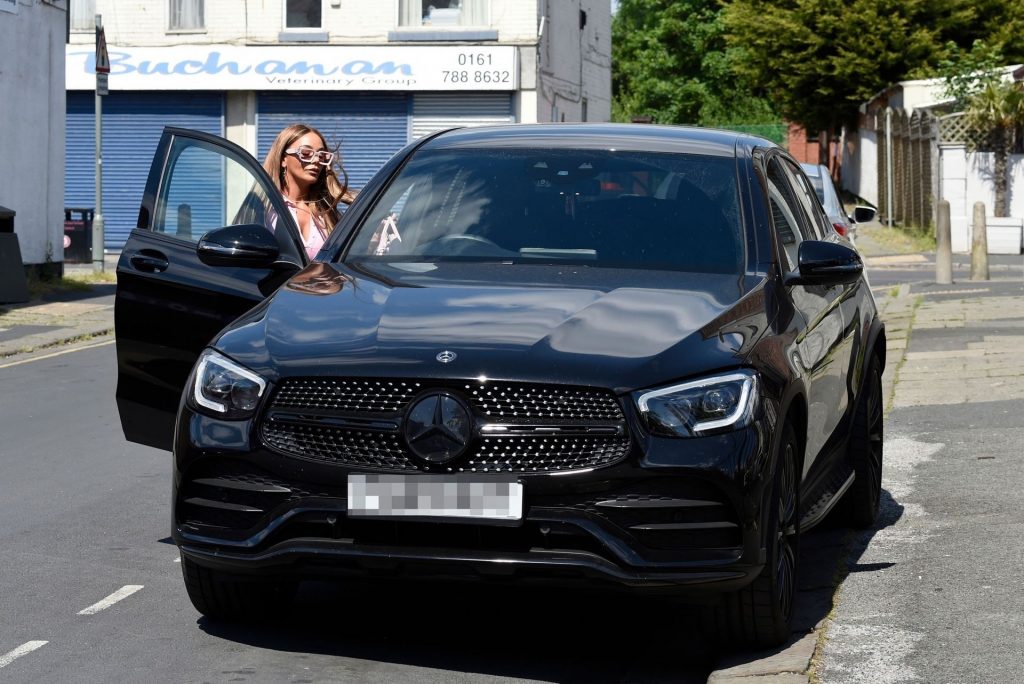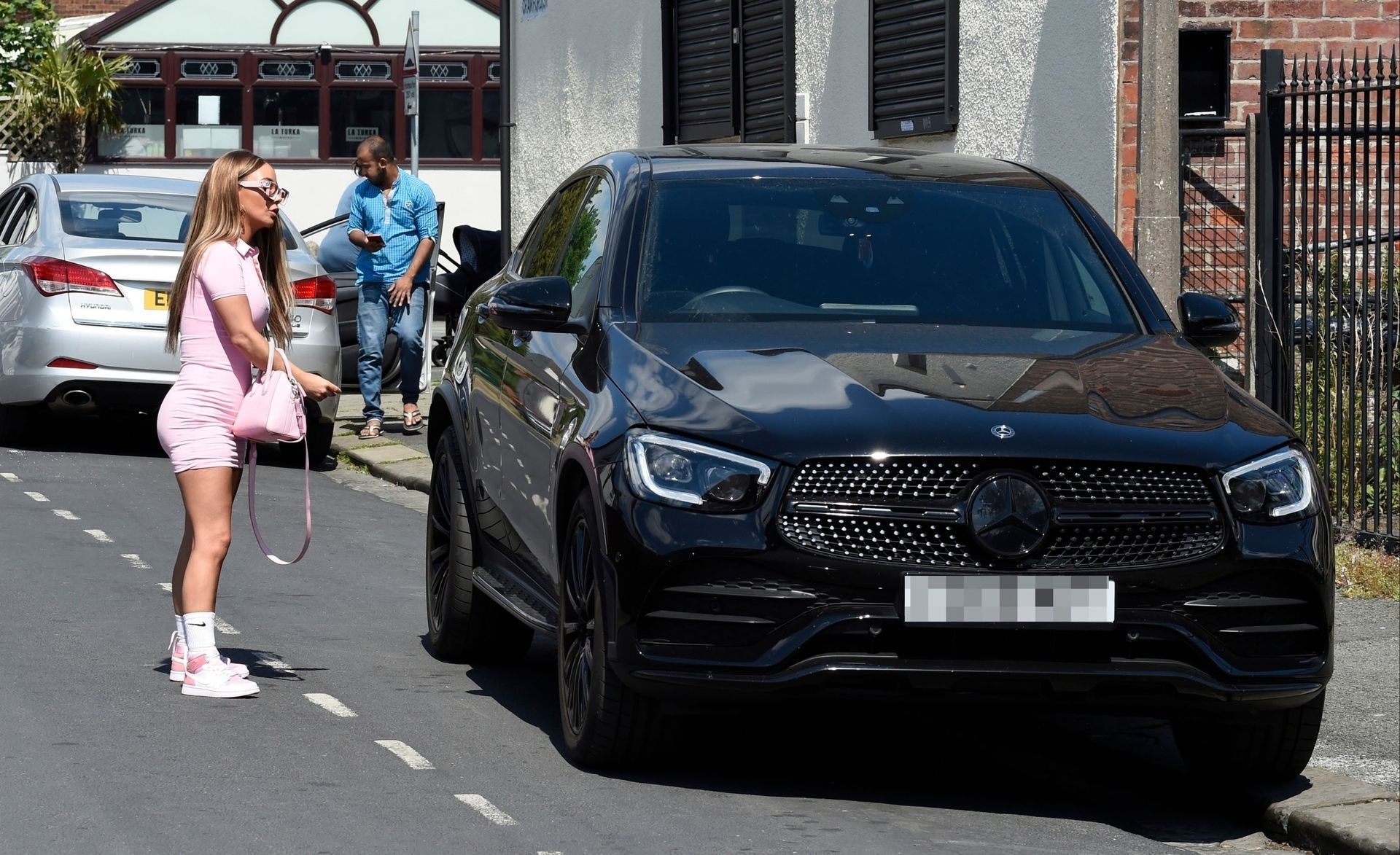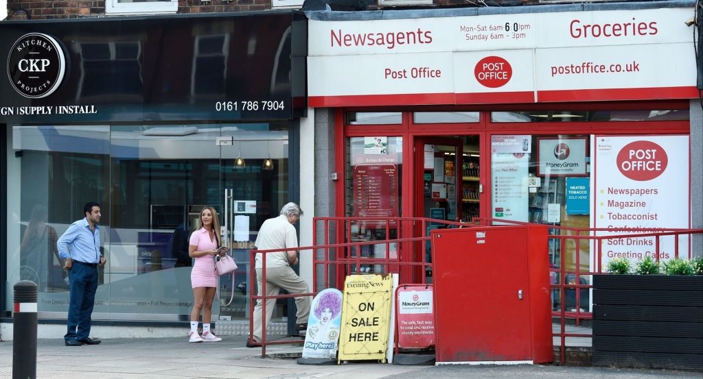La ex actriz de Hollyoaks Chelsee Healey sigue las reglas de distanciamiento social esta vez mientras se la ve haciendo fila para la oficina de correos en Manchester luciendo muy veraniega con un conjunto todo rosa, 01/06/2020.