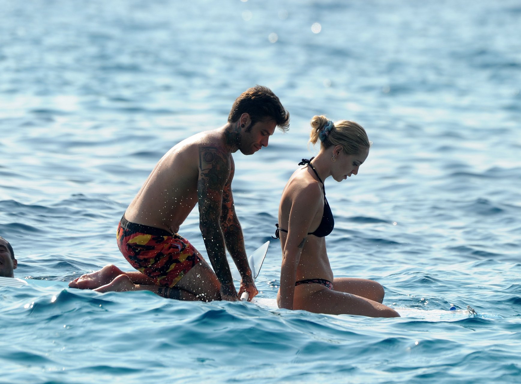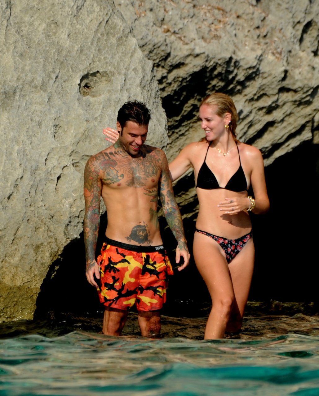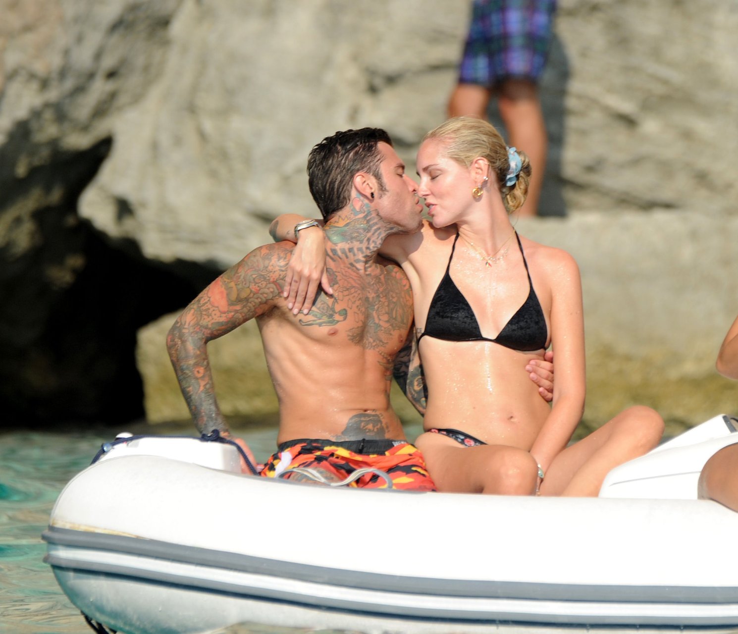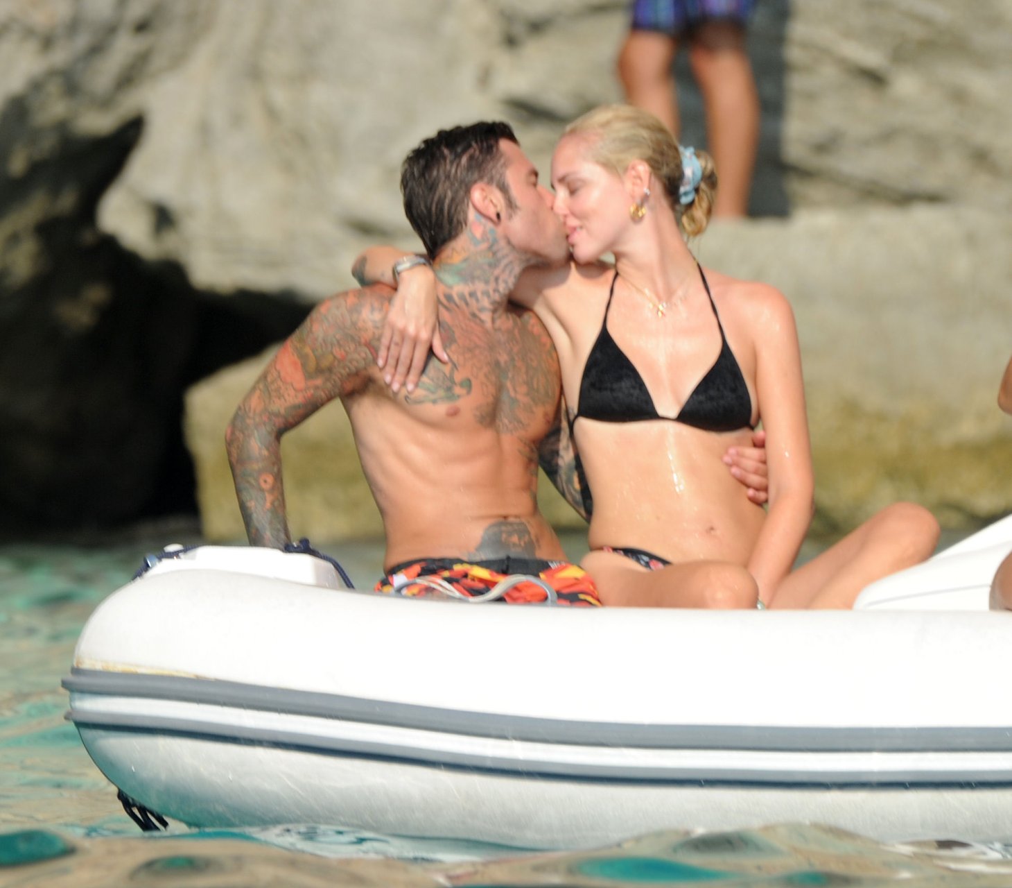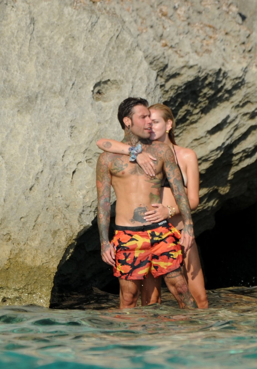 El rapero italiano, Fedez, y la empresaria/bloguera de moda italiana, Chiara Ferragni (31), fueron vistos disfrutando de un día en un pequeño yate en Ibiza, España, 08/05/2018. Se les vio besándose y saltando al océano.