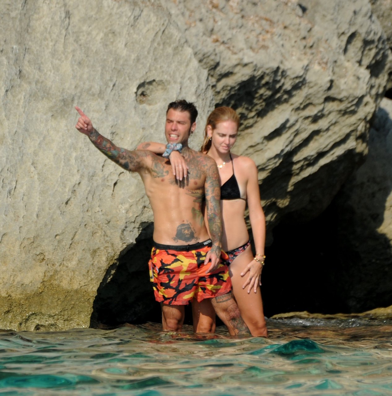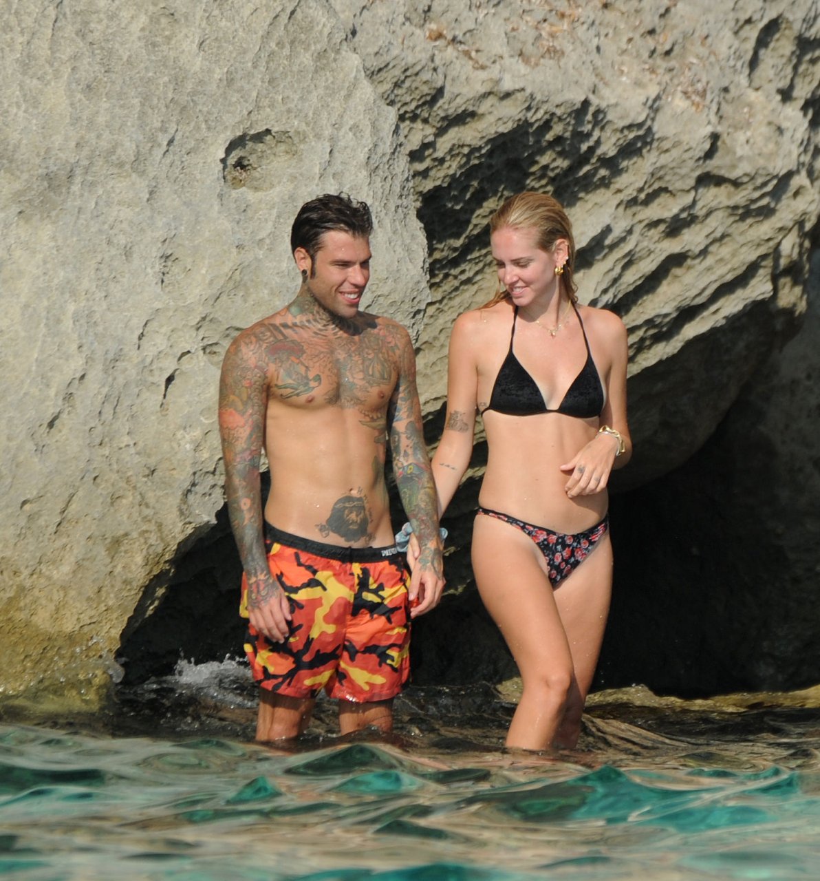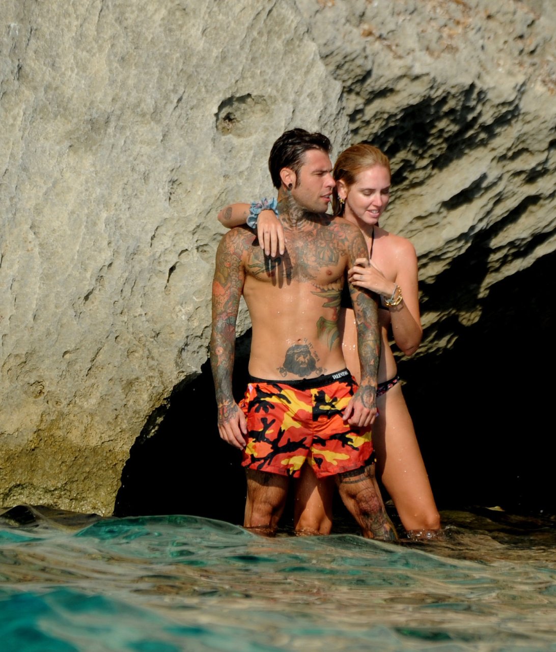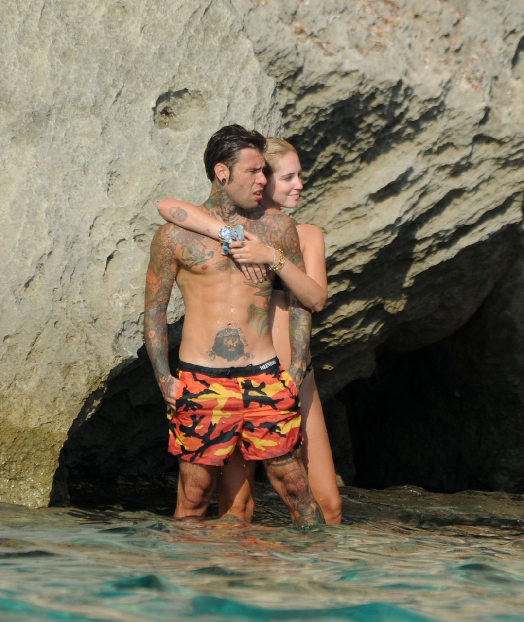El rapero italiano, Fedez, y la empresaria/bloguera de moda italiana, Chiara Ferragni (31), fueron vistos disfrutando de un día en un pequeño yate en Ibiza, España, 08/05/2018. Se les vio besándose y saltando al océano.