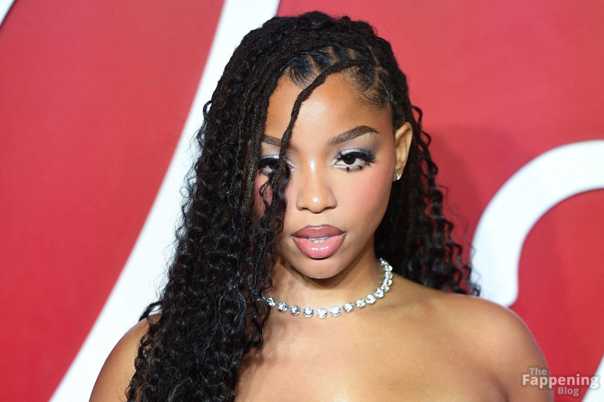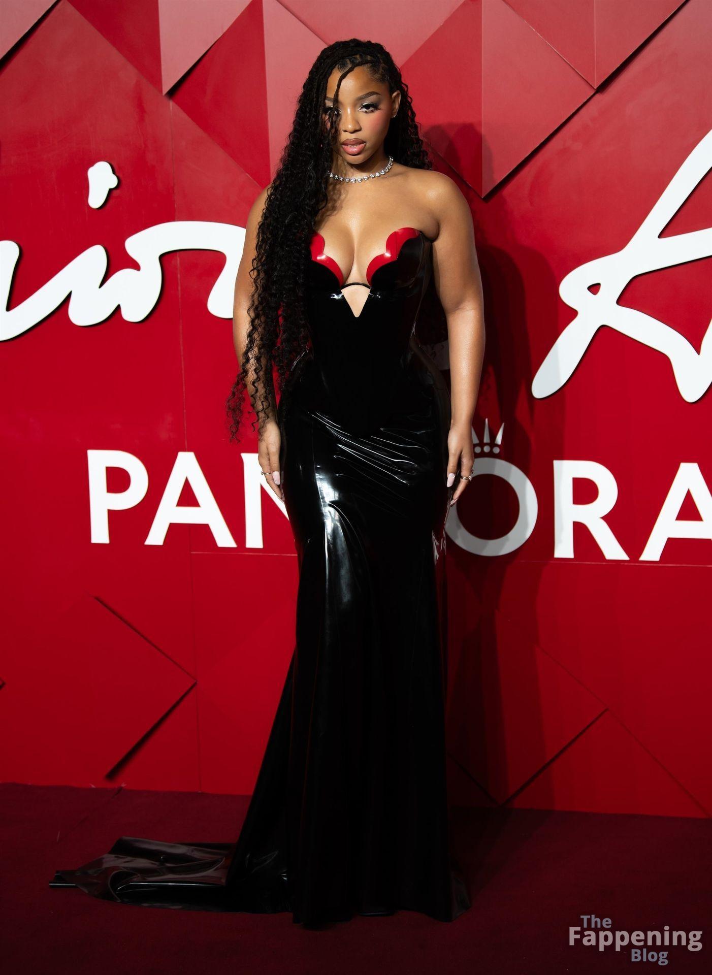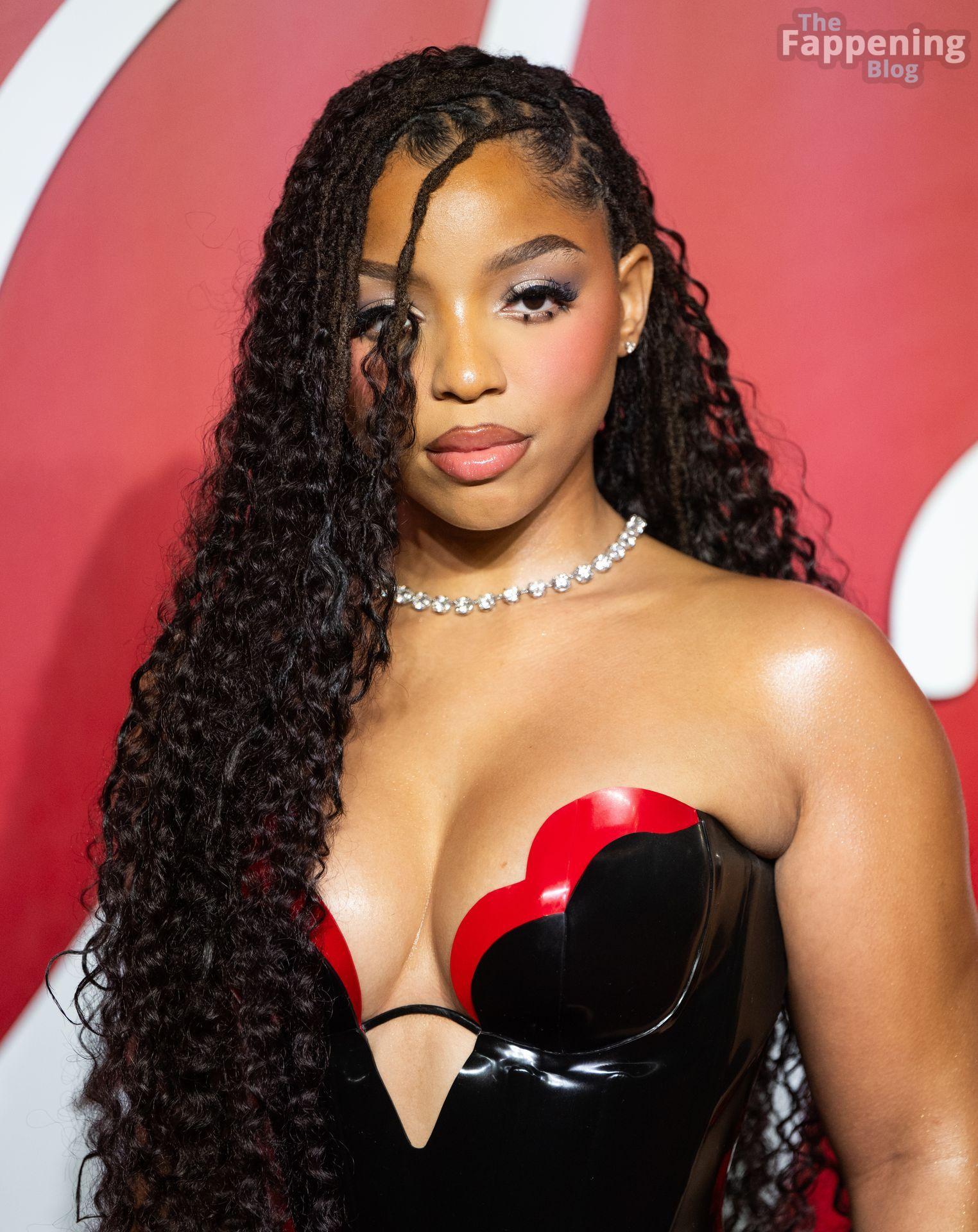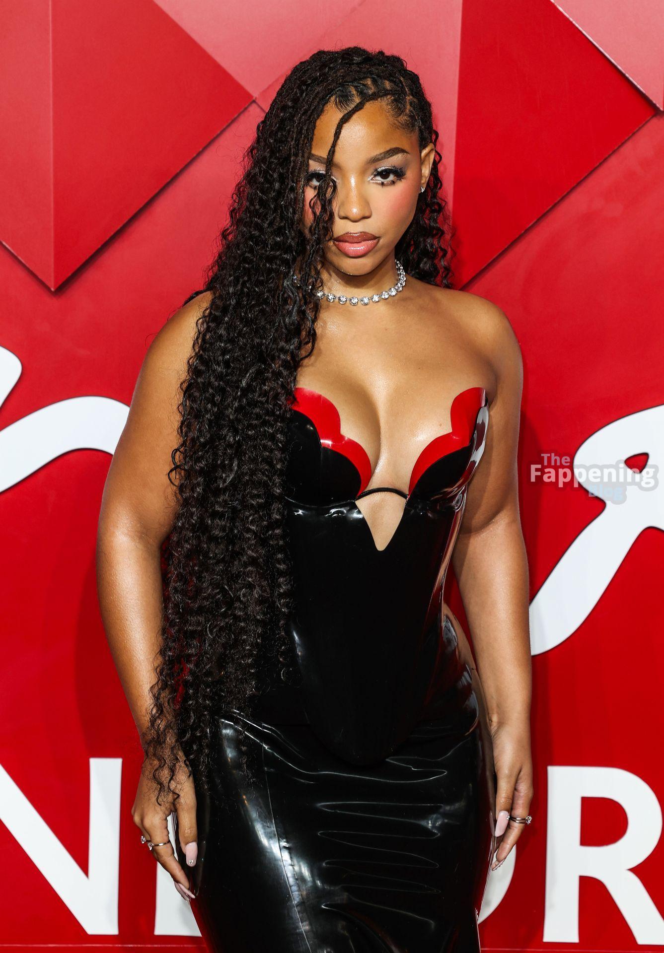 Chloe Bailey aparece en un atrevido vestido de cuero negro y rojo que resalta todas sus curvas y su escote.