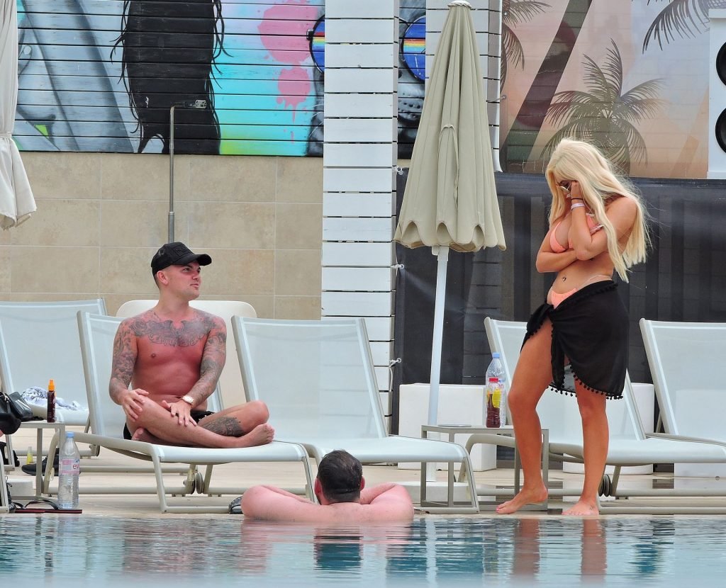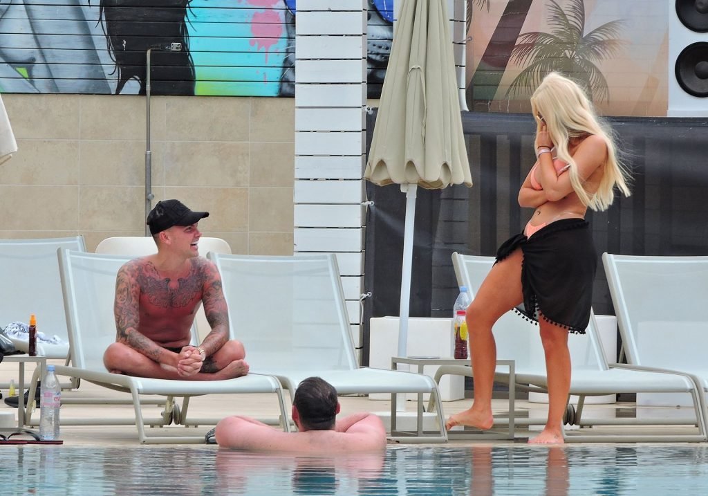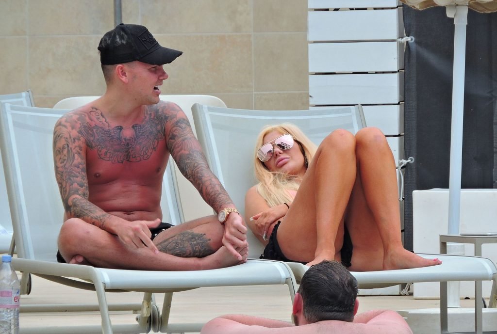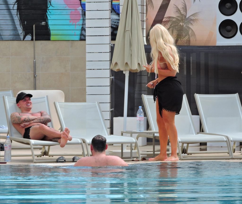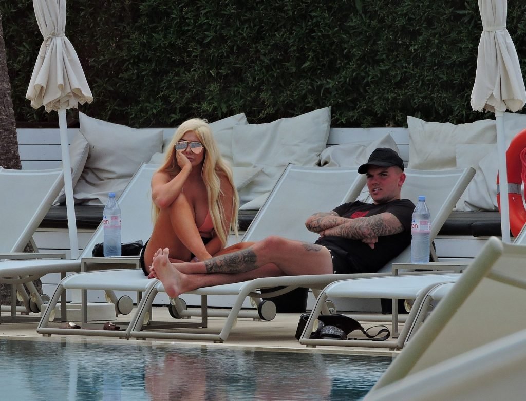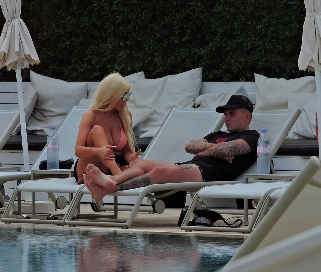 La estrella inglesa de telerrealidad Chloe Ferry y su novio intermitente Sam Gowland son vistos descansando junto a la piscina mientras están de vacaciones juntos en Magaluf, Mallorca, 21/05/2019.