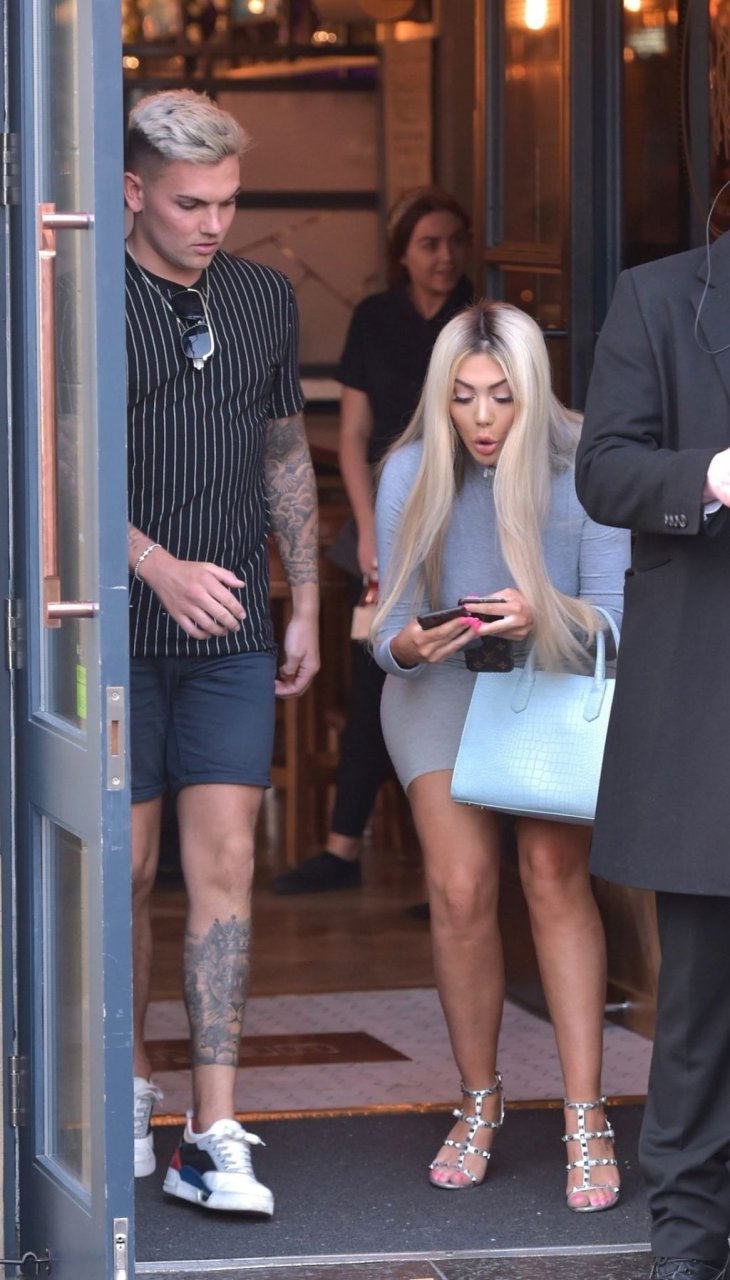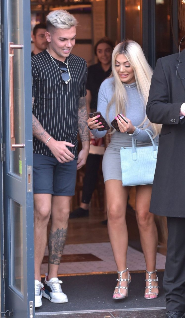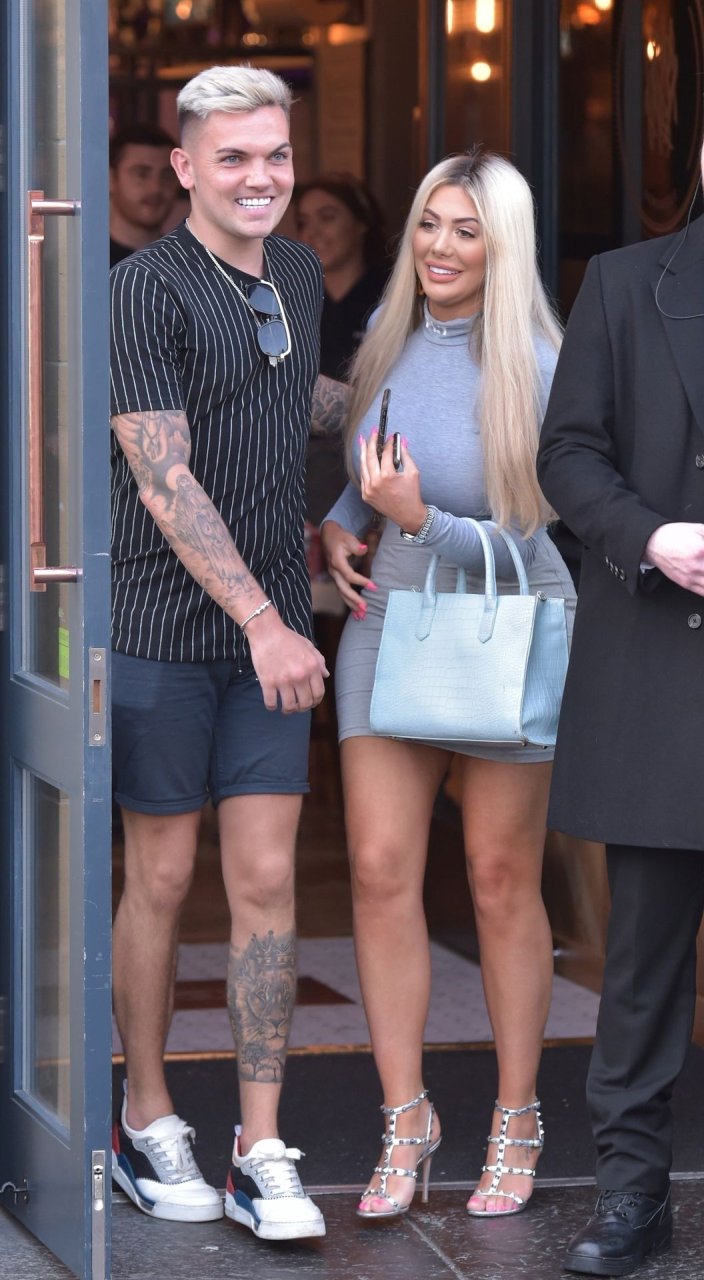 Geordie Shore’s Chloe Ferry y Sam Gowland disfrutan de una noche de cita en Toon, 27/04/2019. La pareja disfrutó de comida y cócteles en el nuevo Restaurante Banyan en el centro de Newcastle.