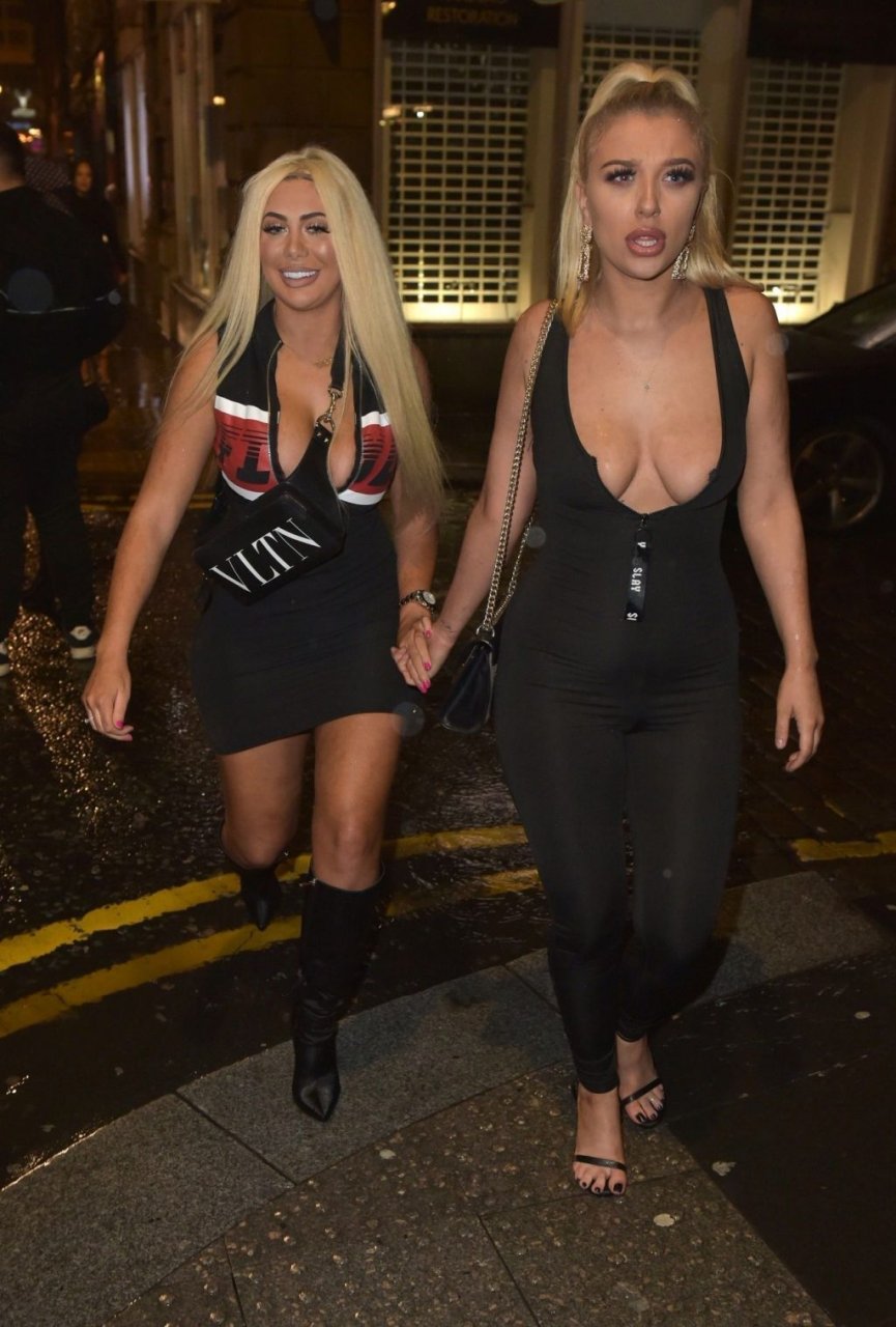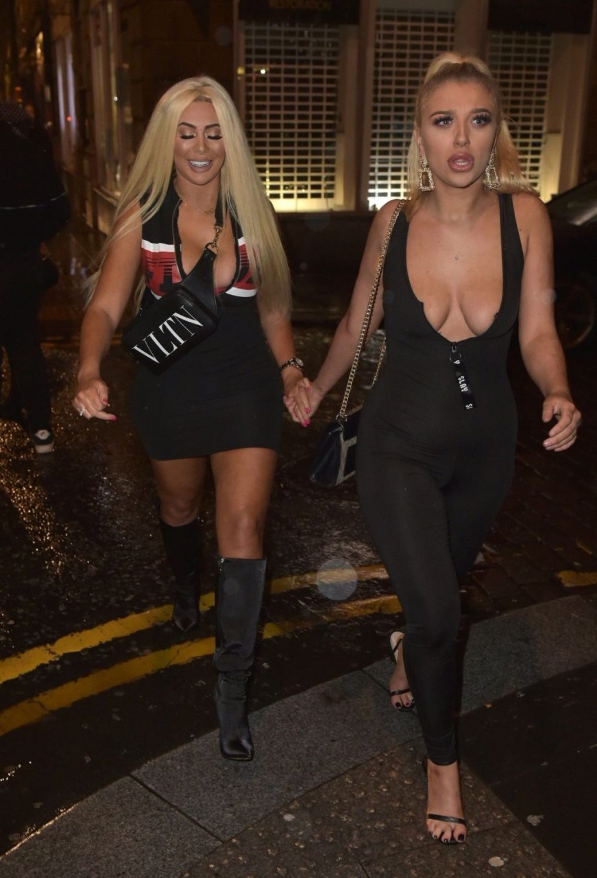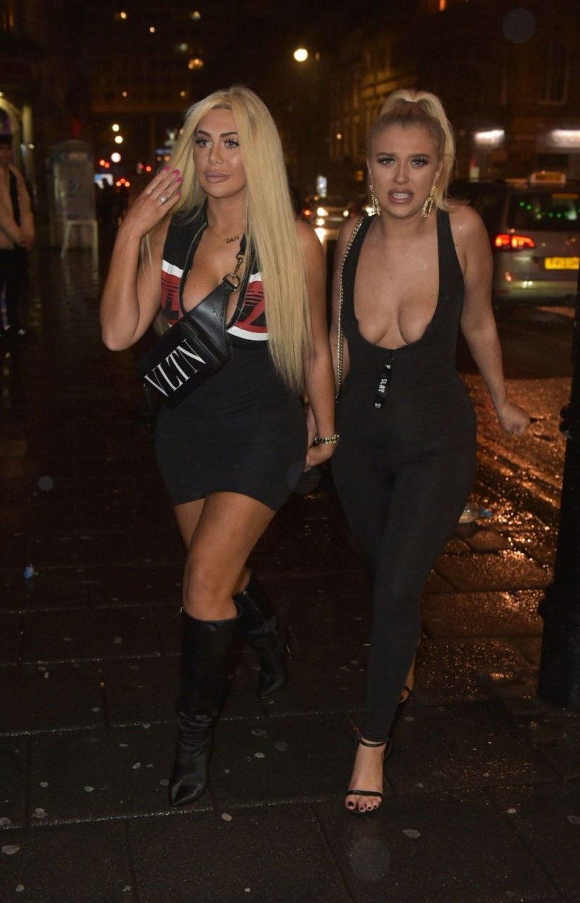 Chloe Ferry pasa otro viernes por la noche en Toon con la ex estrella de “Geordie Shore” Bethan Kershaw (ex de Gaz Beadle) mientras su novio Sam Gowland festeja a 30 millas de distancia con amigos, 21/12/2018. Chloe fue fotografiada en Newcastle después de visitar Bijoux y House of Smith.