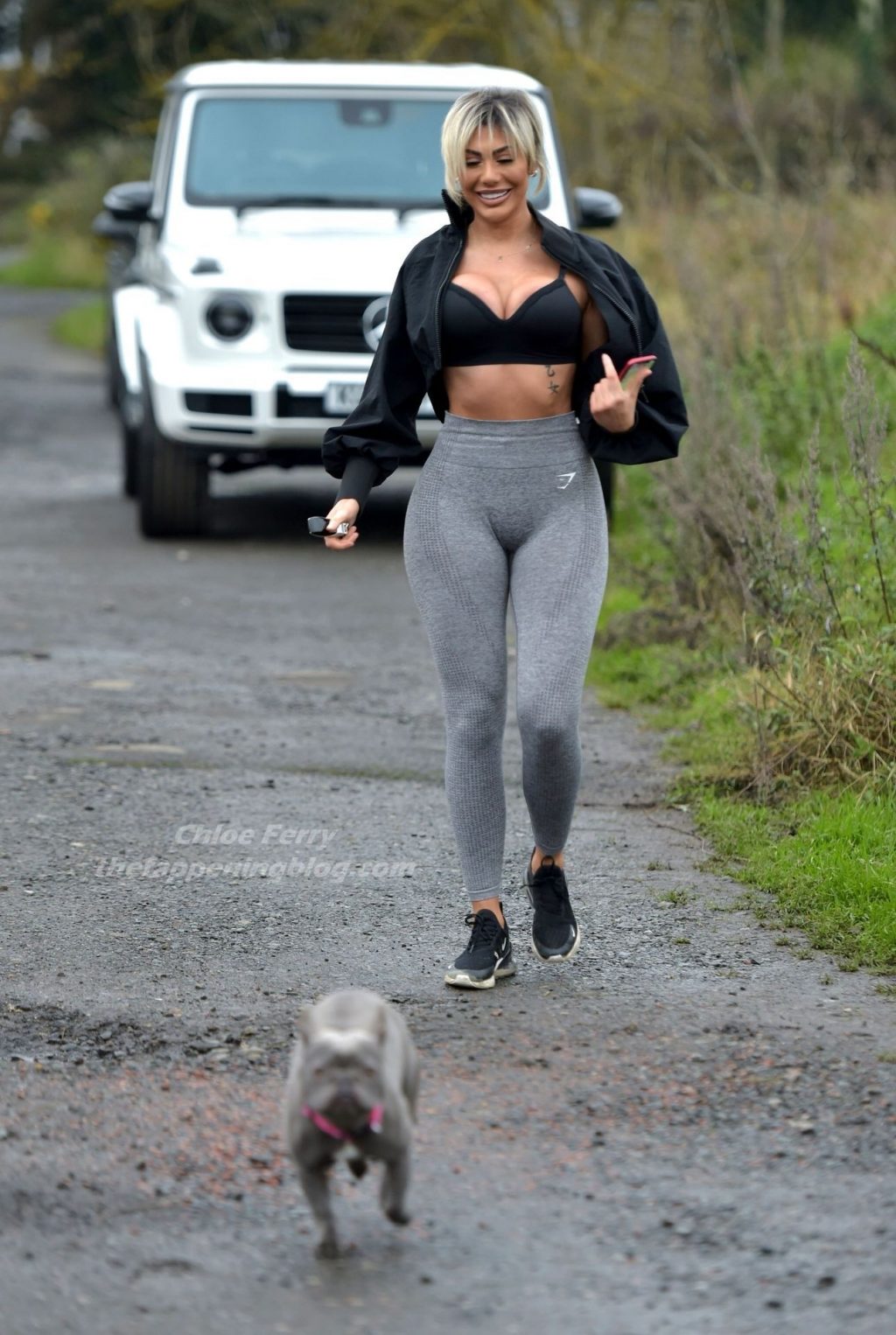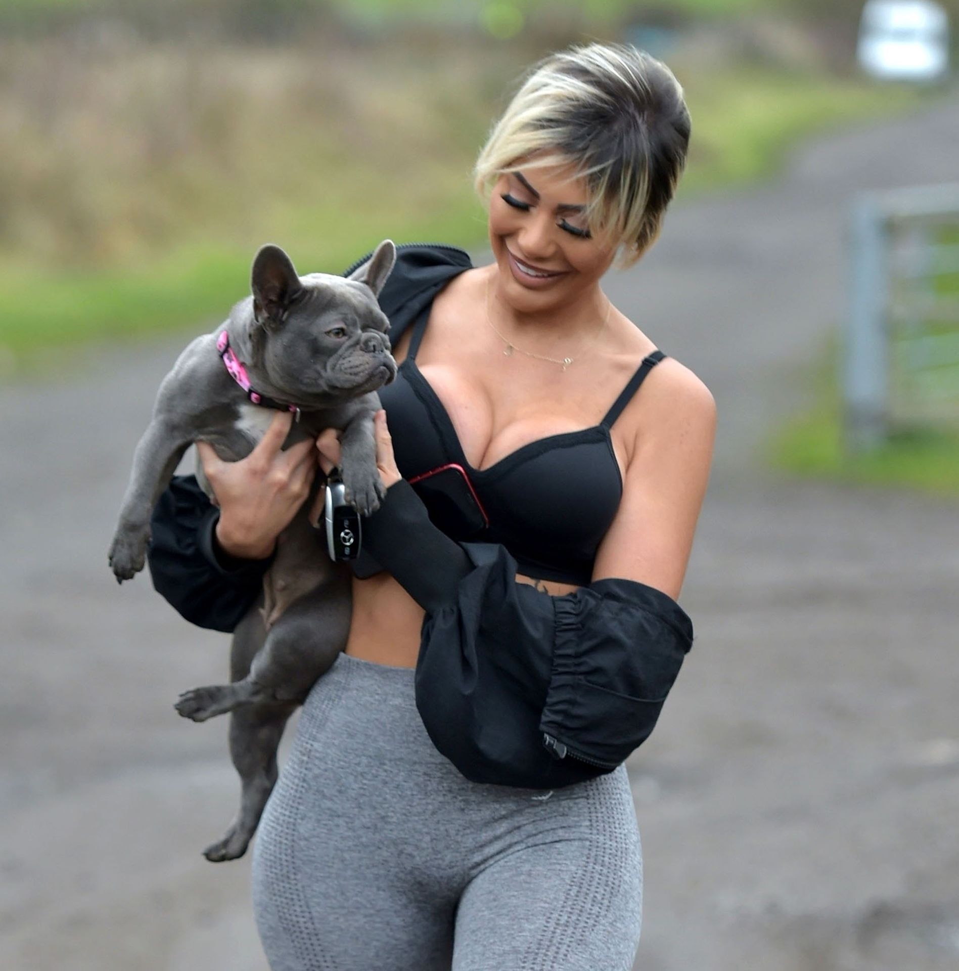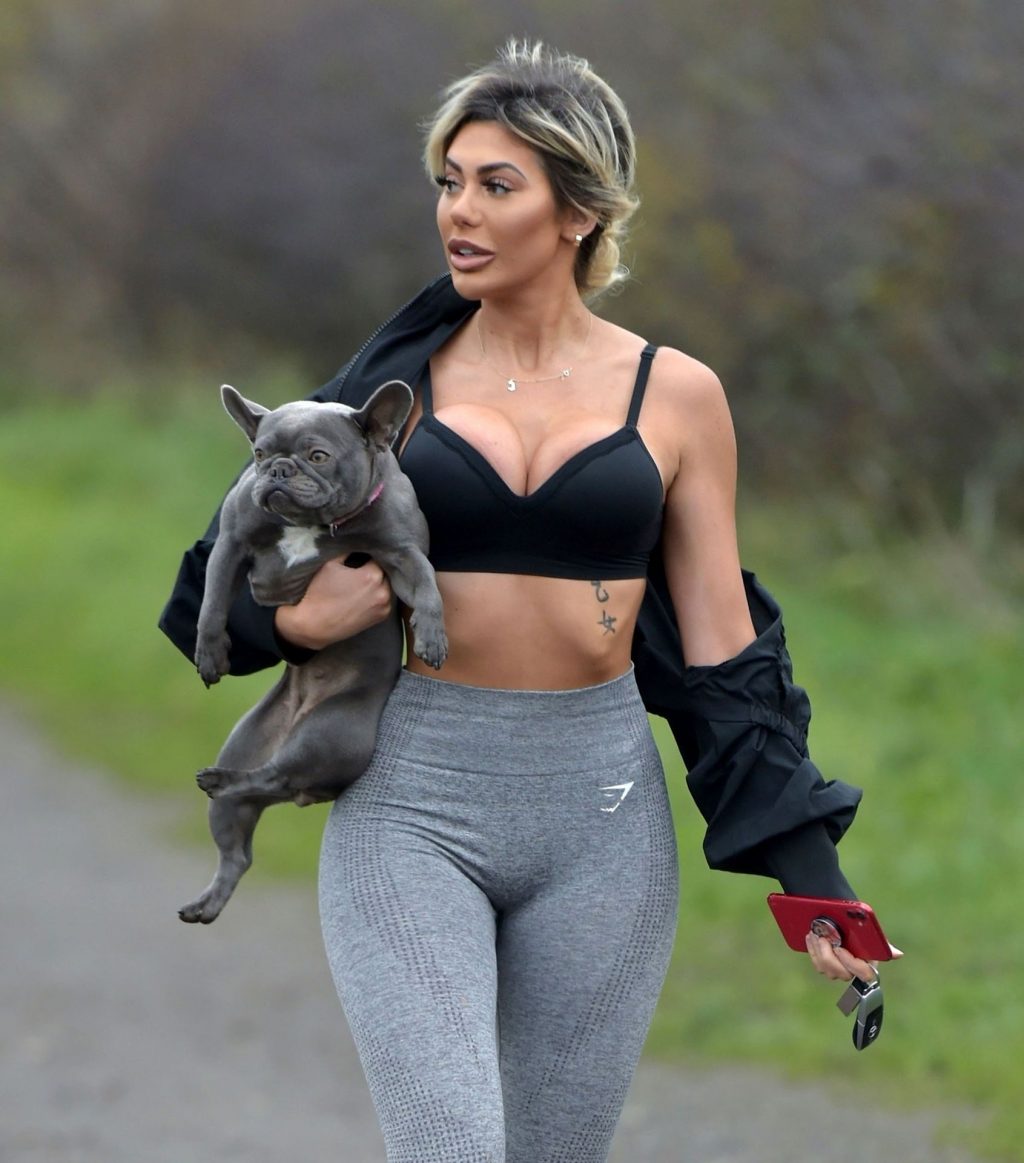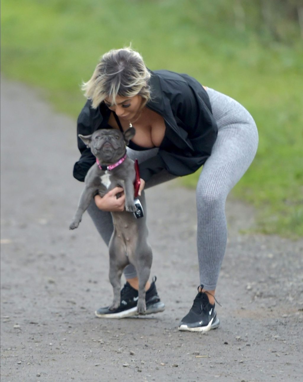 Busty Chloe Ferry muestra su reducción de pecho mientras pasea a su perro durante el confinamiento.