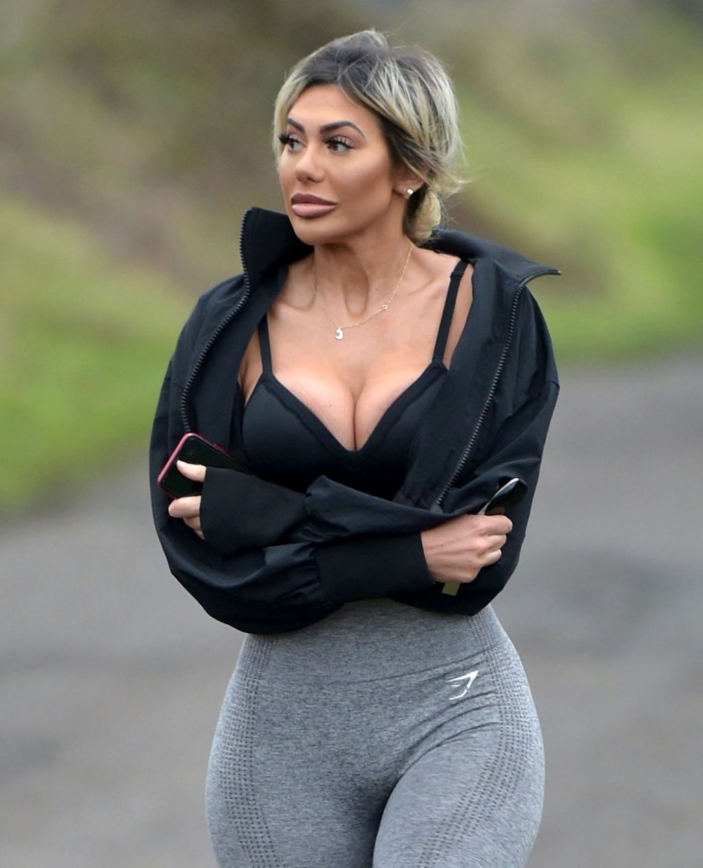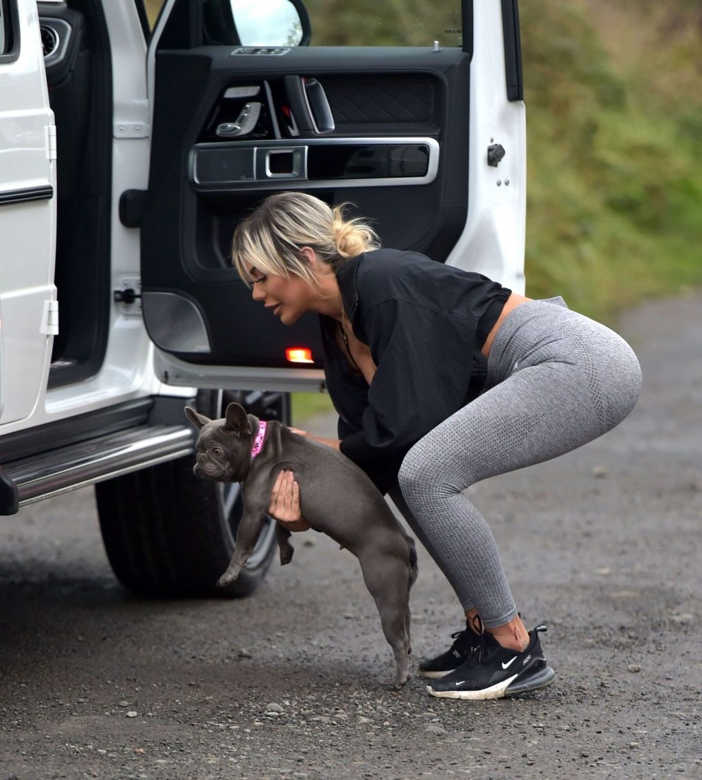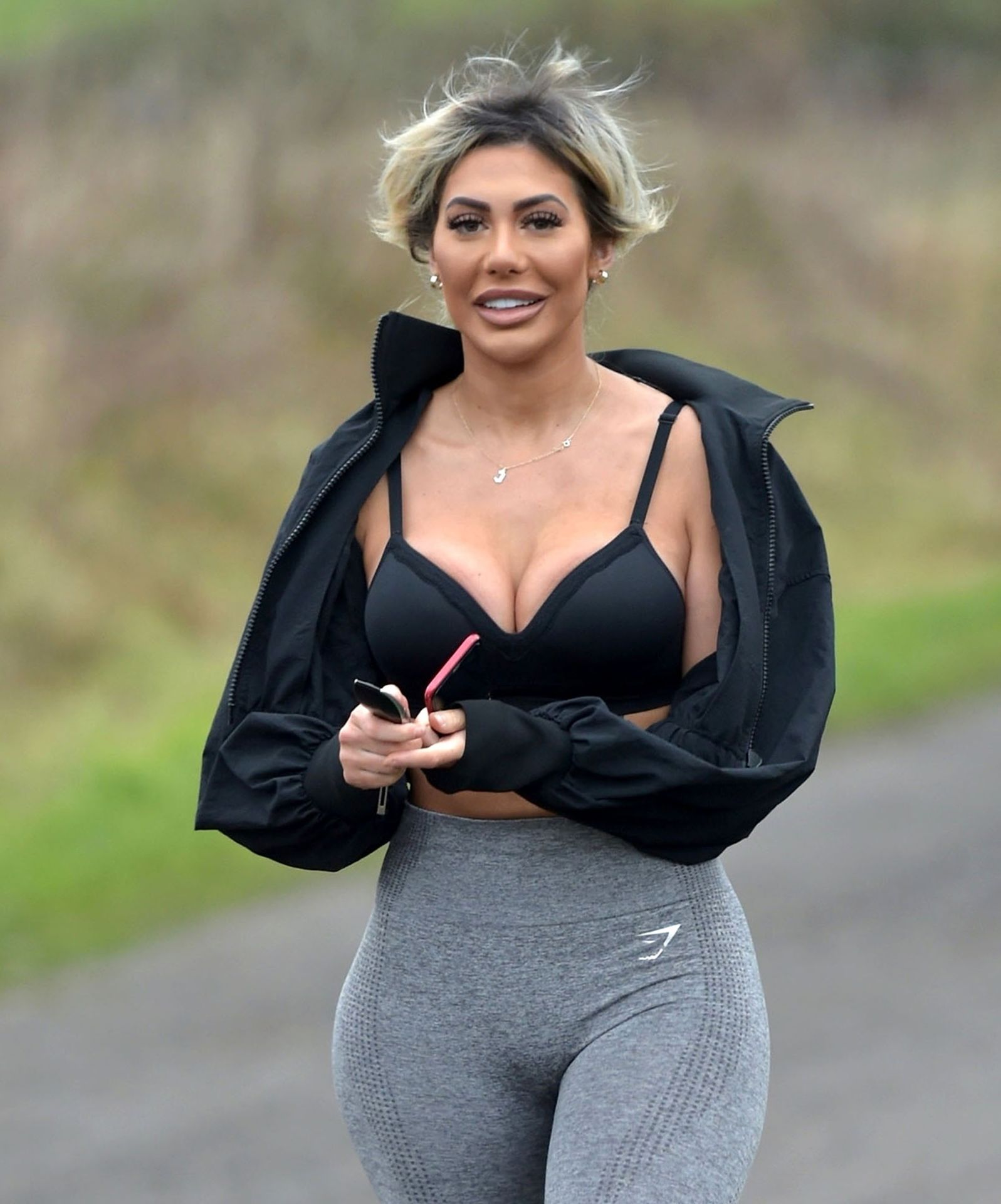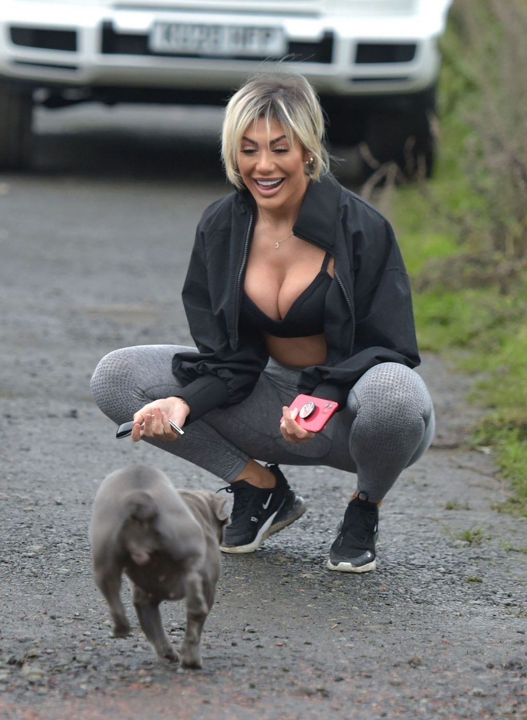 Busty Chloe Ferry muestra su reducción de pecho mientras pasea a su perro durante el confinamiento.