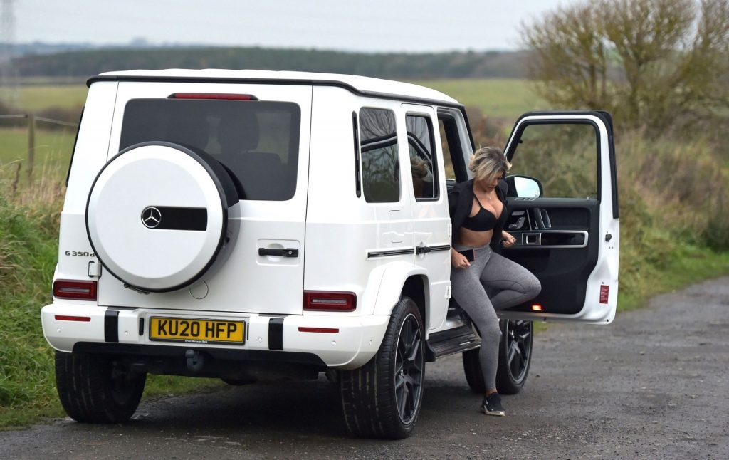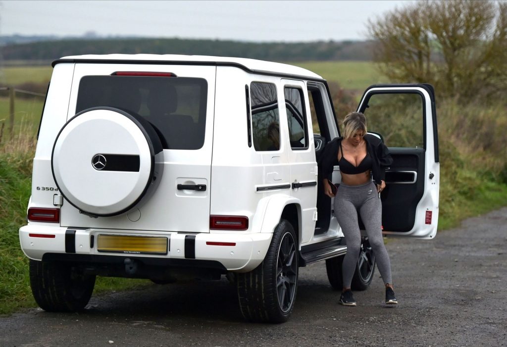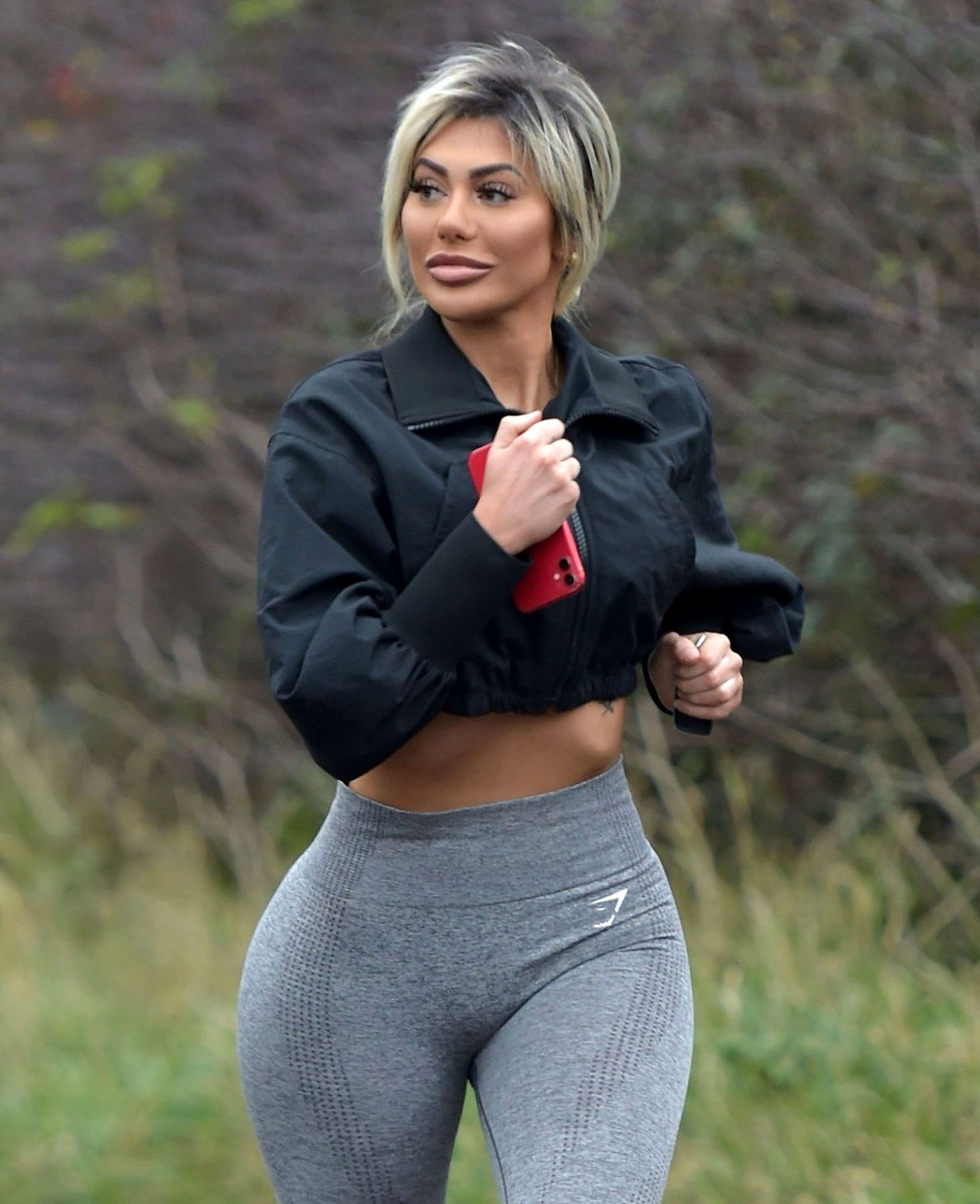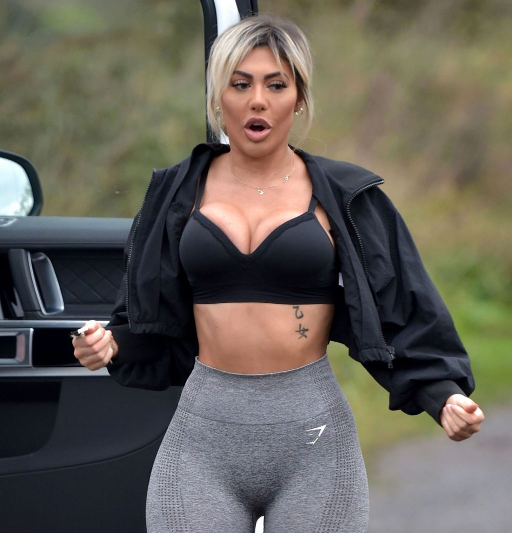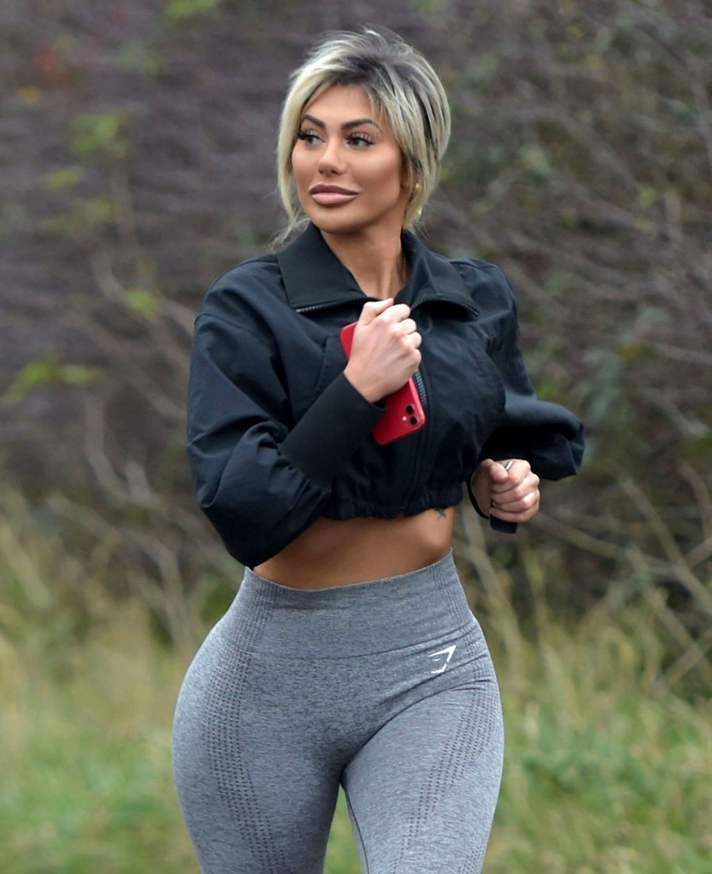 Busty Chloe Ferry muestra su reducción de pecho mientras pasea a su perro durante el confinamiento.