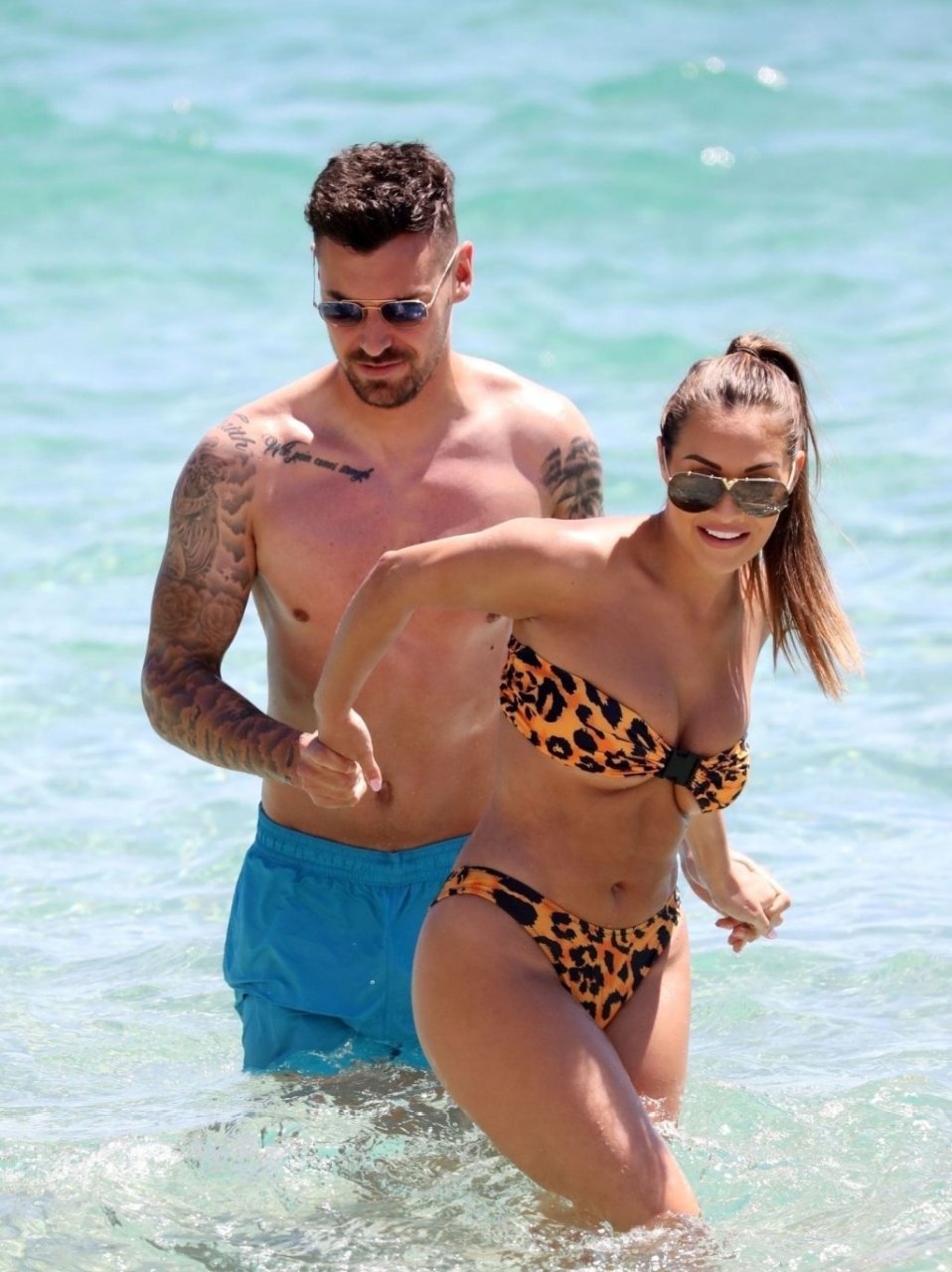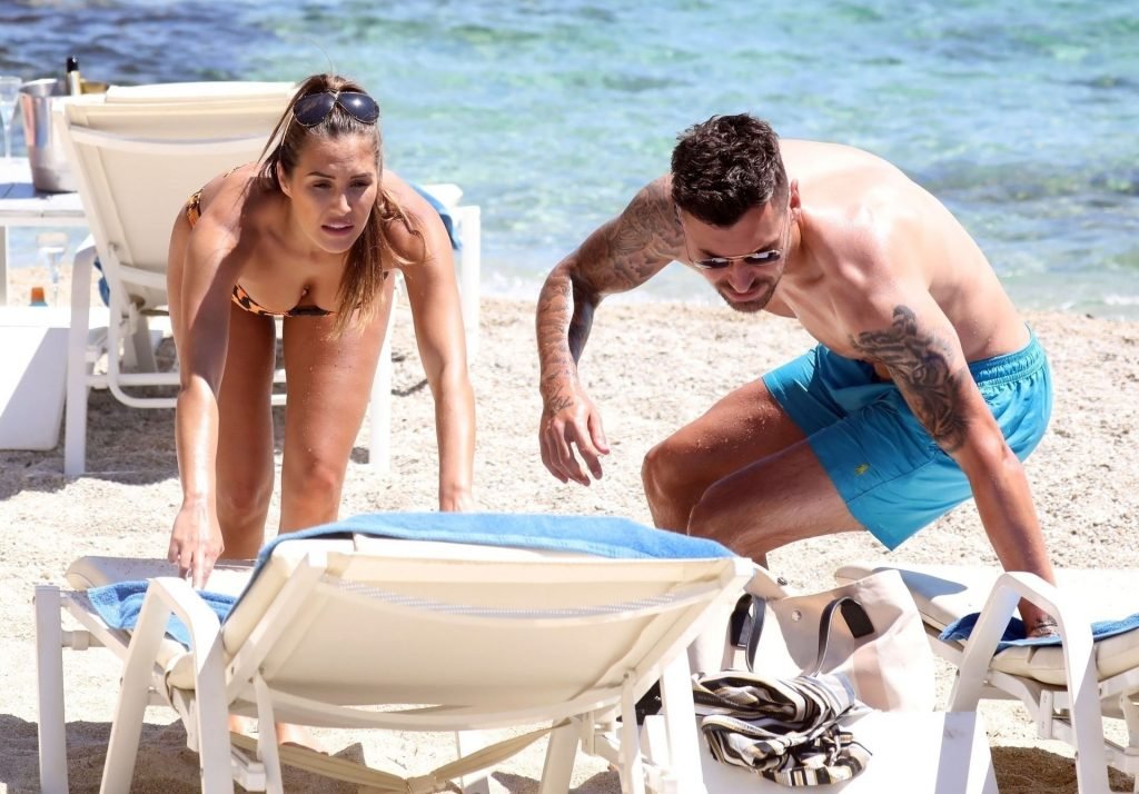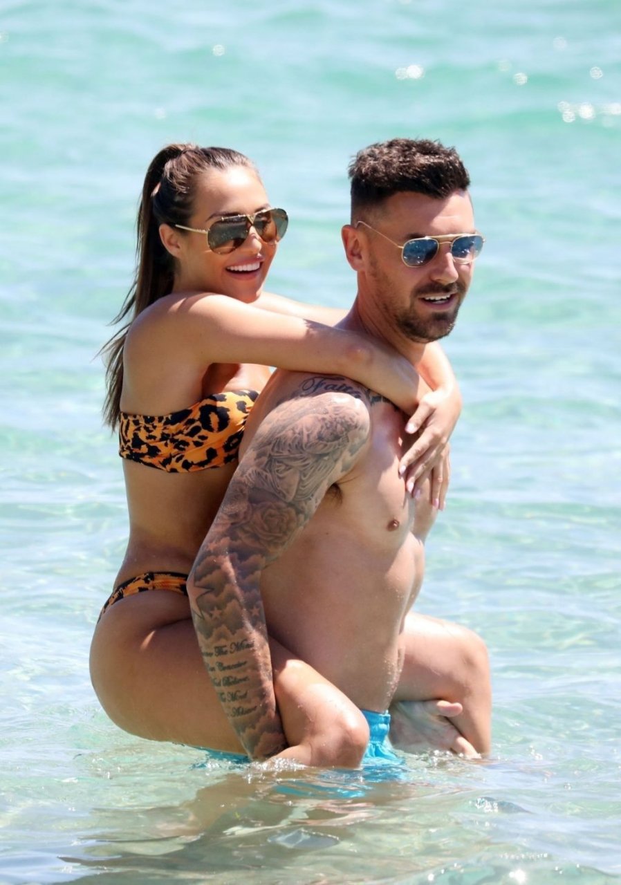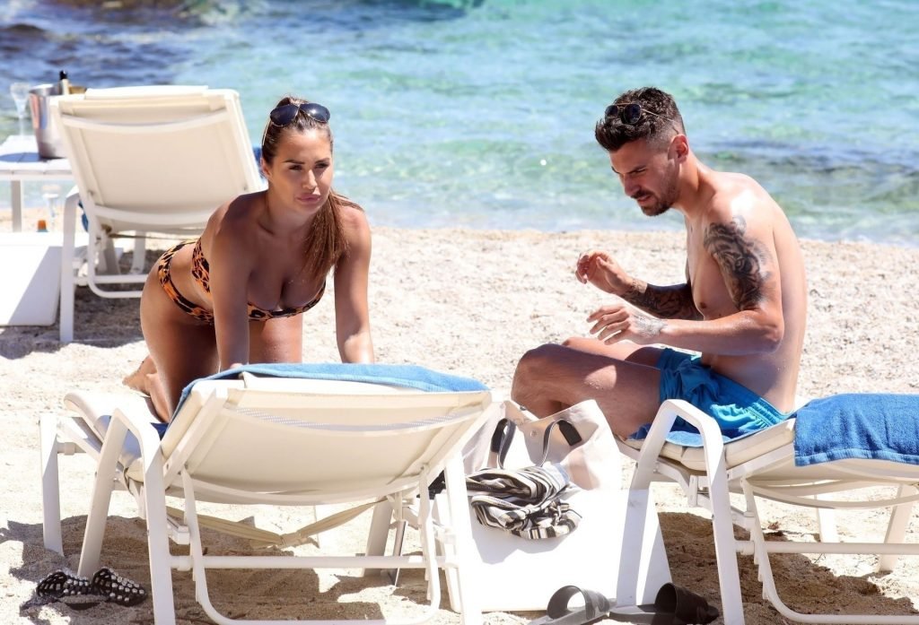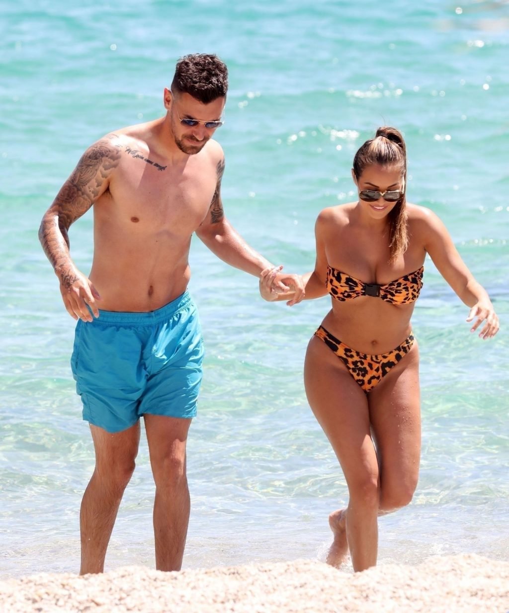Ex estrella de “Celebrity Big Brother” Chloe Goodman luce excelente con un bikini de estampado animal mientras está de vacaciones con el futbolista del QPR Grant Hall en Mykonos, 19/05/2019.