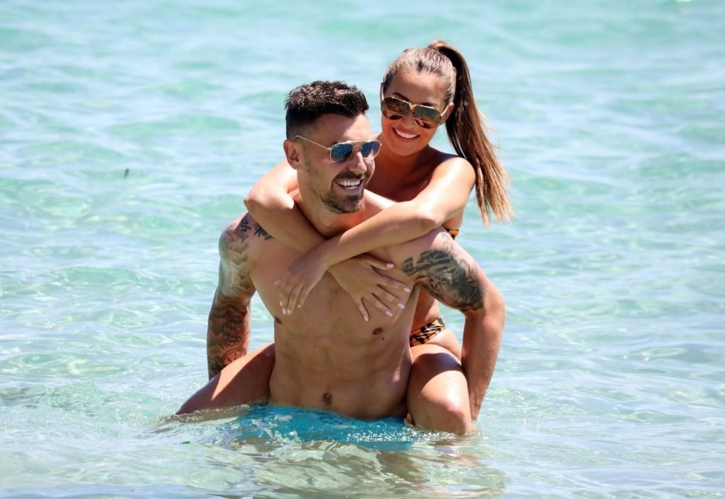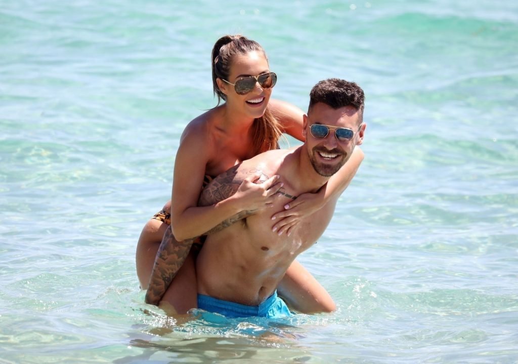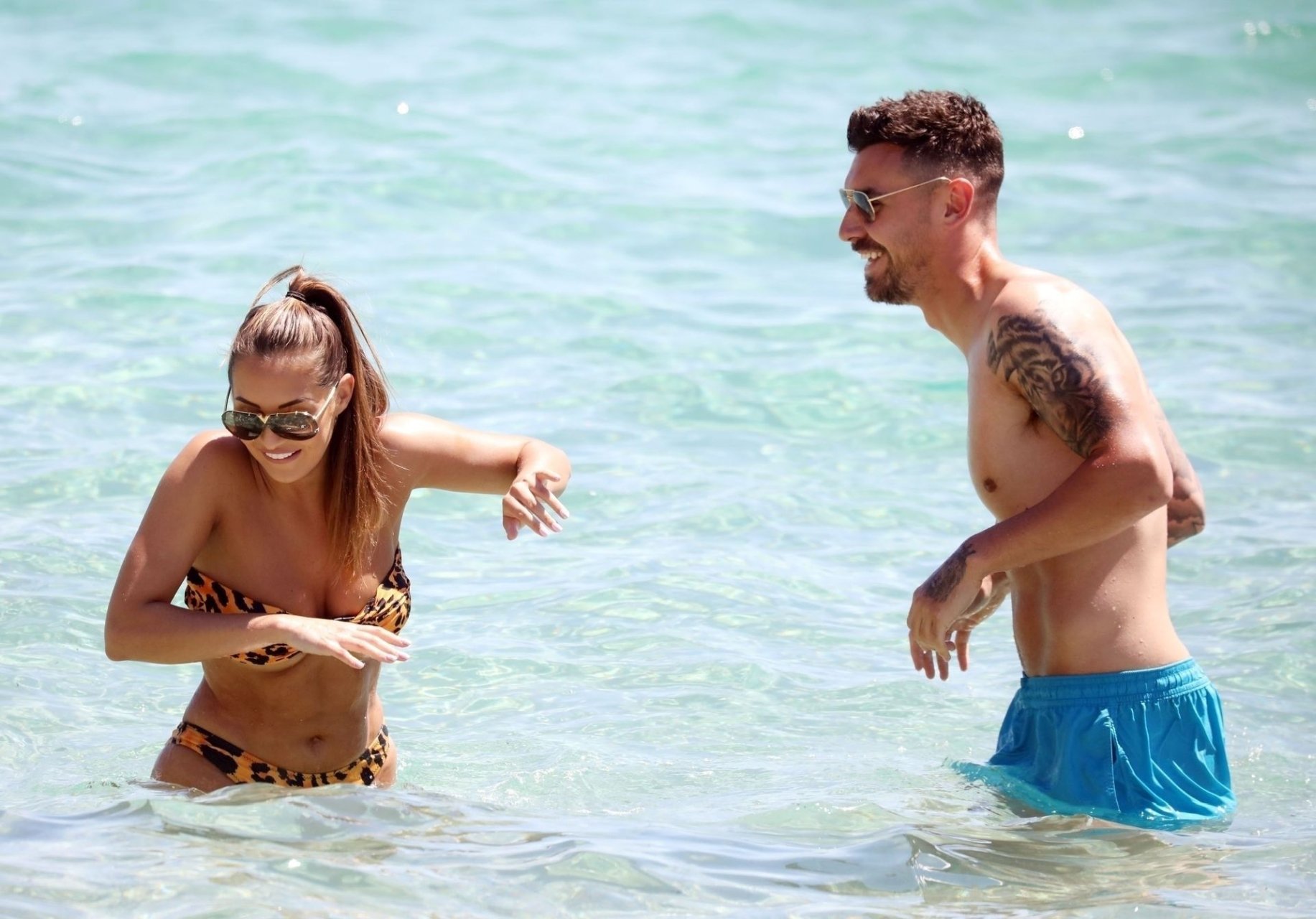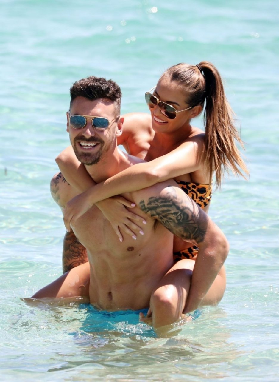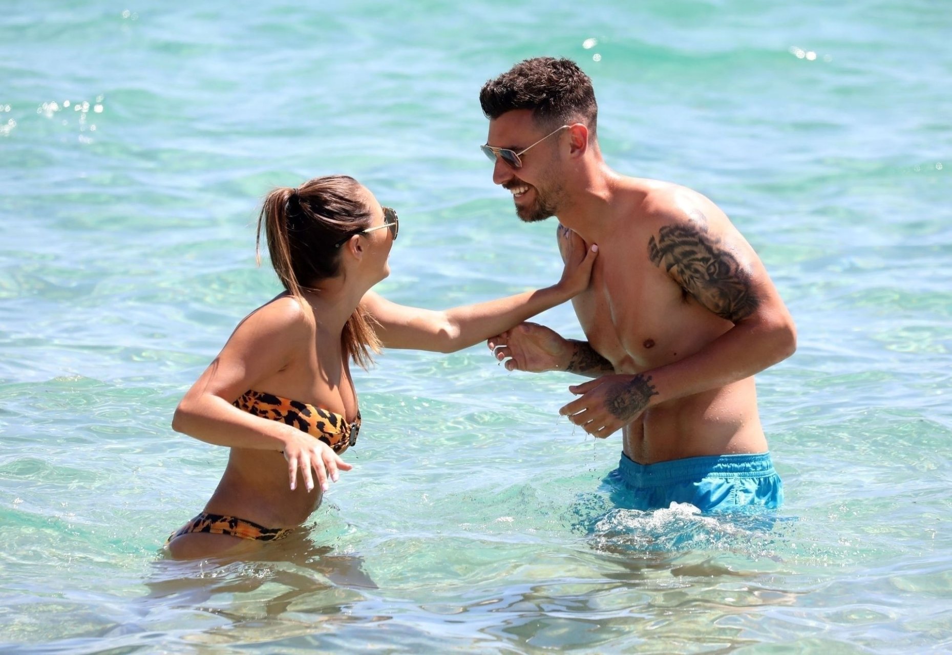 Ex estrella de “Celebrity Big Brother” Chloe Goodman luce excelente con un bikini de estampado animal mientras está de vacaciones con el futbolista del QPR Grant Hall en Mykonos, 19/05/2019.