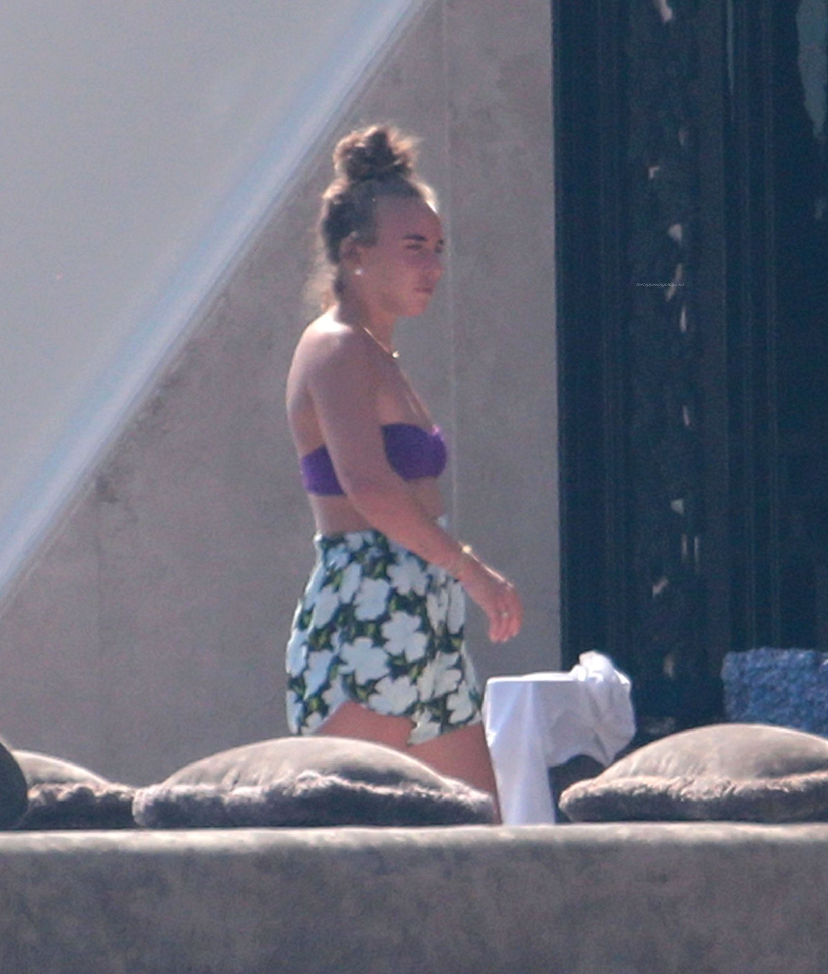 Chloe fue la primera en probar el tobogán vistiendo su diminuto bikini morado, mientras su madre Tina tomaba algunas fotos del evento lleno de emoción con su teléfono.