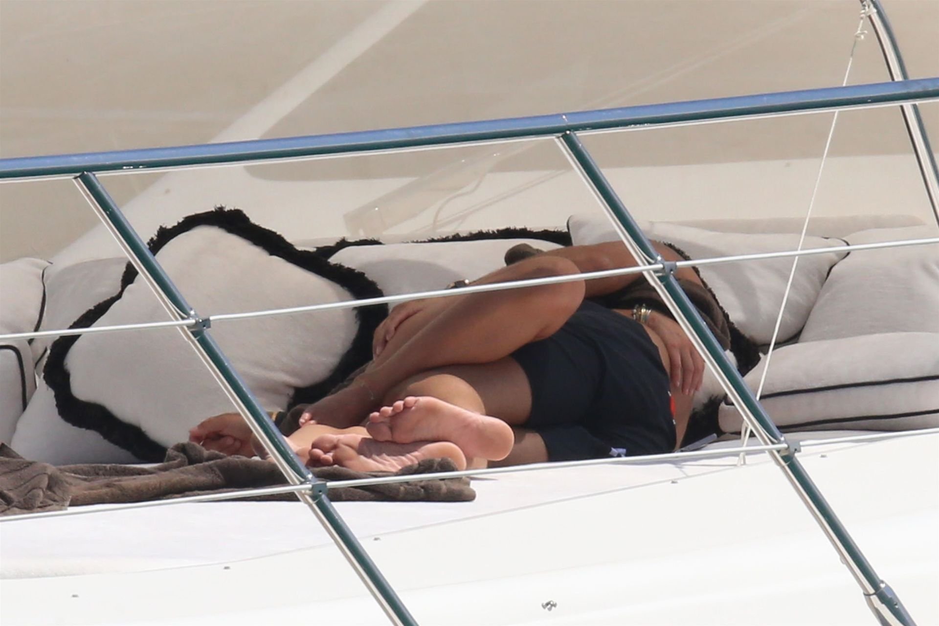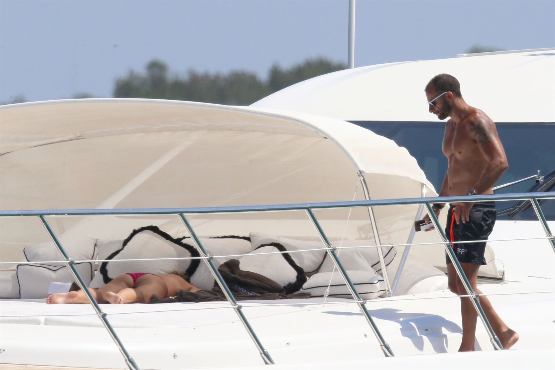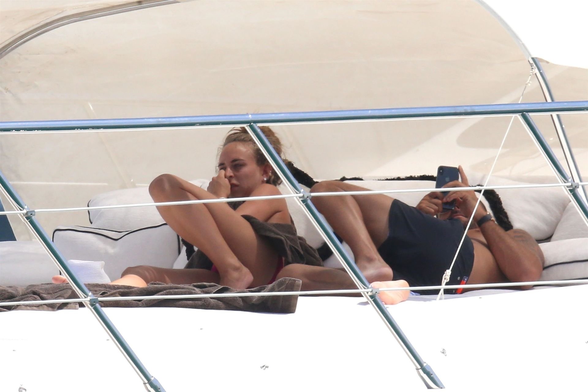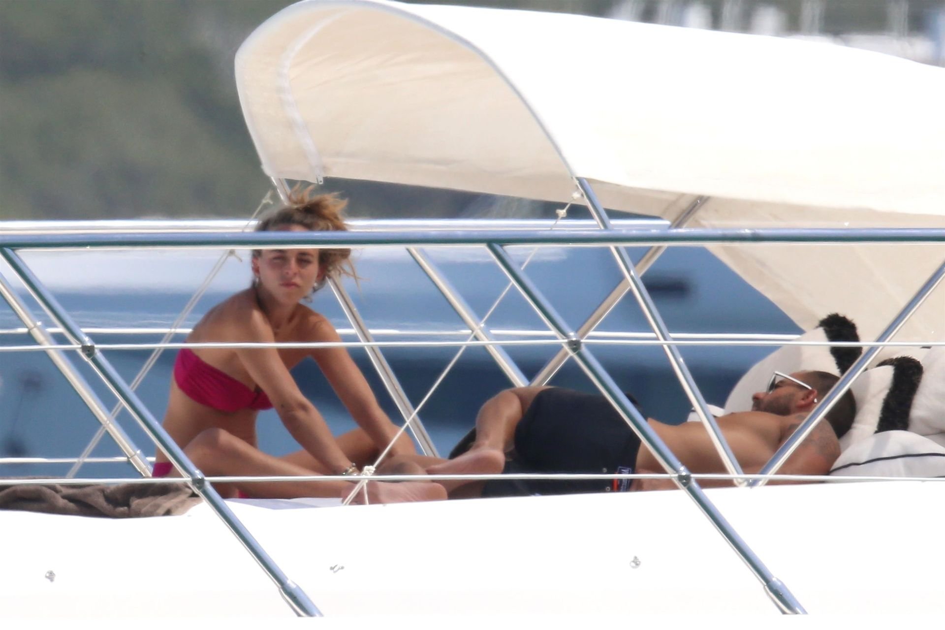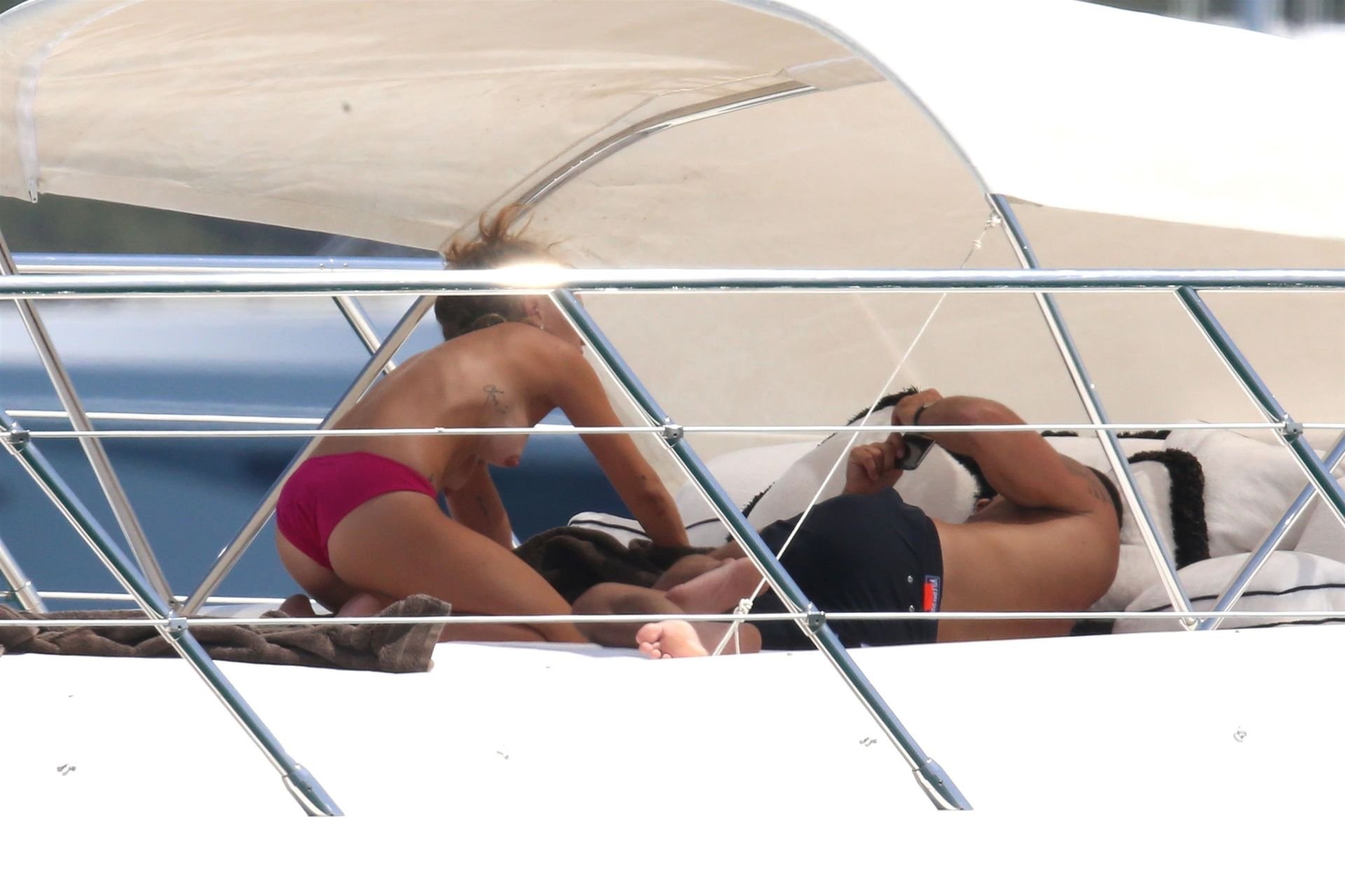 Chloe Green desnuda y un hombre desconocido se acercan mientras descansan en el mega yate Lion Heart de su padre en Cerdeña, Italia, 11/08/2019. La hija del multimillonario Philip Green fue vista recientemente sin el anillo de compromiso de su “Prófugo Sexy” Jeremy Meeks y, por lo que parece, ha seguido adelante.