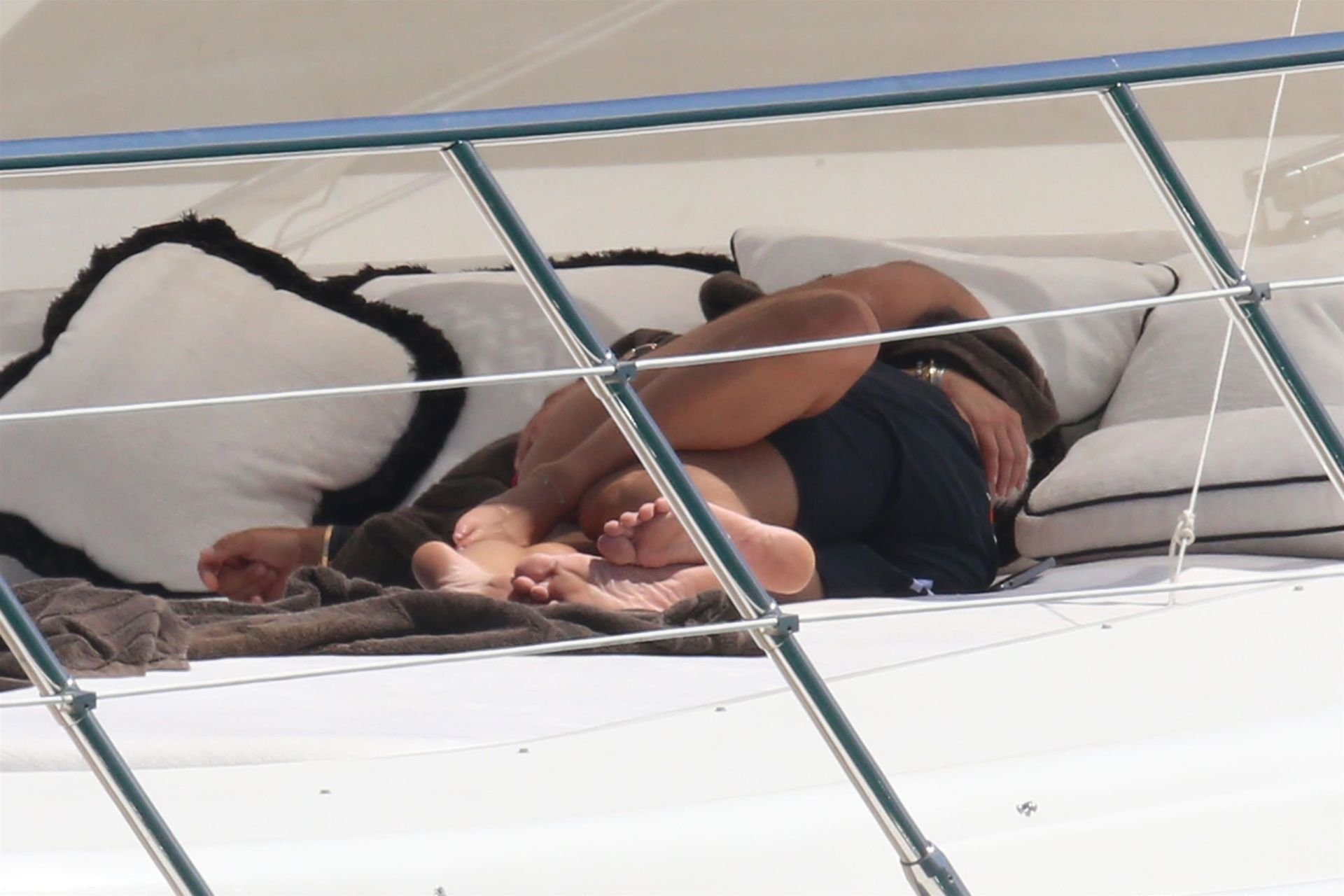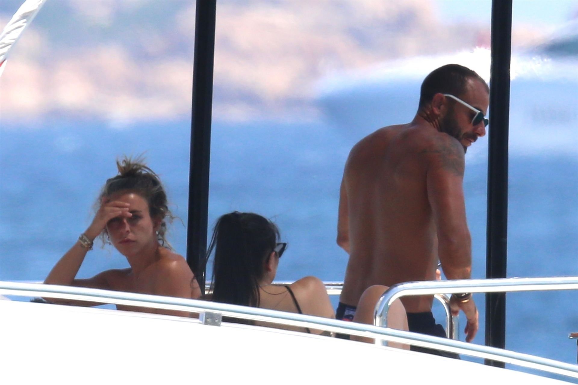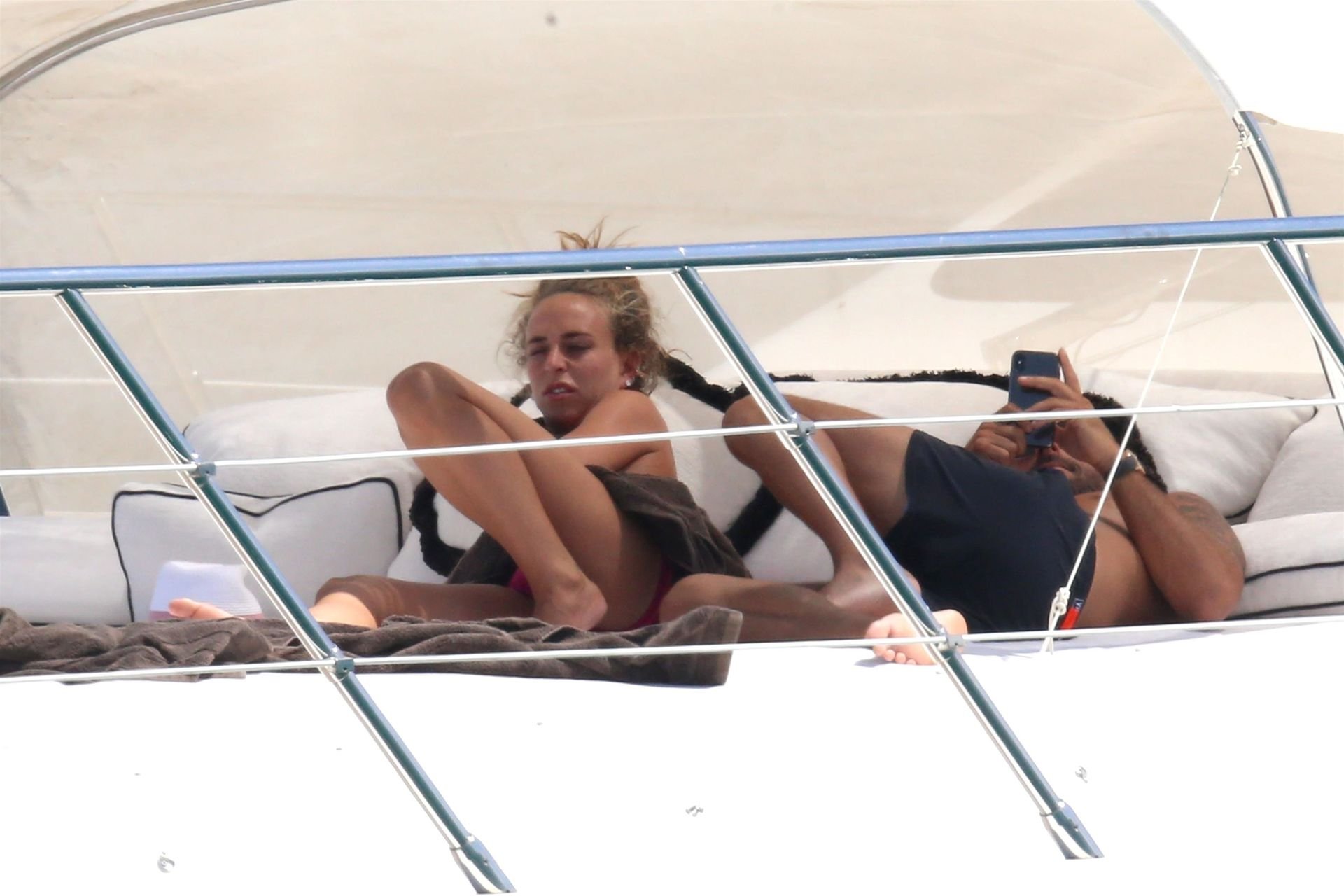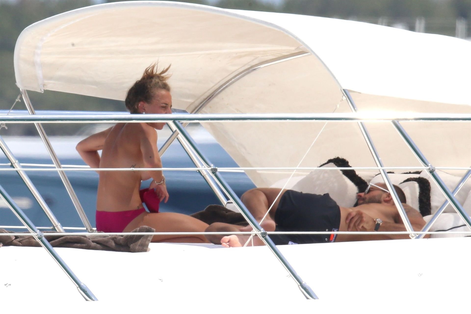 Chloe Green desnuda y un hombre desconocido se acercan mientras descansan en el mega yate Lion Heart de su padre en Cerdeña, Italia, 11/08/2019. La hija del multimillonario Philip Green fue vista recientemente sin el anillo de compromiso de su “Prófugo Sexy” Jeremy Meeks y, por lo que parece, ha seguido adelante.