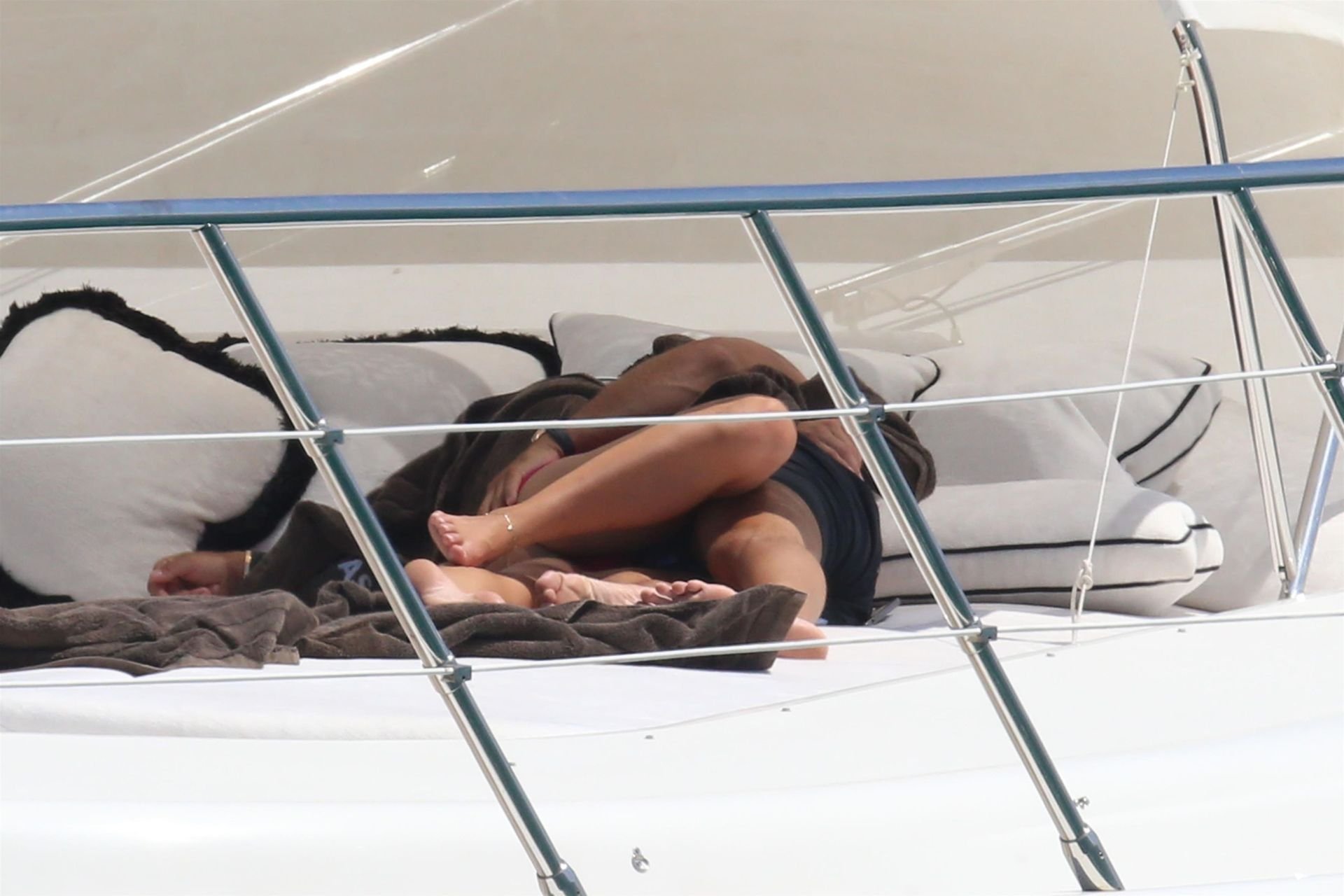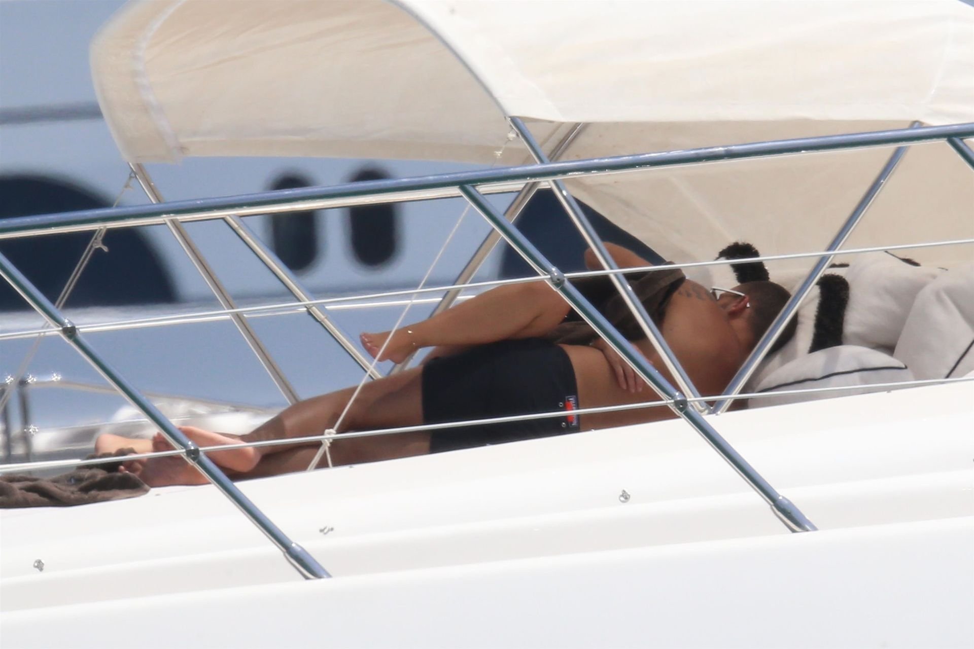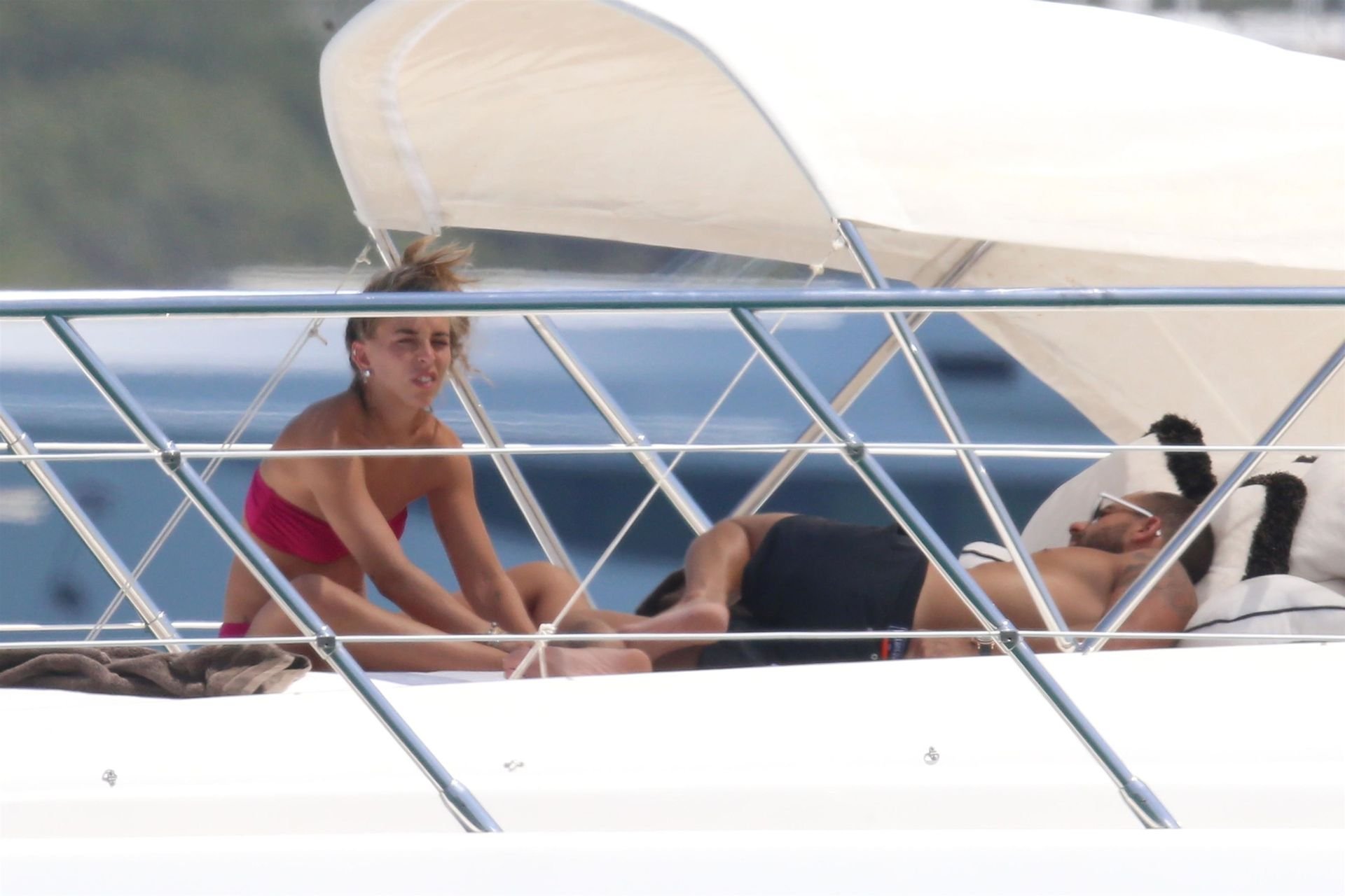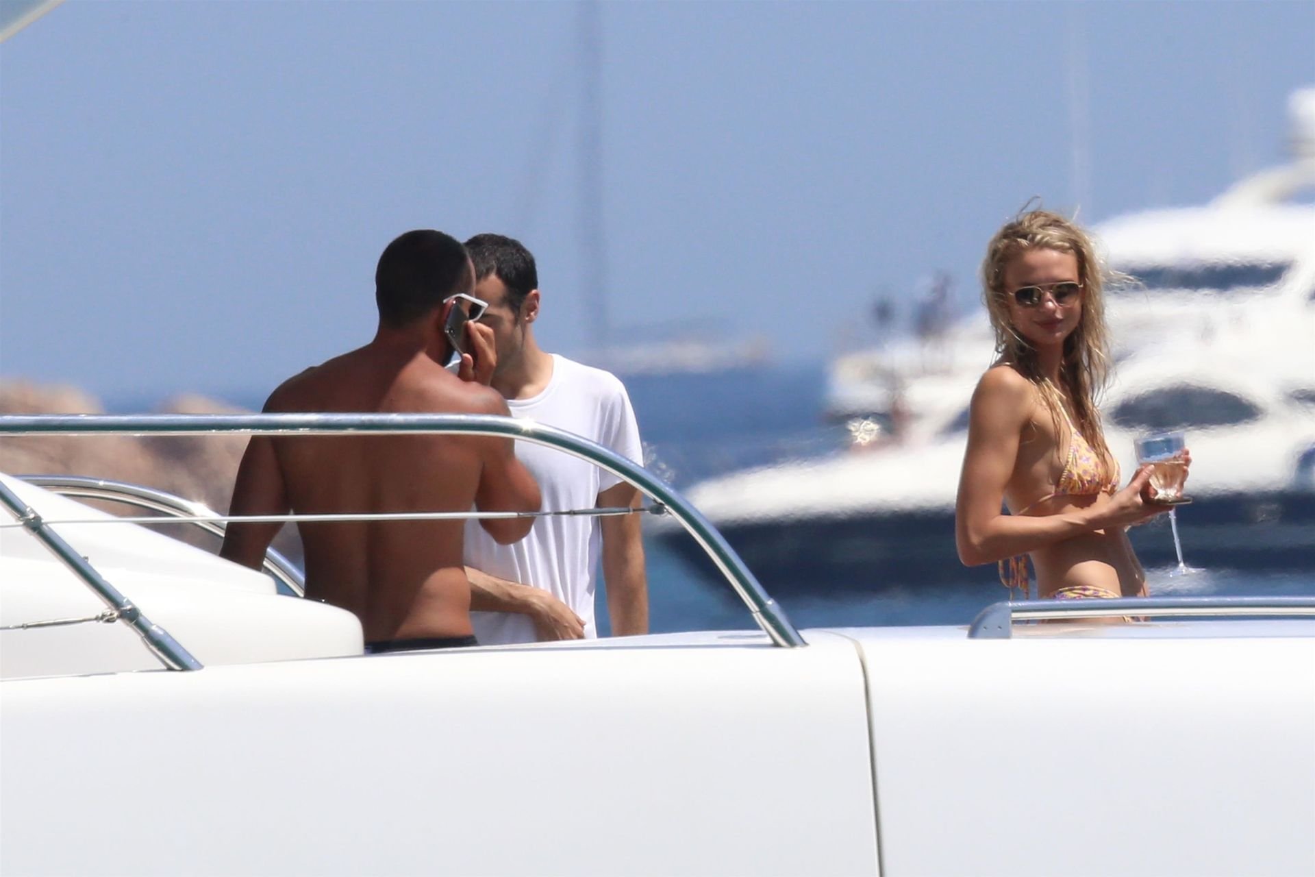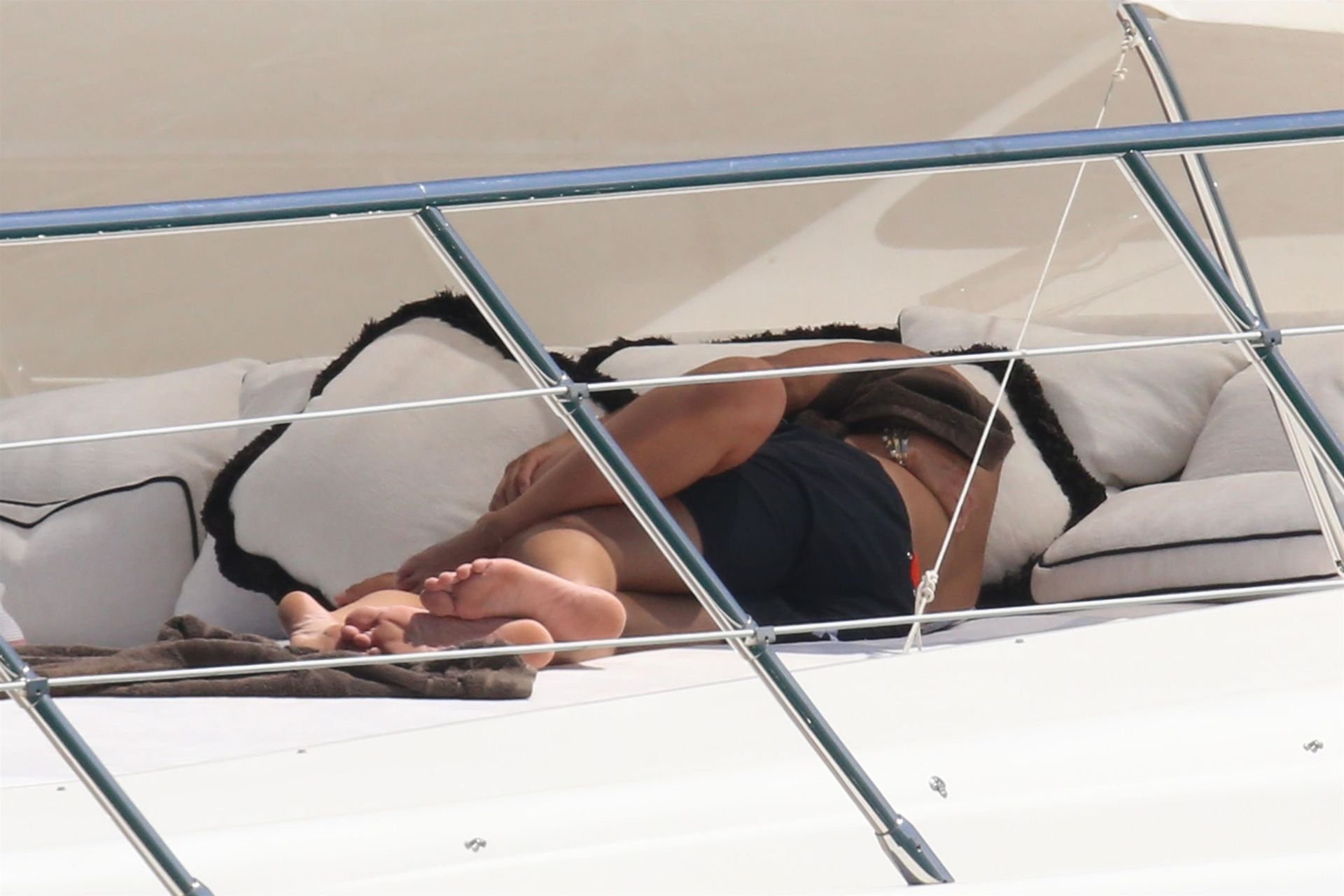 Chloe Green desnuda y un hombre desconocido se acercan mientras descansan en el mega yate Lion Heart de su padre en Cerdeña, Italia, 11/08/2019. La hija del multimillonario Philip Green fue vista recientemente sin el anillo de compromiso de su “Prófugo Sexy” Jeremy Meeks y, por lo que parece, ha seguido adelante.