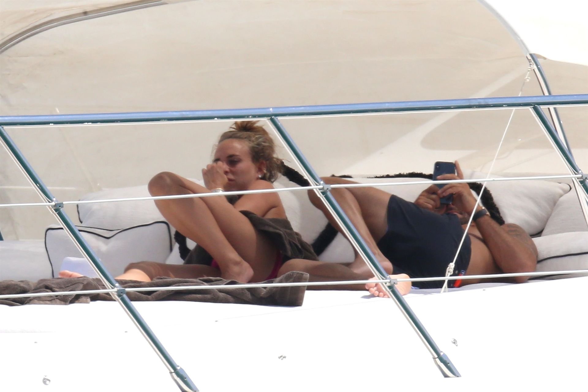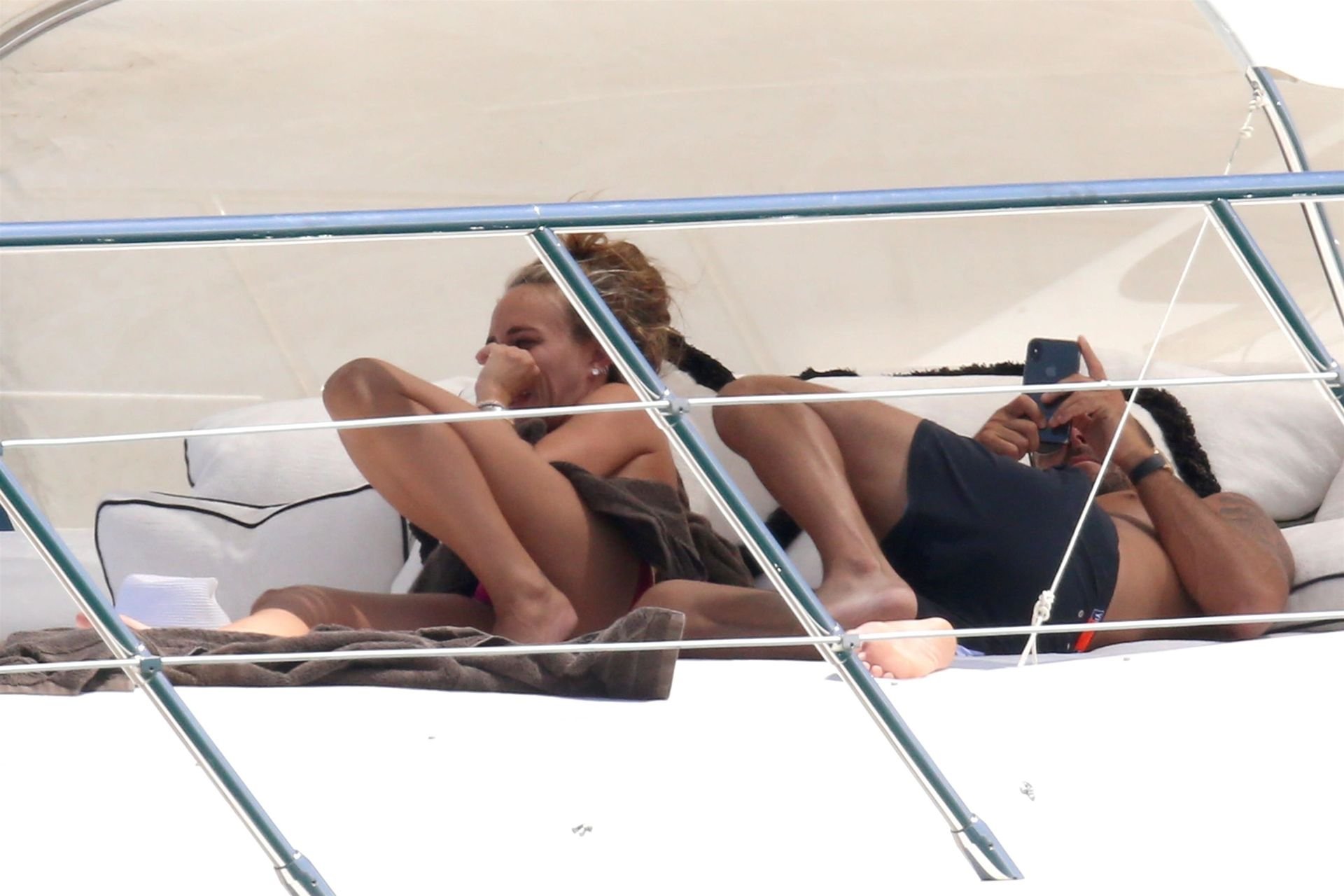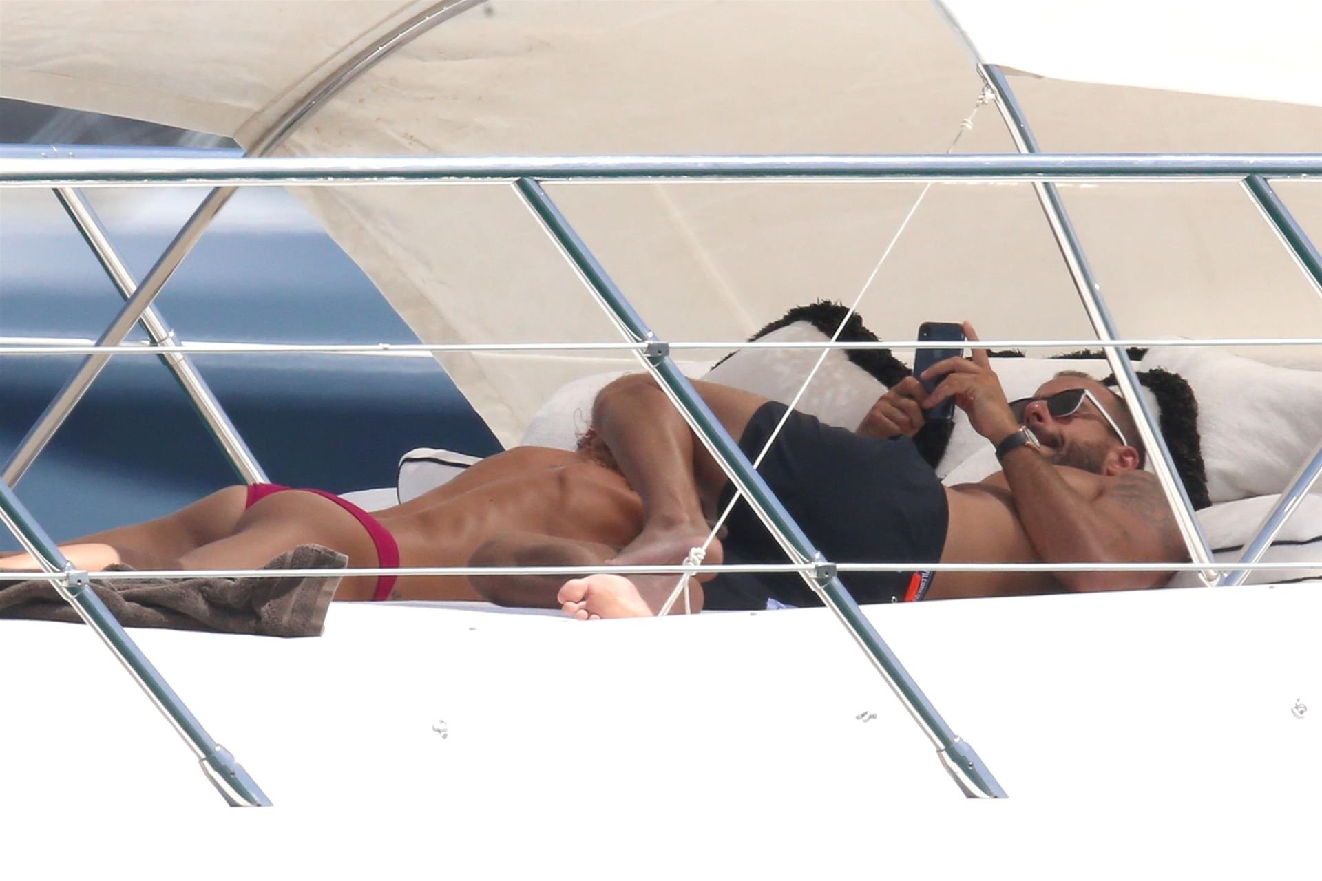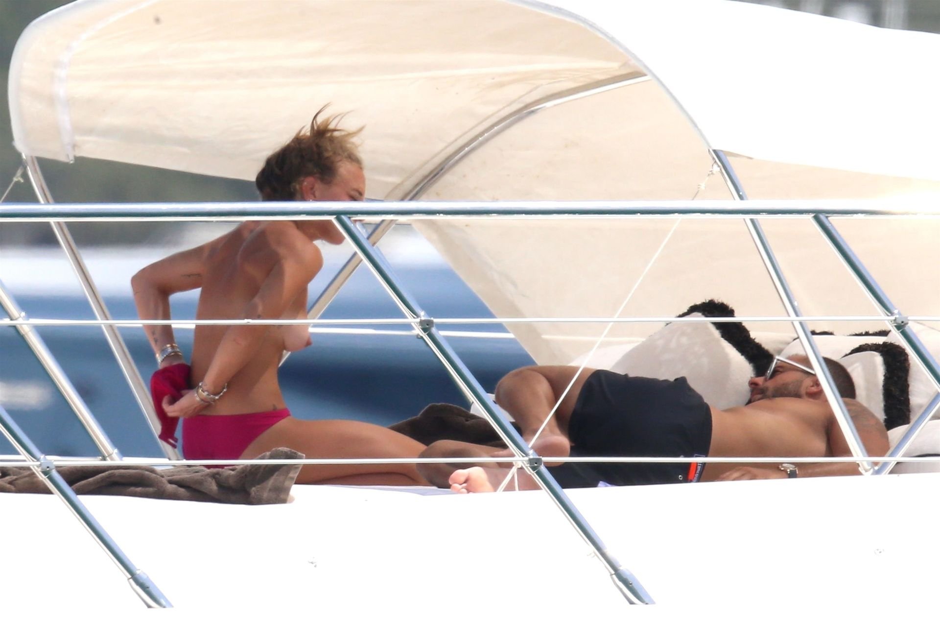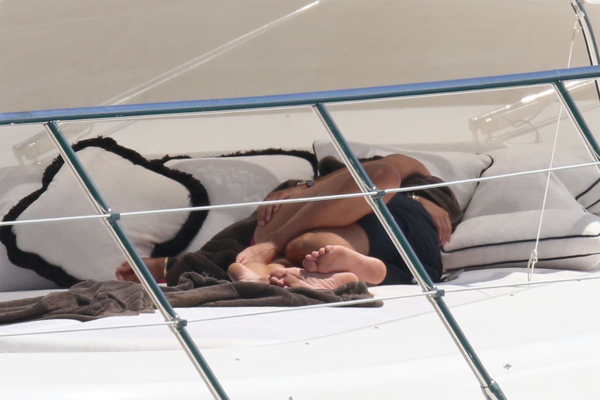 Chloe Green desnuda y un hombre desconocido se acercan mientras descansan en el mega yate Lion Heart de su padre en Cerdeña, Italia, 11/08/2019. La hija del multimillonario Philip Green fue vista recientemente sin el anillo de compromiso de su “Prófugo Sexy” Jeremy Meeks y, por lo que parece, ha seguido adelante.