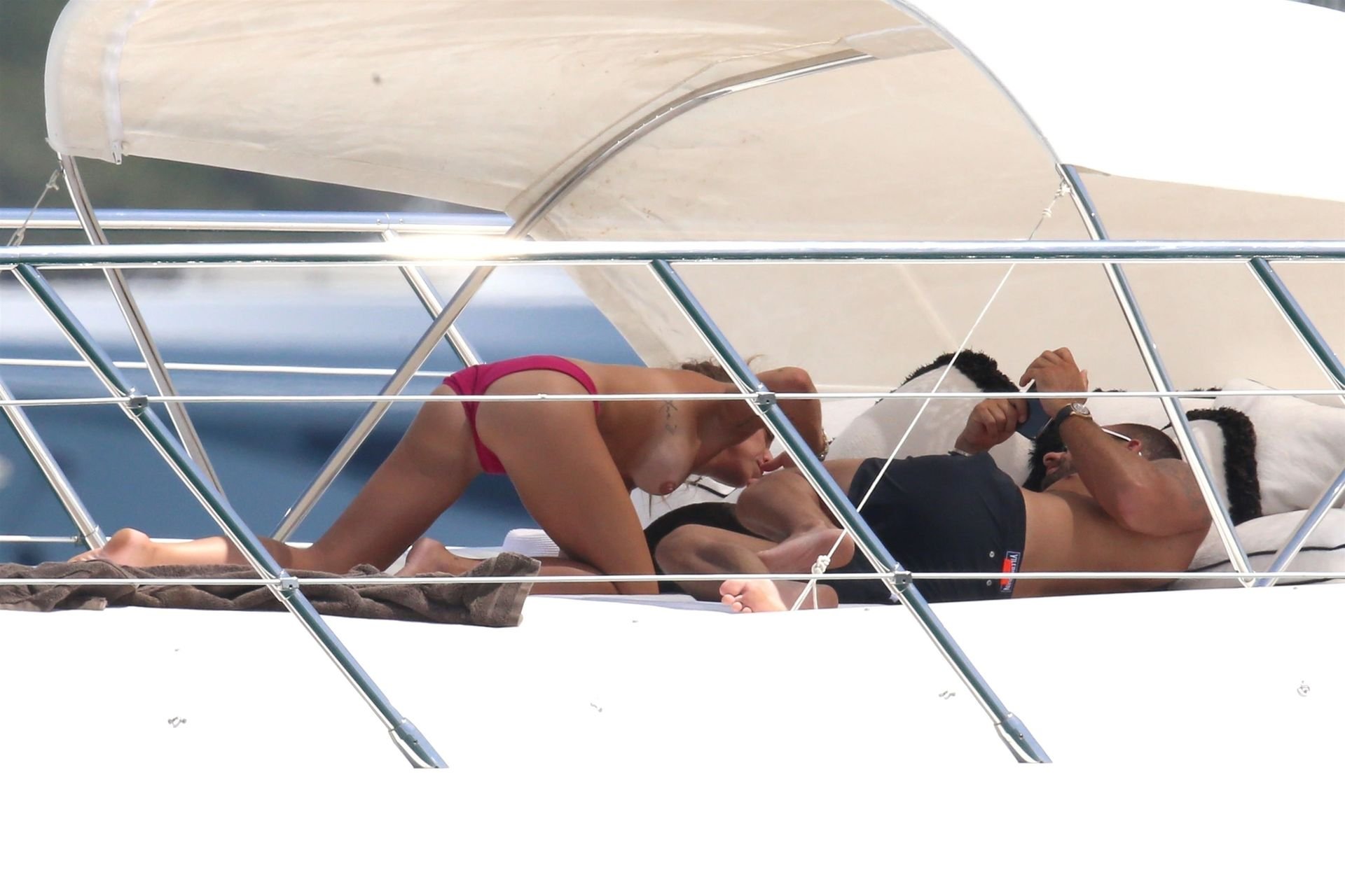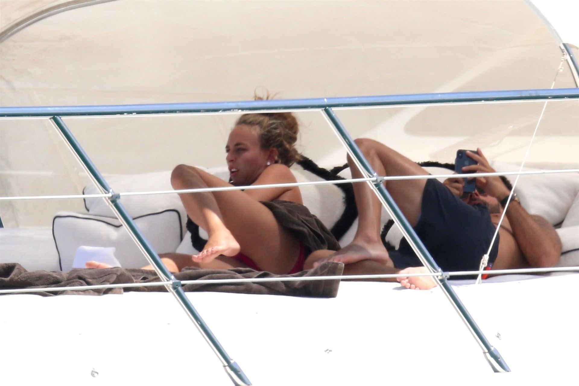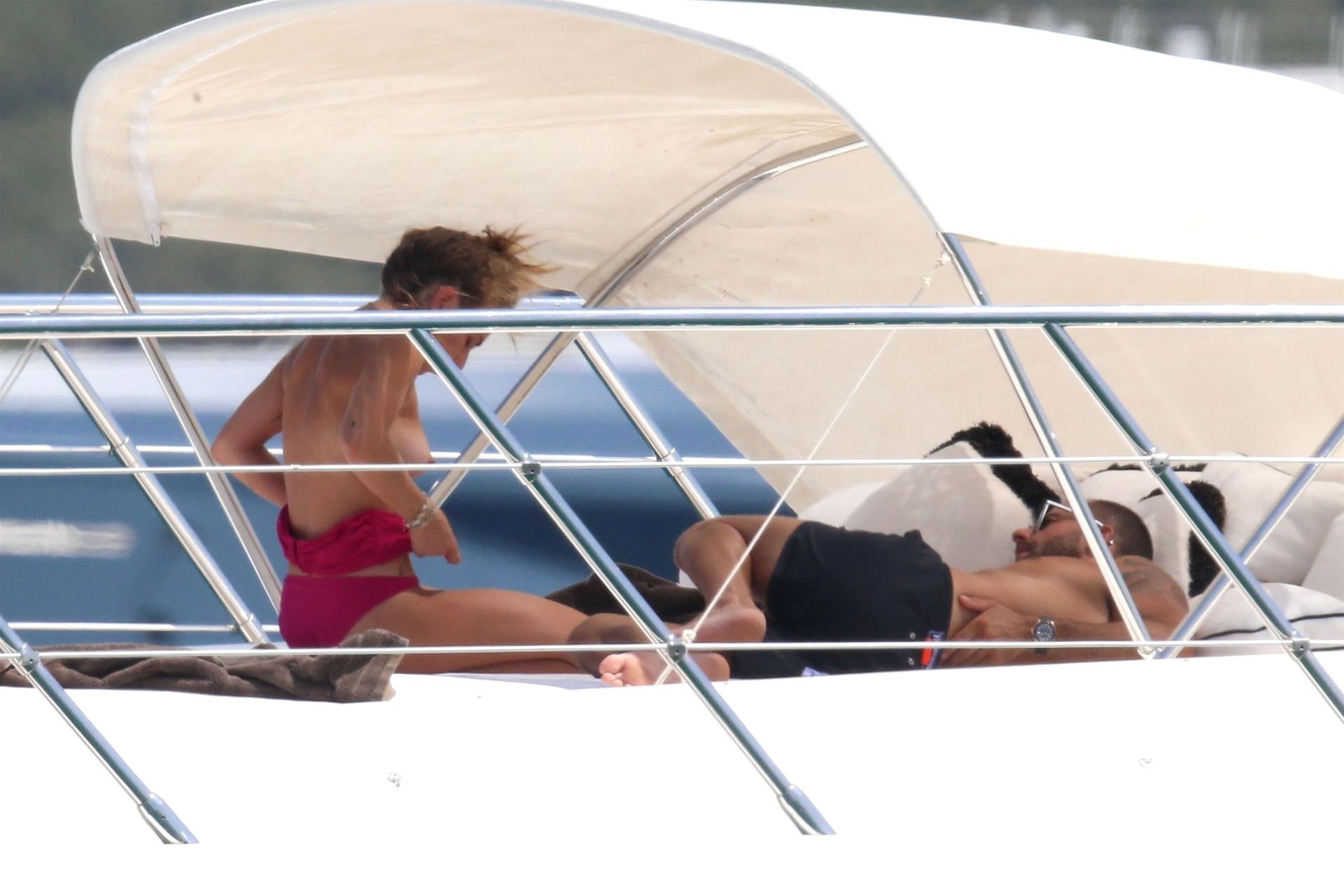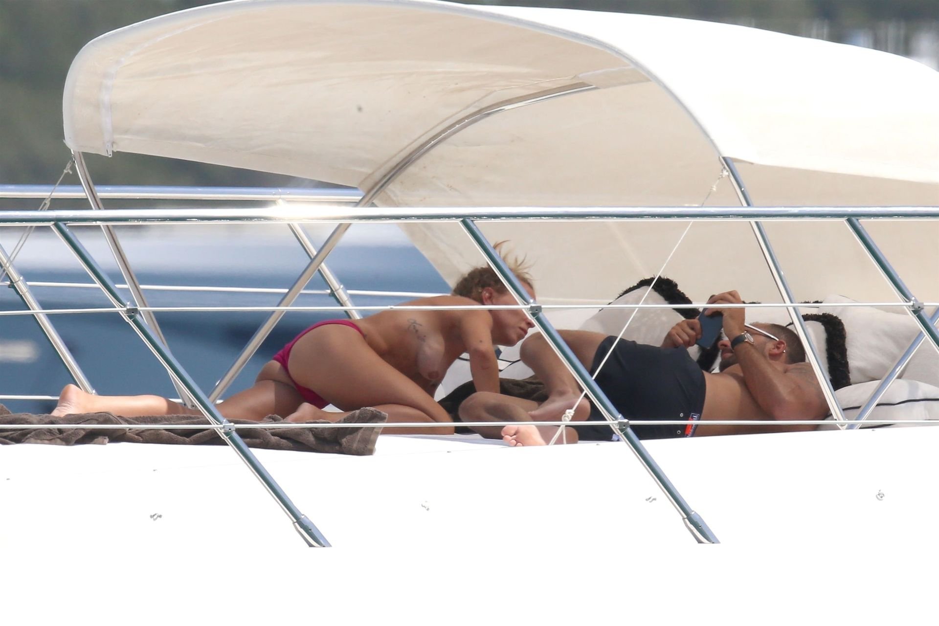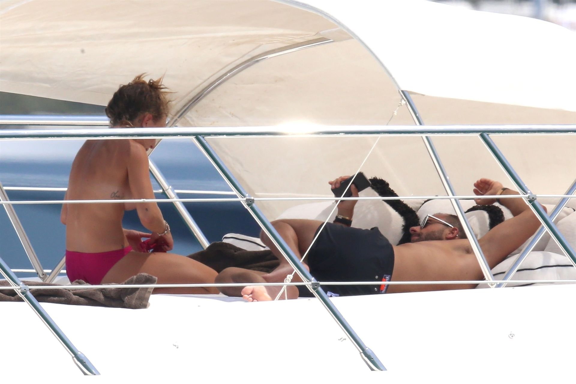 Chloe Green desnuda y un hombre desconocido se acercan mientras descansan en el mega yate Lion Heart de su padre en Cerdeña, Italia, 11/08/2019. La hija del multimillonario Philip Green fue vista recientemente sin el anillo de compromiso de su “Prófugo Sexy” Jeremy Meeks y, por lo que parece, ha seguido adelante.